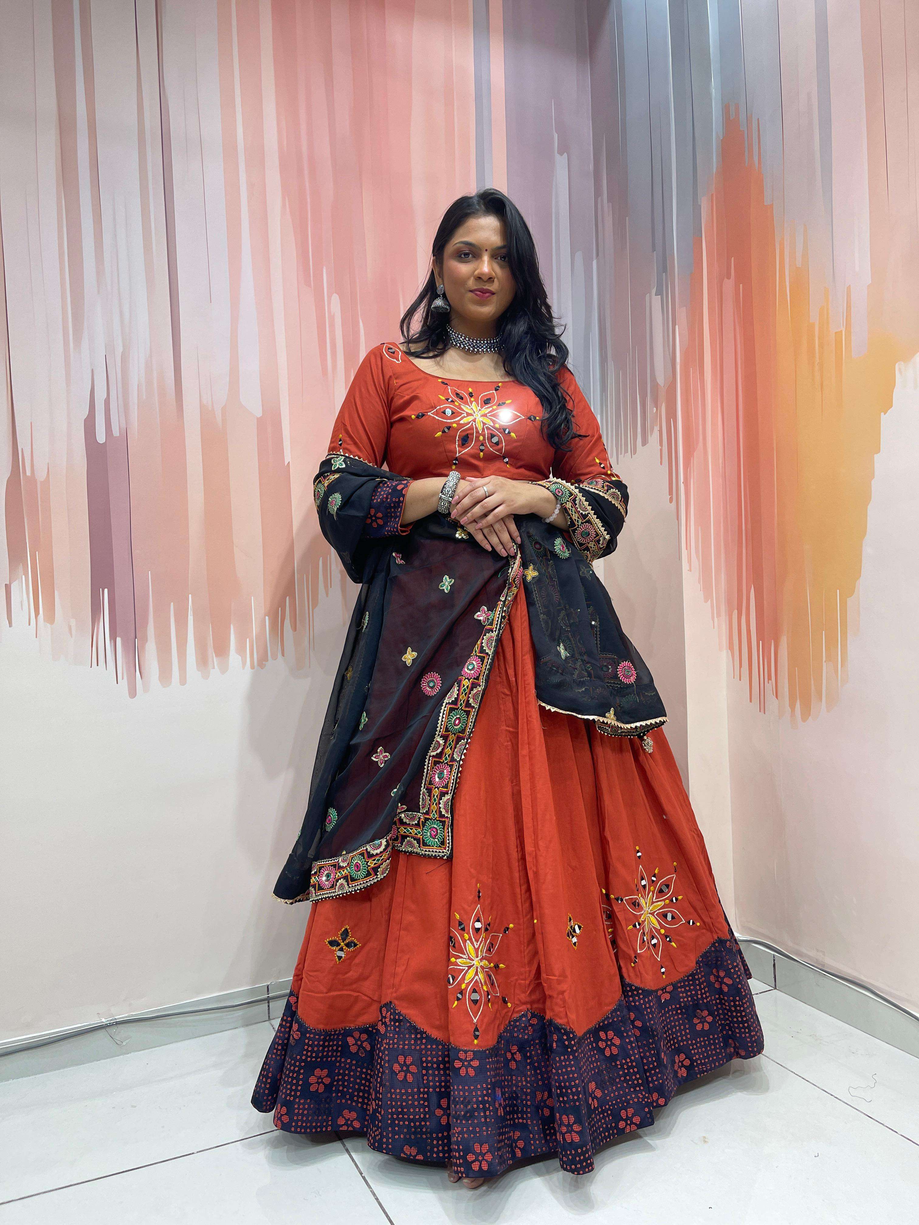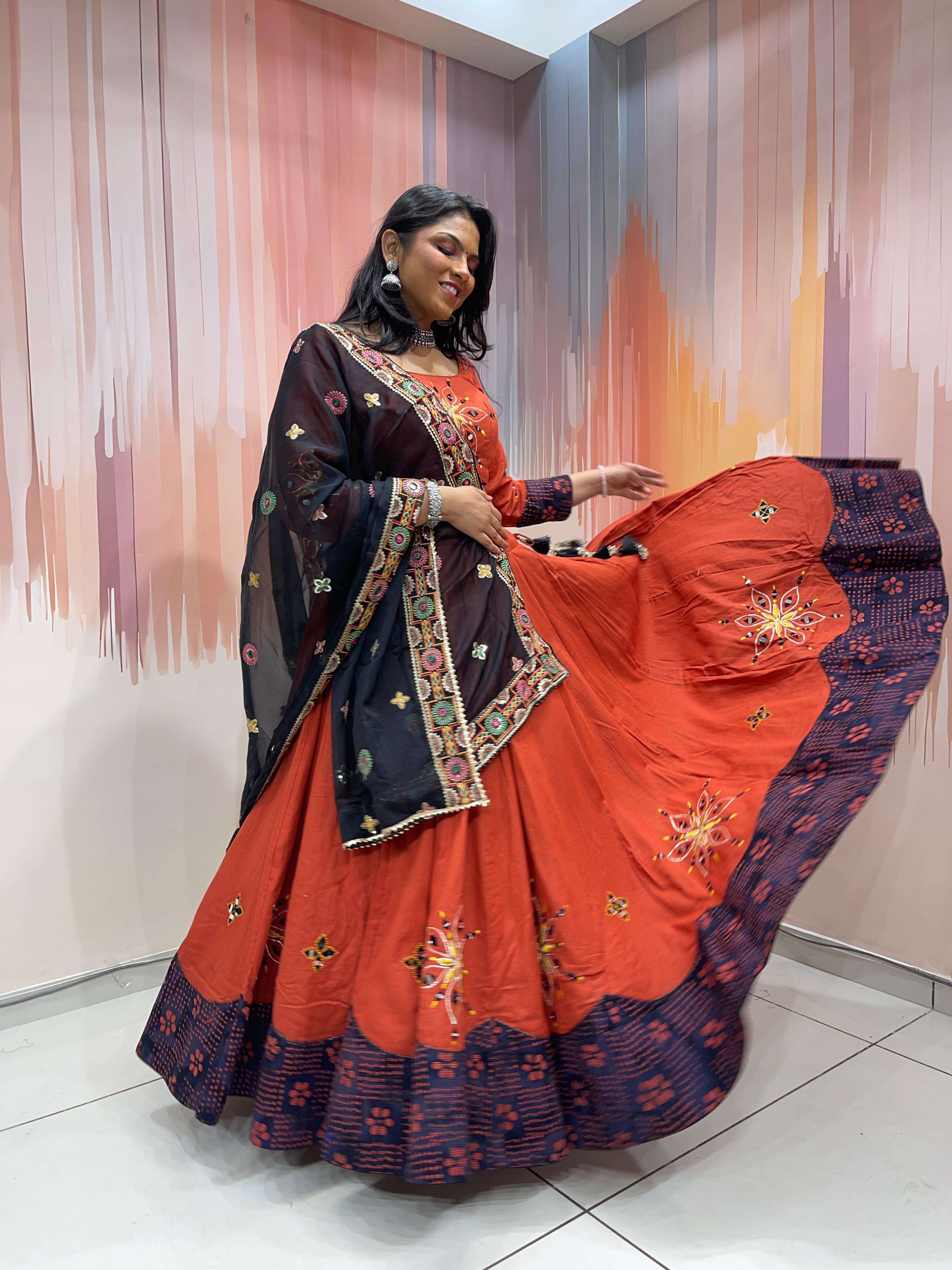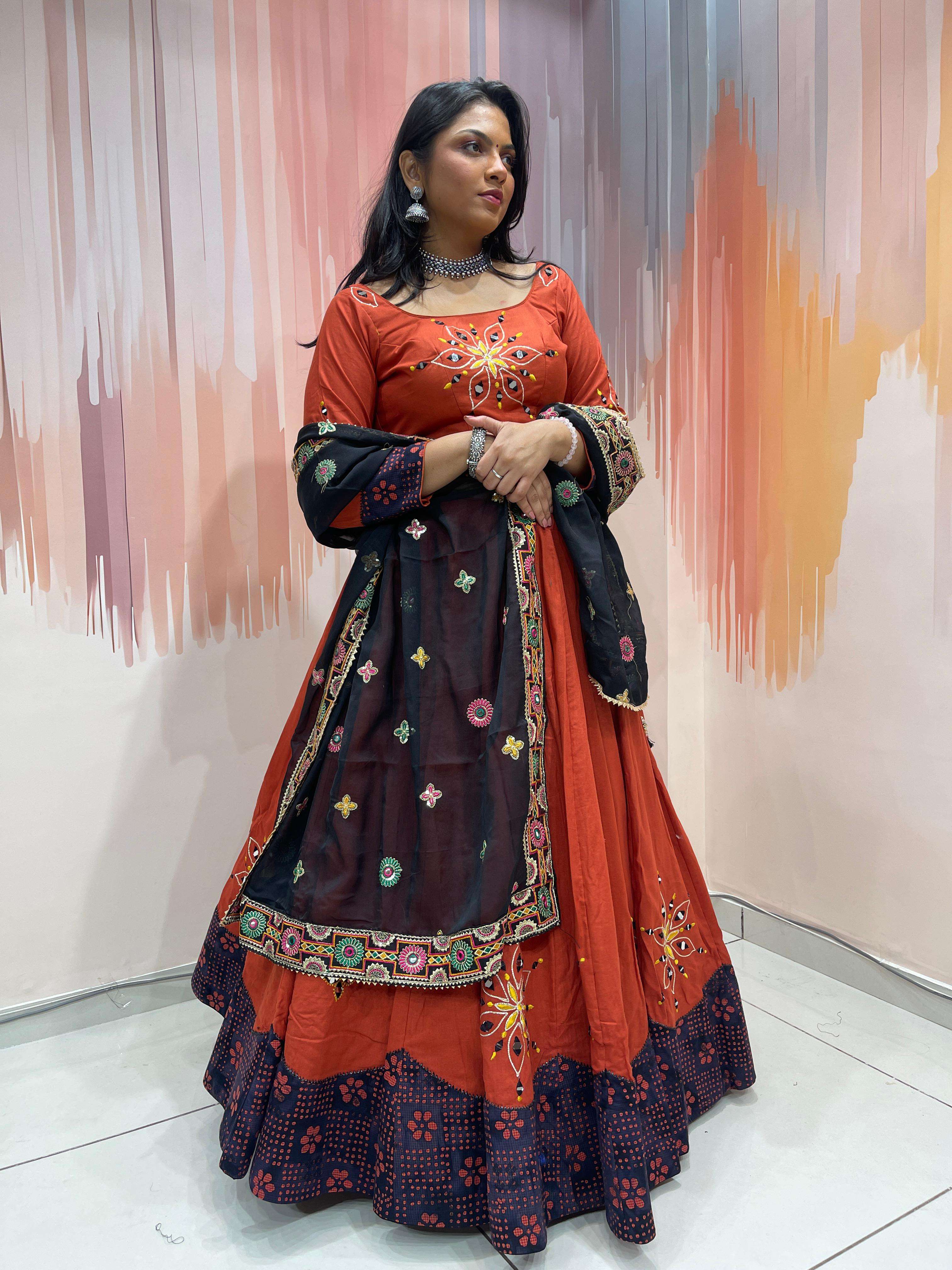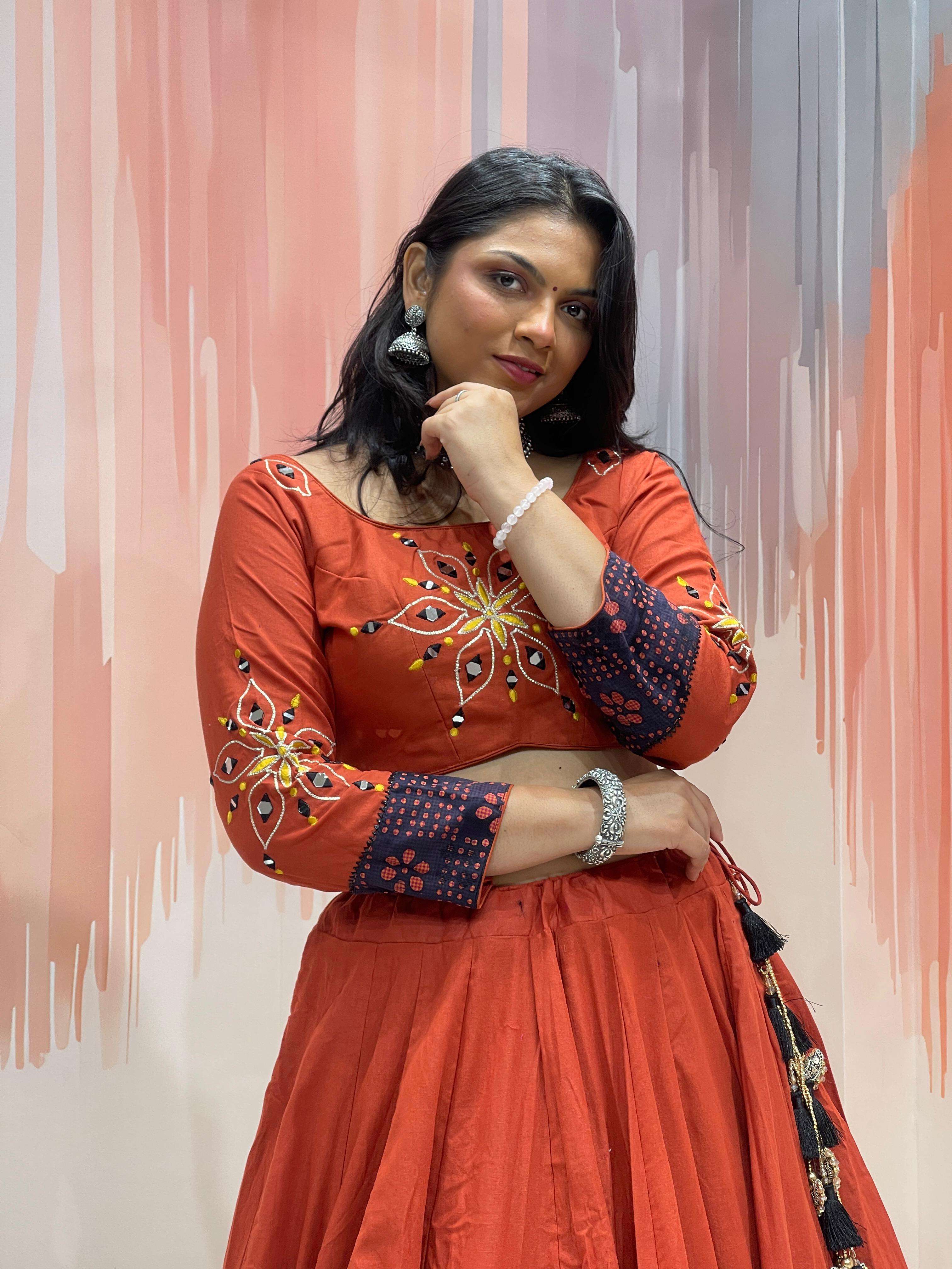 *Simple & Sober Mal & flex Cotton Classic Sober Vintage Embroidered Rust Brown Traditional Chaniya choli with Real mirror work Awsome Dupatta Designer Outfit*