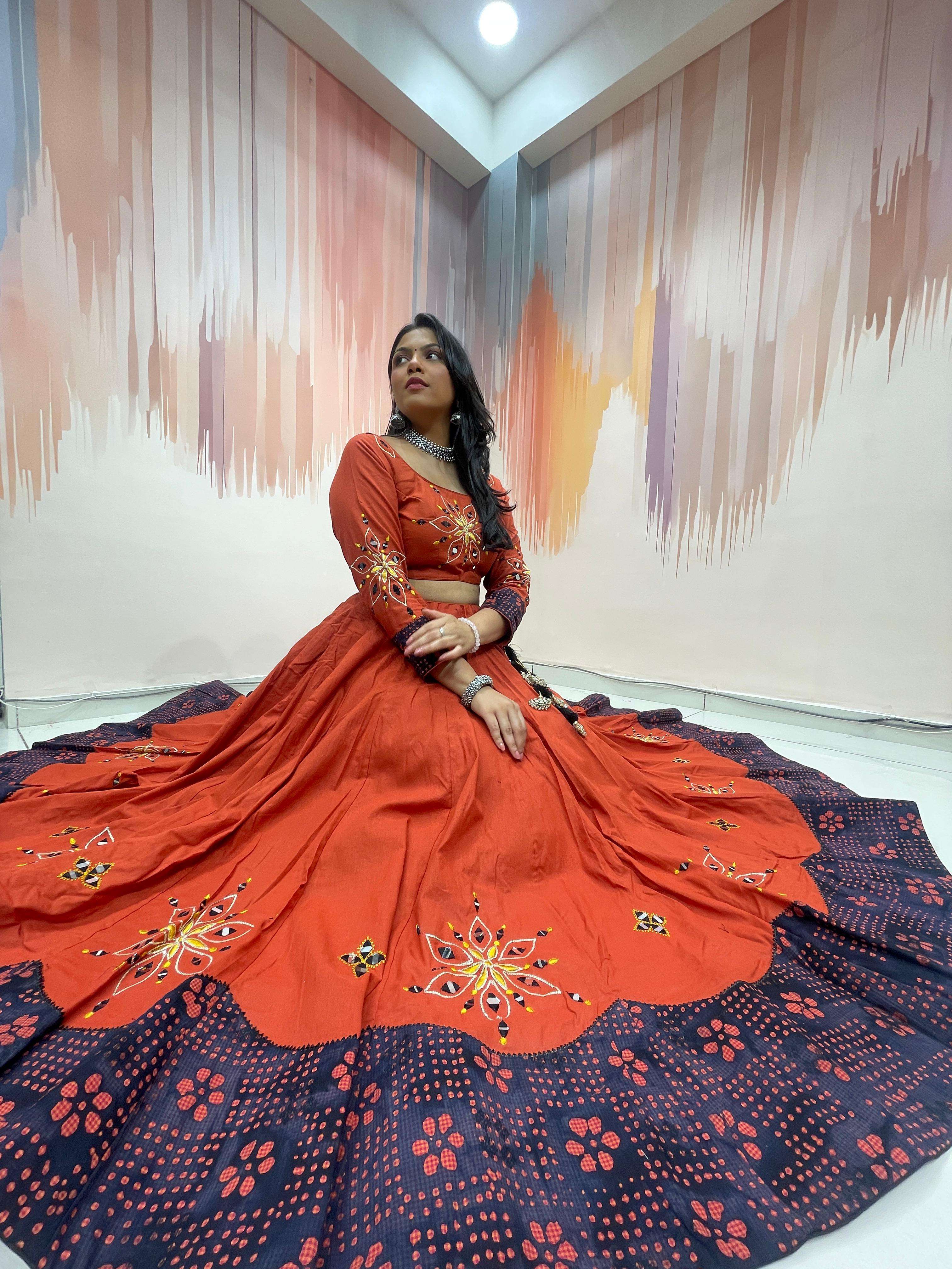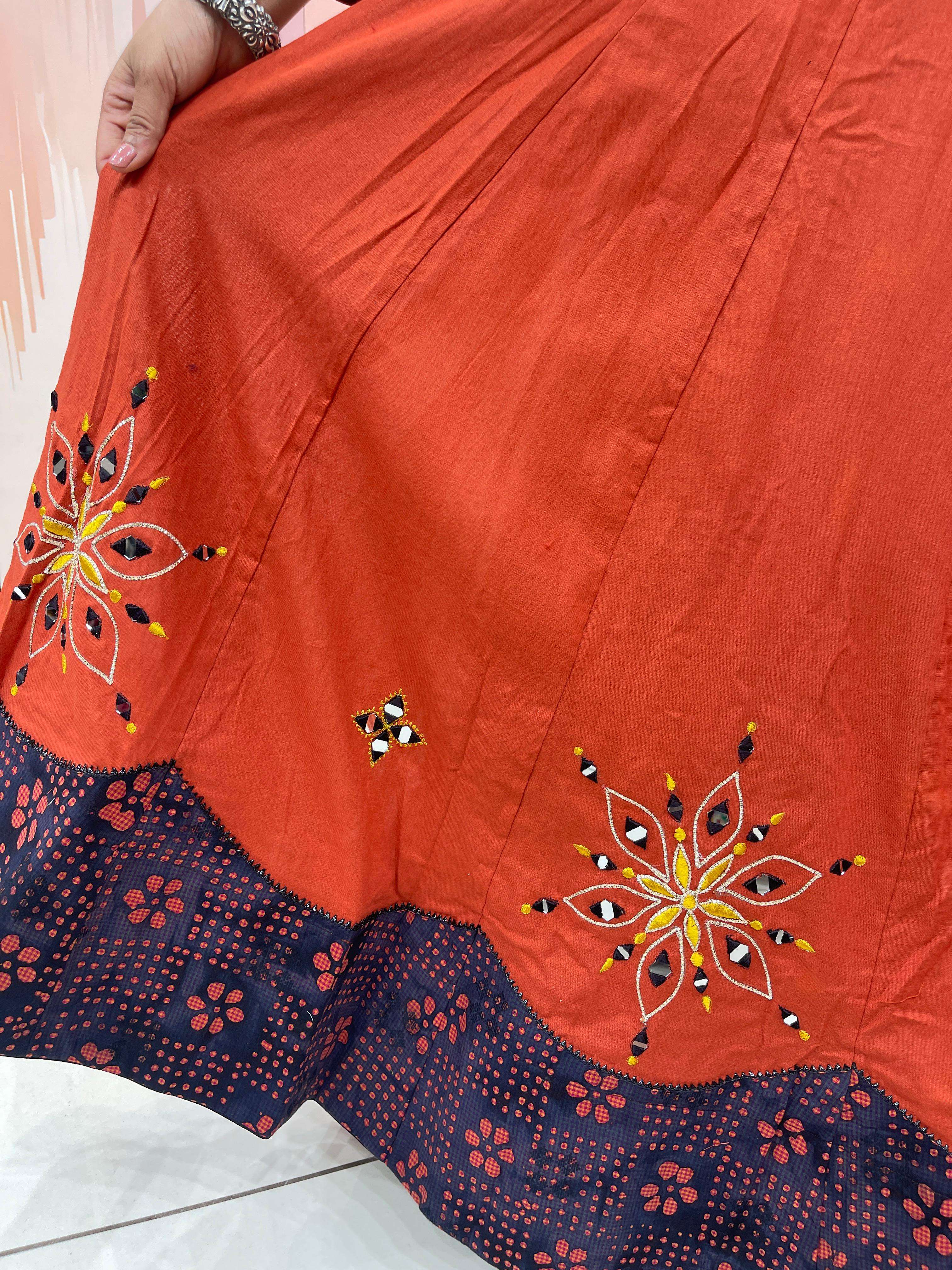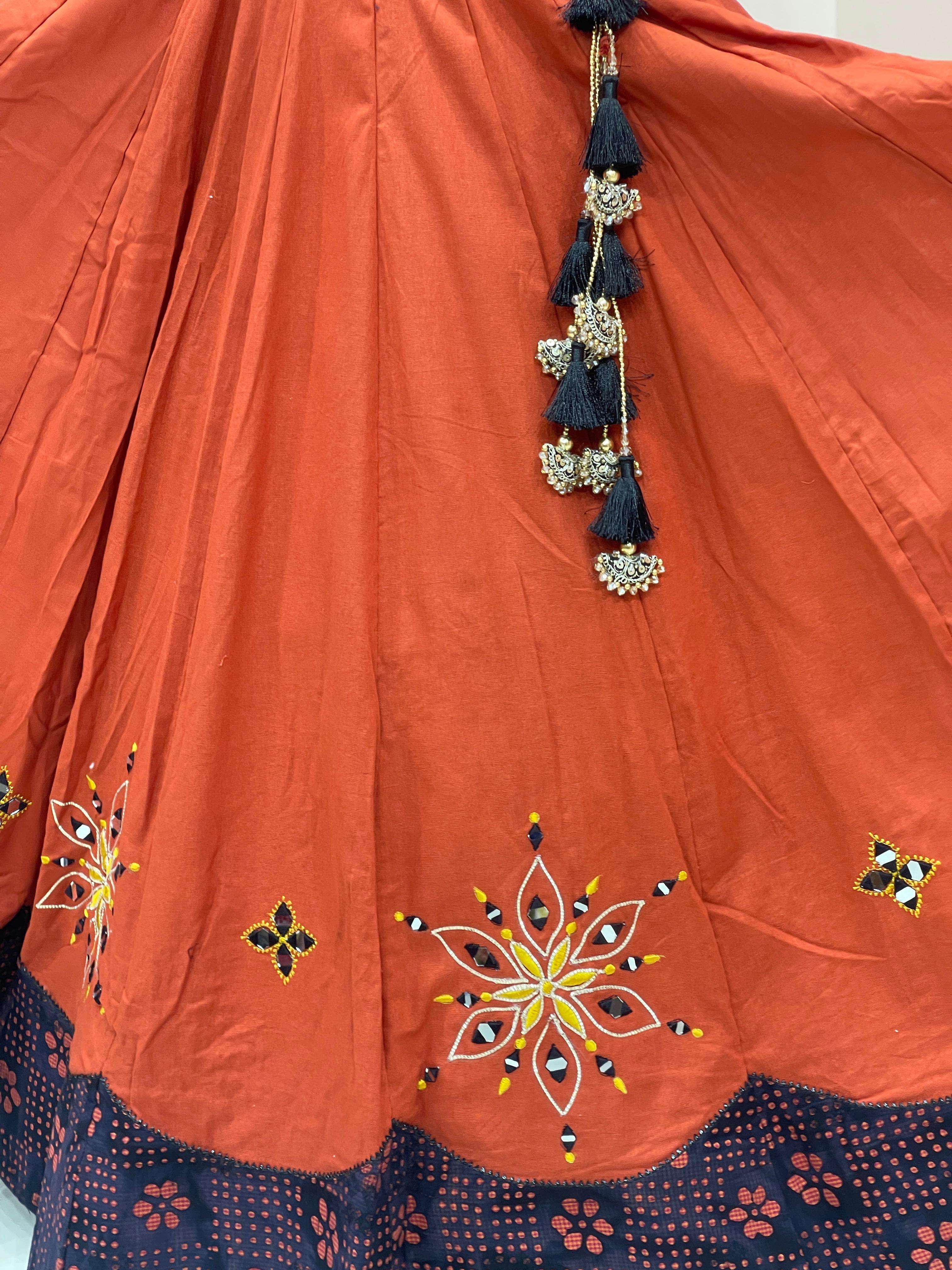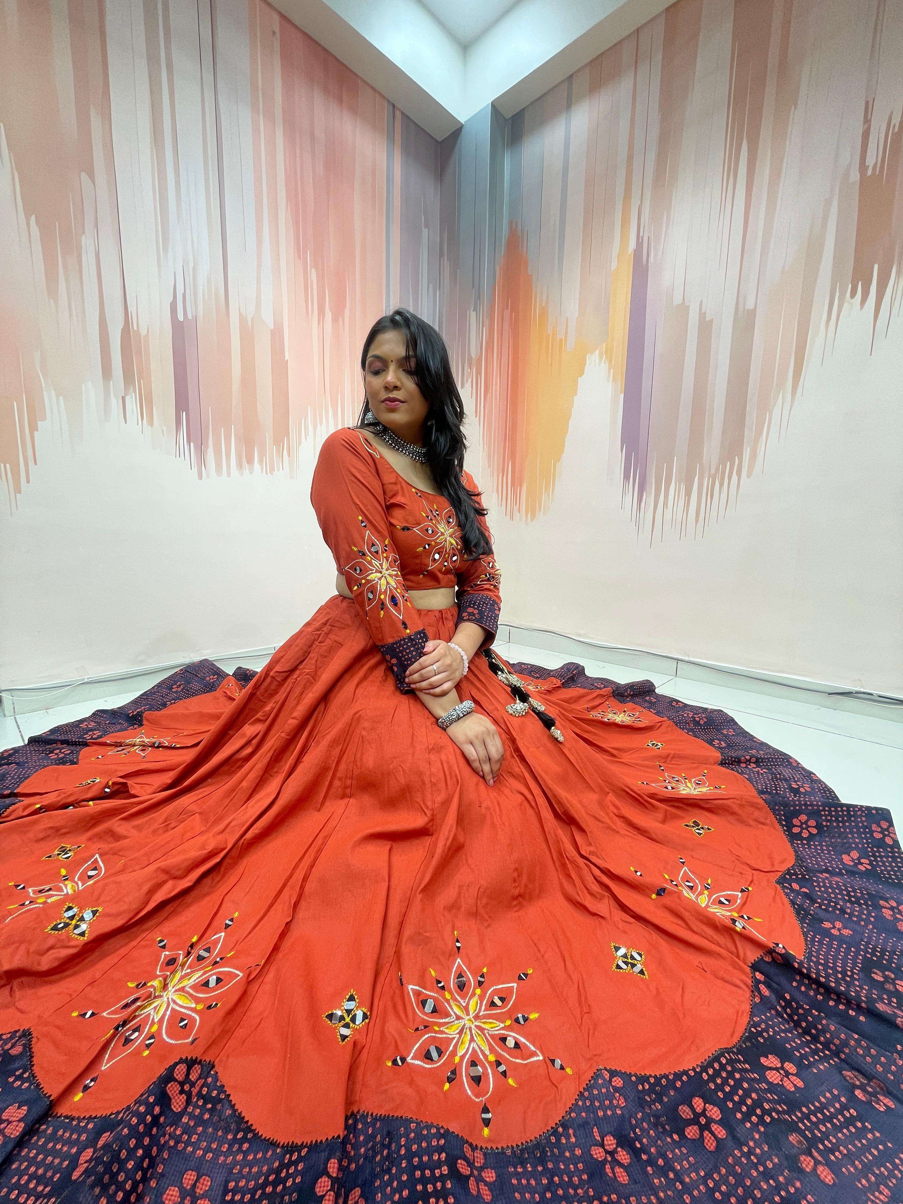 *Simple & Sober Mal & flex Cotton Classic Sober Vintage Embroidered Rust Brown Traditional Chaniya choli with Real mirror work Awsome Dupatta Designer Outfit*