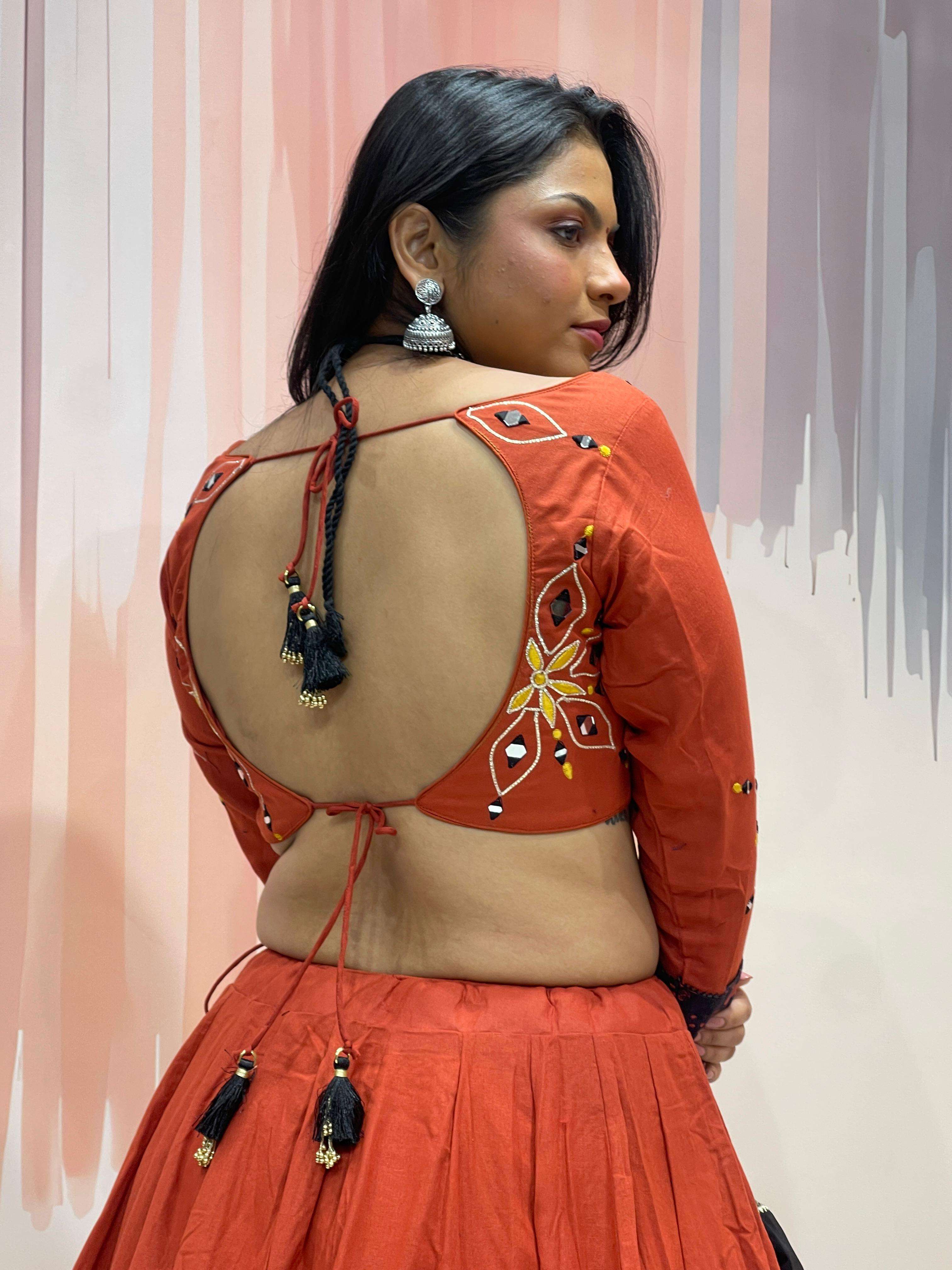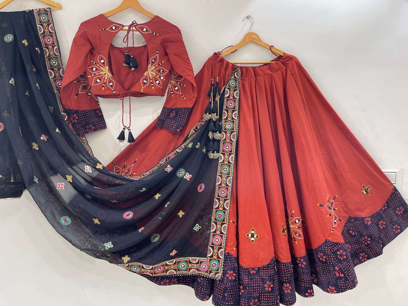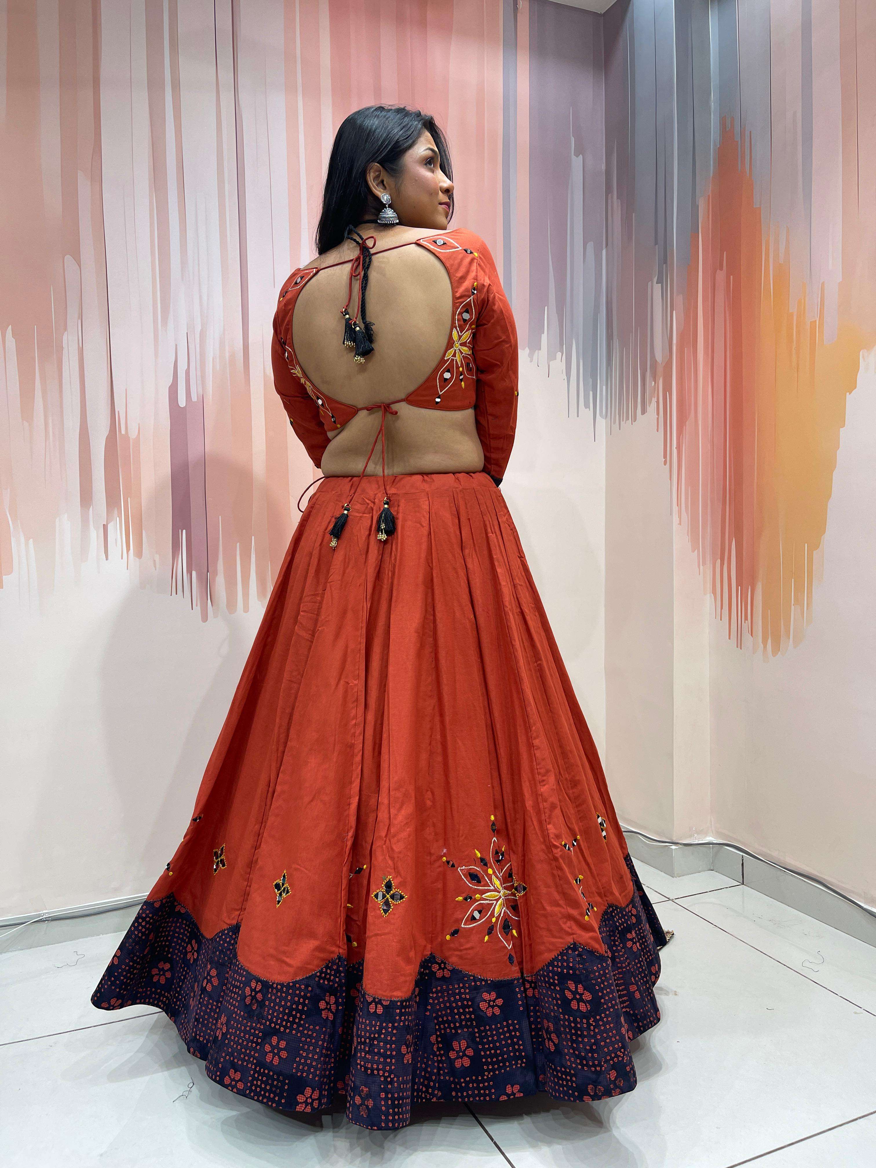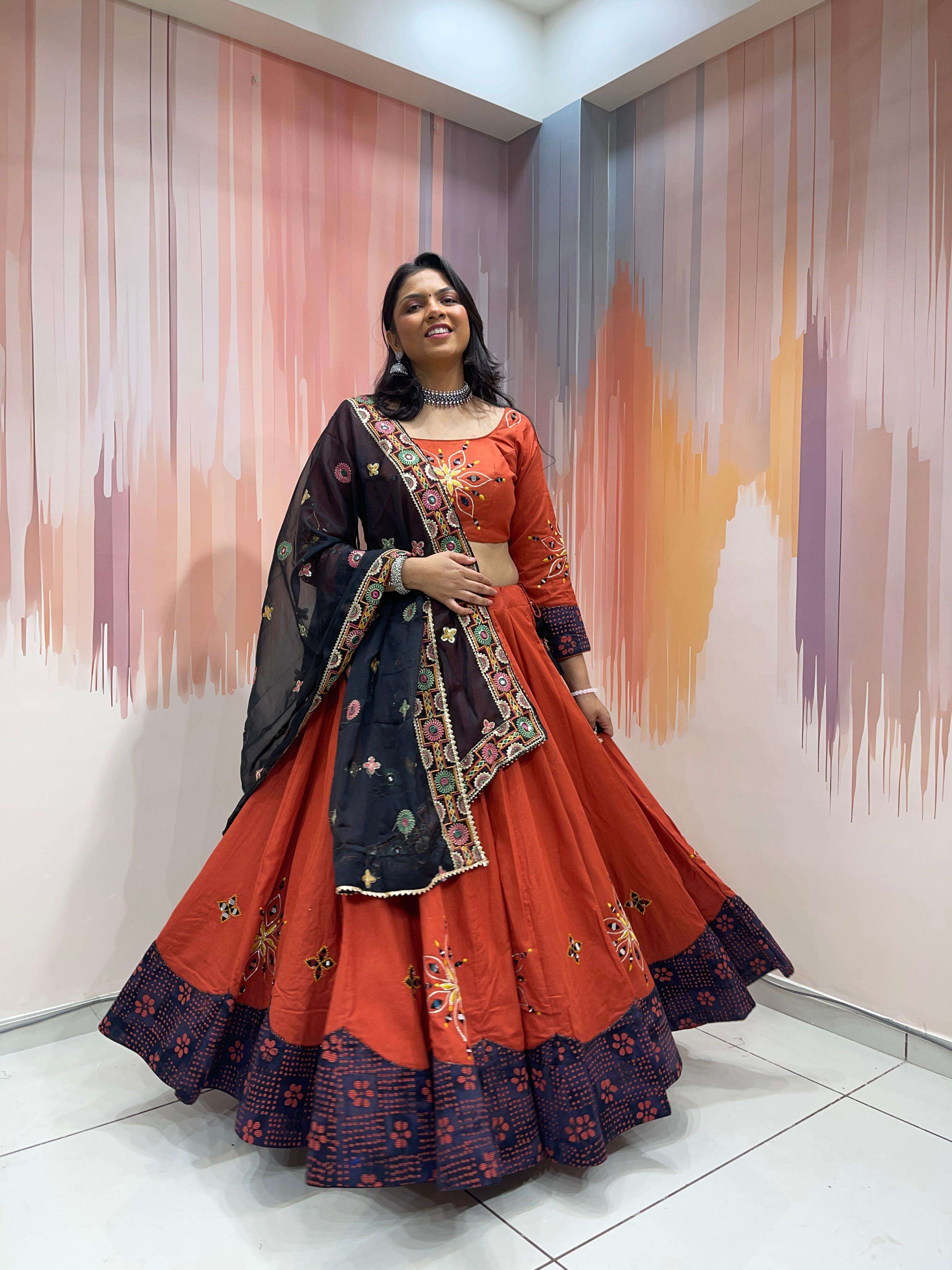 *Simple & Sober Mal & flex Cotton Classic Sober Vintage Embroidered Rust Brown Traditional Chaniya choli with Real mirror work Awsome Dupatta Designer Outfit*