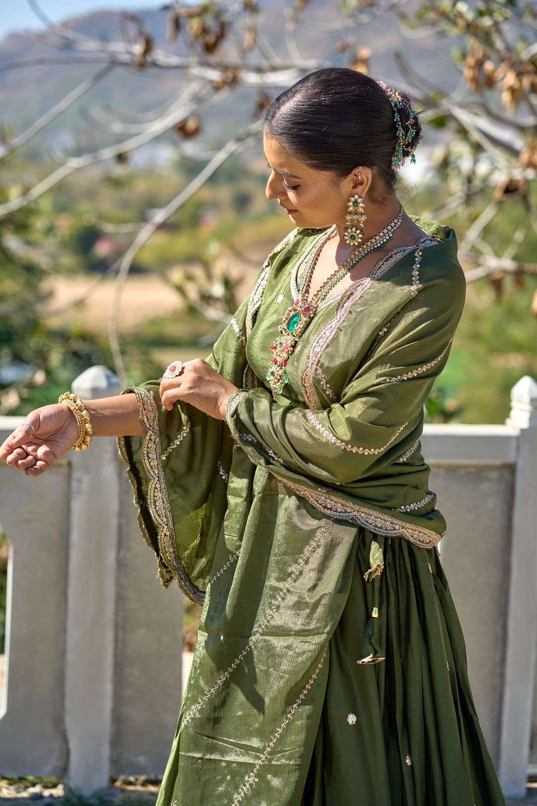 *Dupatta* Dupatta Fabric : Heavy Chinon Dupatta Work : Work Dupatta With Embroidery and Sequnce Matching Cut Work Border Length : 2.35 Meter