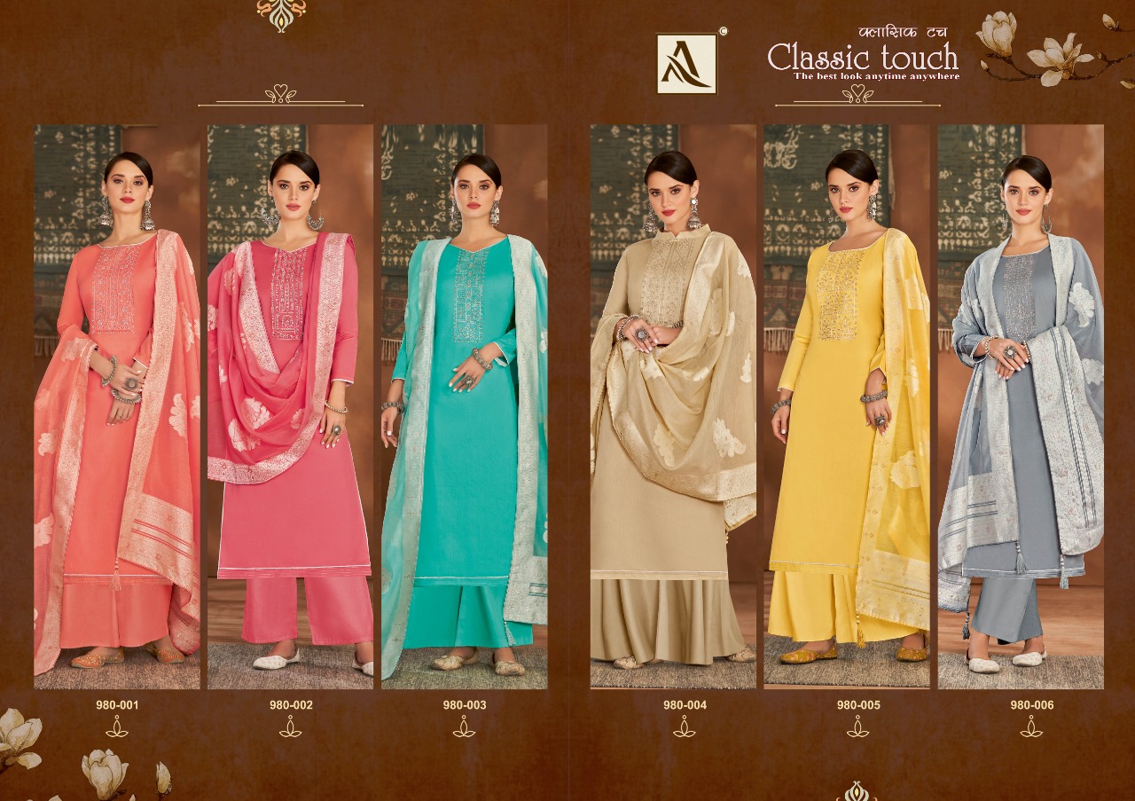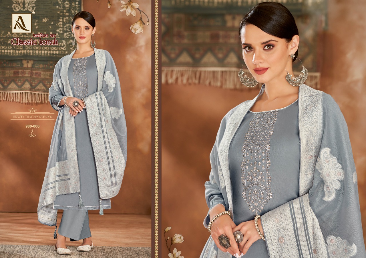 Buy Online Classic Touch By Alok Suit Wholesale Supplier Traders In Surat 6 Pcs of Full Catalogue at Wholesale Price. Looking for Classic Touch By Alok Suit Wholesale Supplier Traders In Surat Full Catalouge at Best Price? Buy Now Classic Touch By Alok Suit Wholesale Supplier Traders In Surat at Wholesale Rate of Rs 5394 with Total 6 Pcs from authroized dealer and supplier of Brand. Cost of Each piece is just only Rs 899 which is very low and affordable price to resale the product in your retail store ,This is Surat based Wholesale Supplier & Dealer of Brand. Click on Brand name to Know more about Brand's products.Call or Whatsapp on 9898838984 for booking or enquiry
