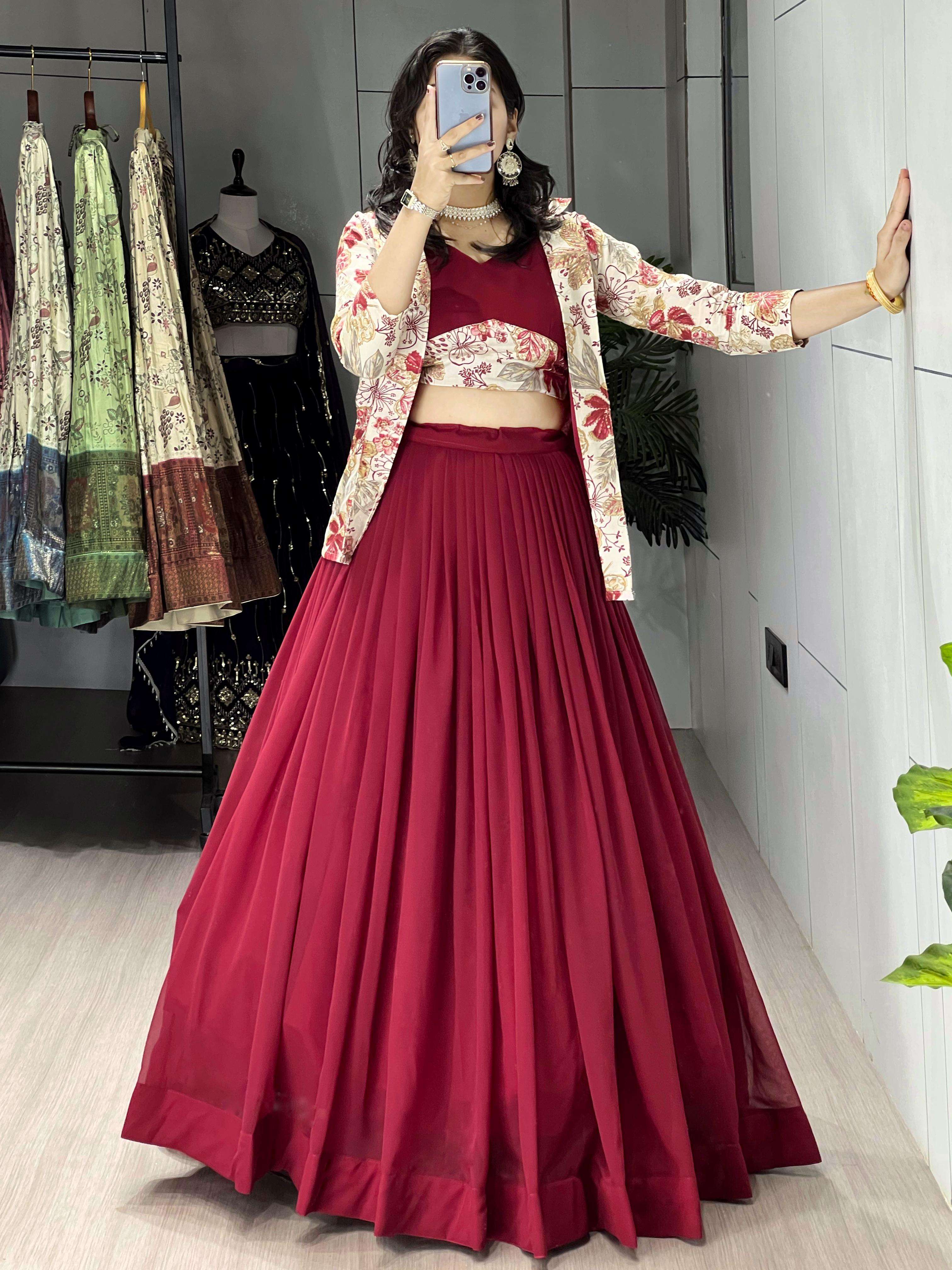 *Package Contain* Lehenga, Blouse stitched,Koti Fully Stitched, Drawstring with Zip,