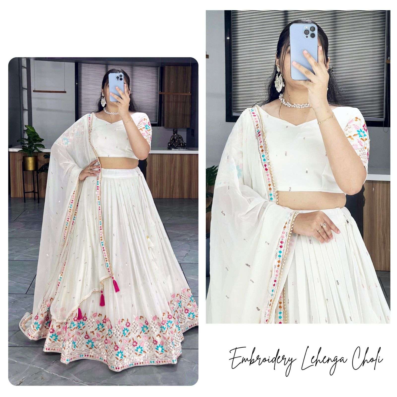 Classical Off White Embroidery Lehenga Collection Manufacturer Surat
