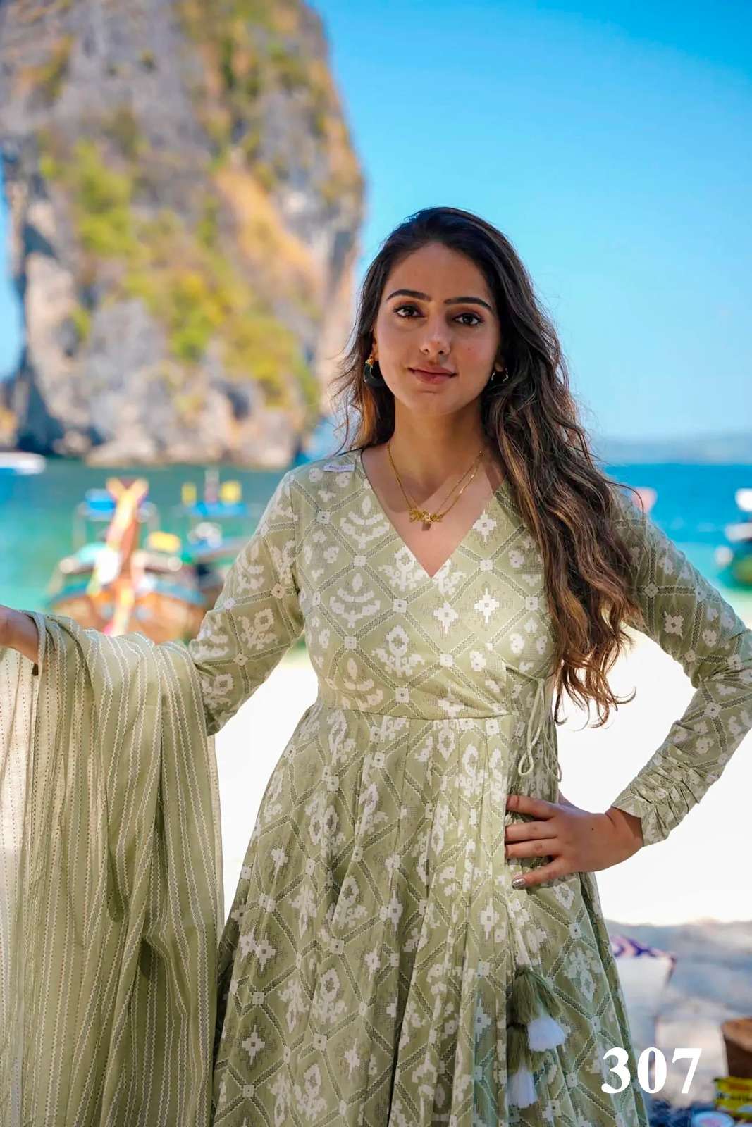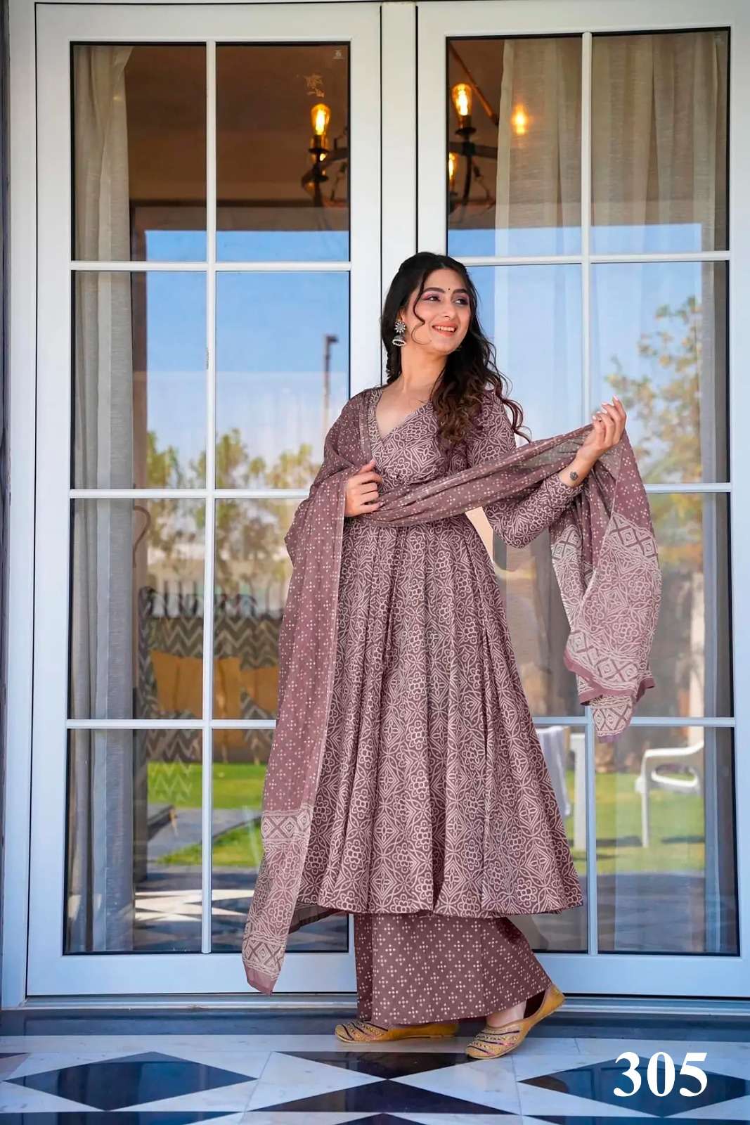 presents this Designer 3pcs beautiful printed Anghrakha Kurti ,bottom with dupatta Collection (set of 8 beautiful design 301 to 308)