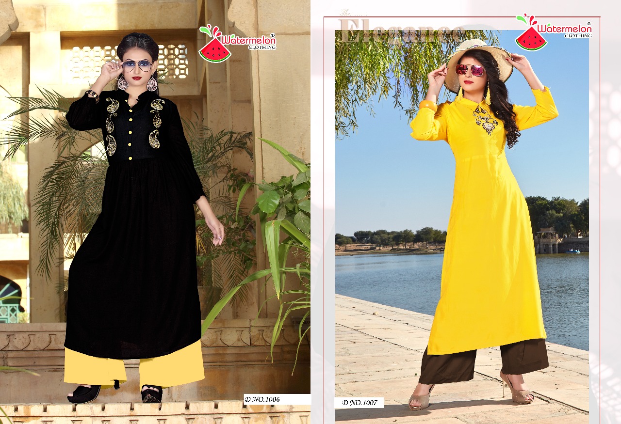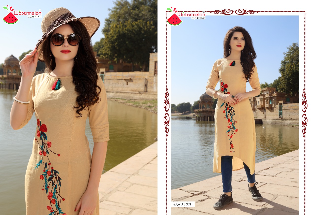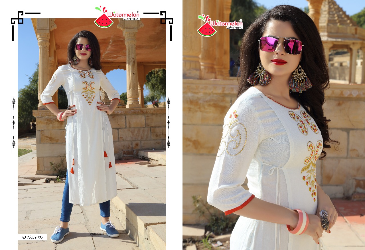 Buy Online Cocktail Vol 2 By Watermelon 1001 Series Fancy Reyon Kurti Collection Wholesale Dealer Surat 7 Pcs of Full Catalogue at Wholesale Price. Looking for Cocktail Vol 2 By Watermelon 1001 Series Fancy Reyon Kurti Collection Wholesale Dealer Surat Full Catalouge at Best Price? Buy Now Cocktail Vol 2 By Watermelon 1001 Series Fancy Reyon Kurti Collection Wholesale Dealer Surat at Wholesale Rate of Rs 3465 with Total 7 Pcs from authroized dealer and supplier of WATERMELON Brand. Cost of Each piece is just only Rs 495 which is very low and affordable price to resale the product in your retail store ,This is Surat based Wholesale Supplier & Dealer of WATERMELON Brand. Click on Brand name to Know more about WATERMELON Brand's products.Call or Whatsapp on 9898838984 for booking or enquiry