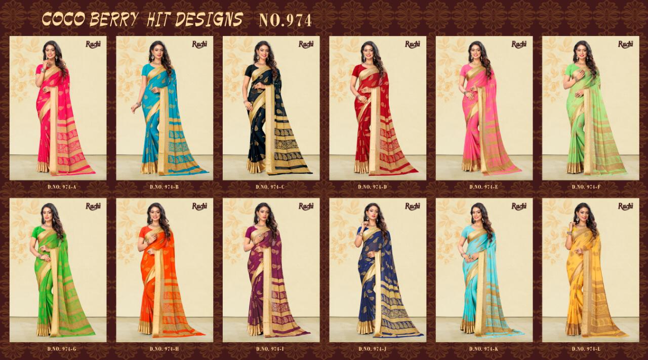 Coco Berry Hit Design By Ruchi 974 Colours Fancy Satin Patta Printed Saree Catlog Wholesaler Surat