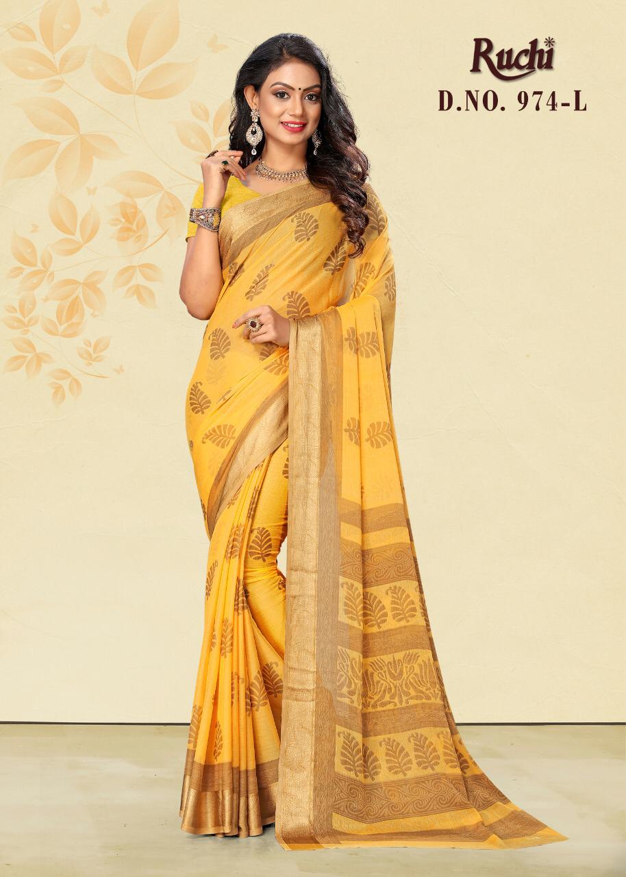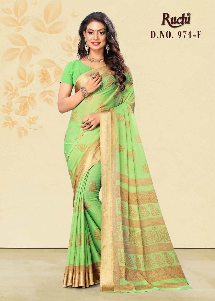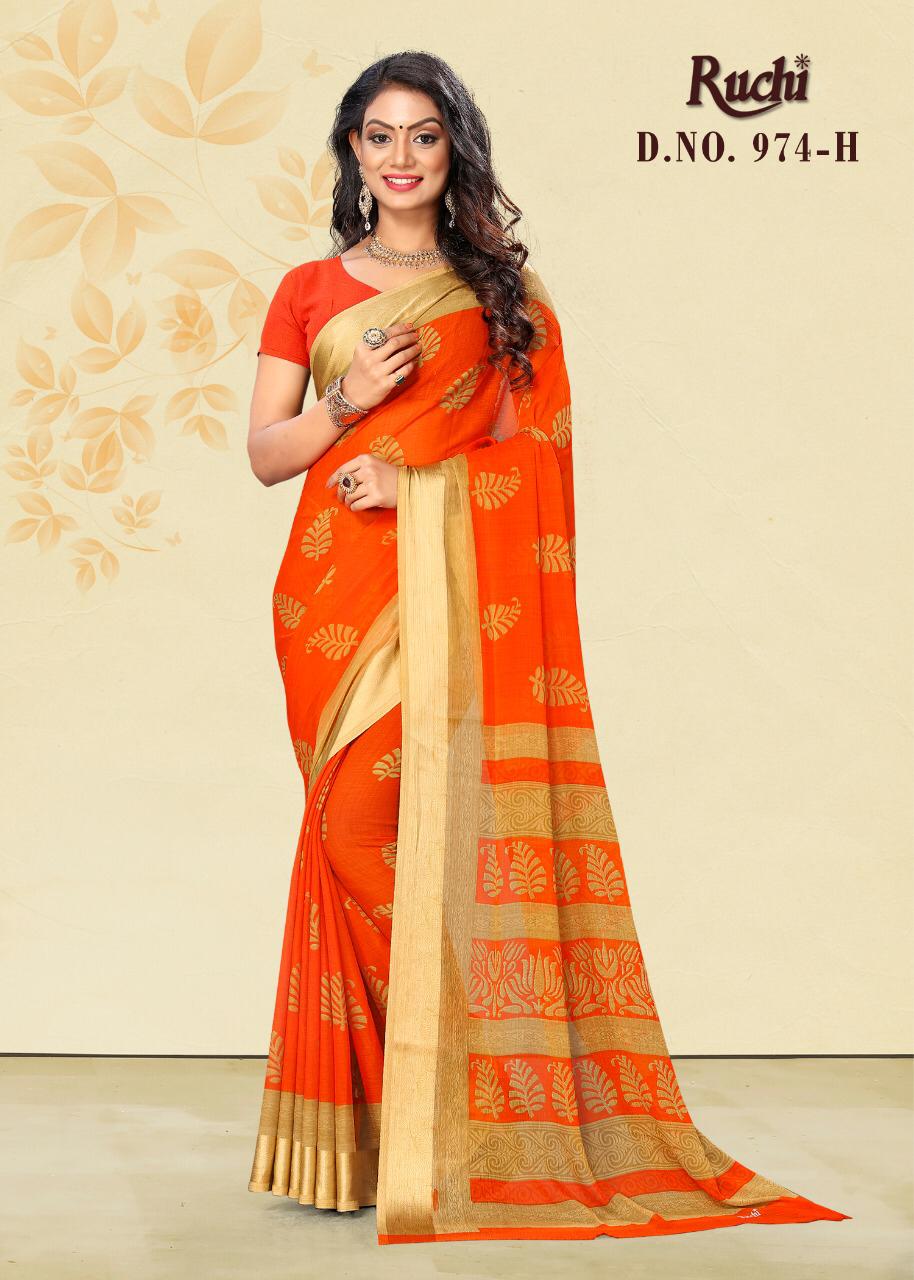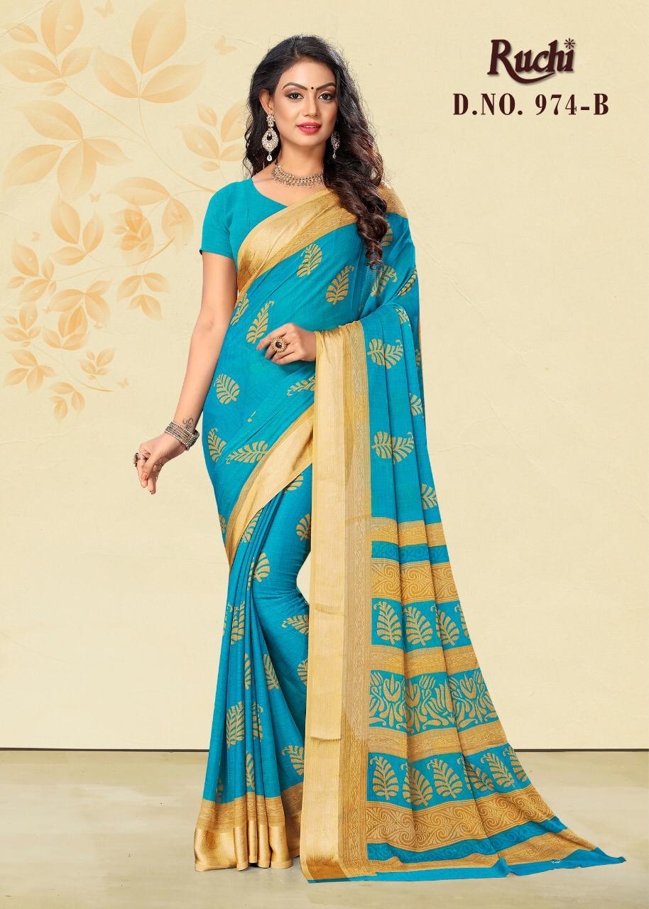 Buy Online Coco Berry Hit Design By Ruchi 974 Colours Fancy Satin Patta Printed Saree Catlog Wholesaler Surat 12 Pcs of Full Catalogue at Wholesale Price. Looking for Coco Berry Hit Design By Ruchi 974 Colours Fancy Satin Patta Printed Saree Catlog Wholesaler Surat Full Catalouge at Best Price? Buy Now Coco Berry Hit Design By Ruchi 974 Colours Fancy Satin Patta Printed Saree Catlog Wholesaler Surat at Wholesale Rate of Rs 5100 with Total 12 Pcs from authroized dealer and supplier of RUCHI SAREE Brand. Cost of Each piece is just only Rs 425 which is very low and affordable price to resale the product in your retail store ,This is Surat based Wholesale Supplier & Dealer of RUCHI SAREE Brand. Click on Brand name to Know more about RUCHI SAREE Brand's products.Call or Whatsapp on 9898838984 for booking or enquiry