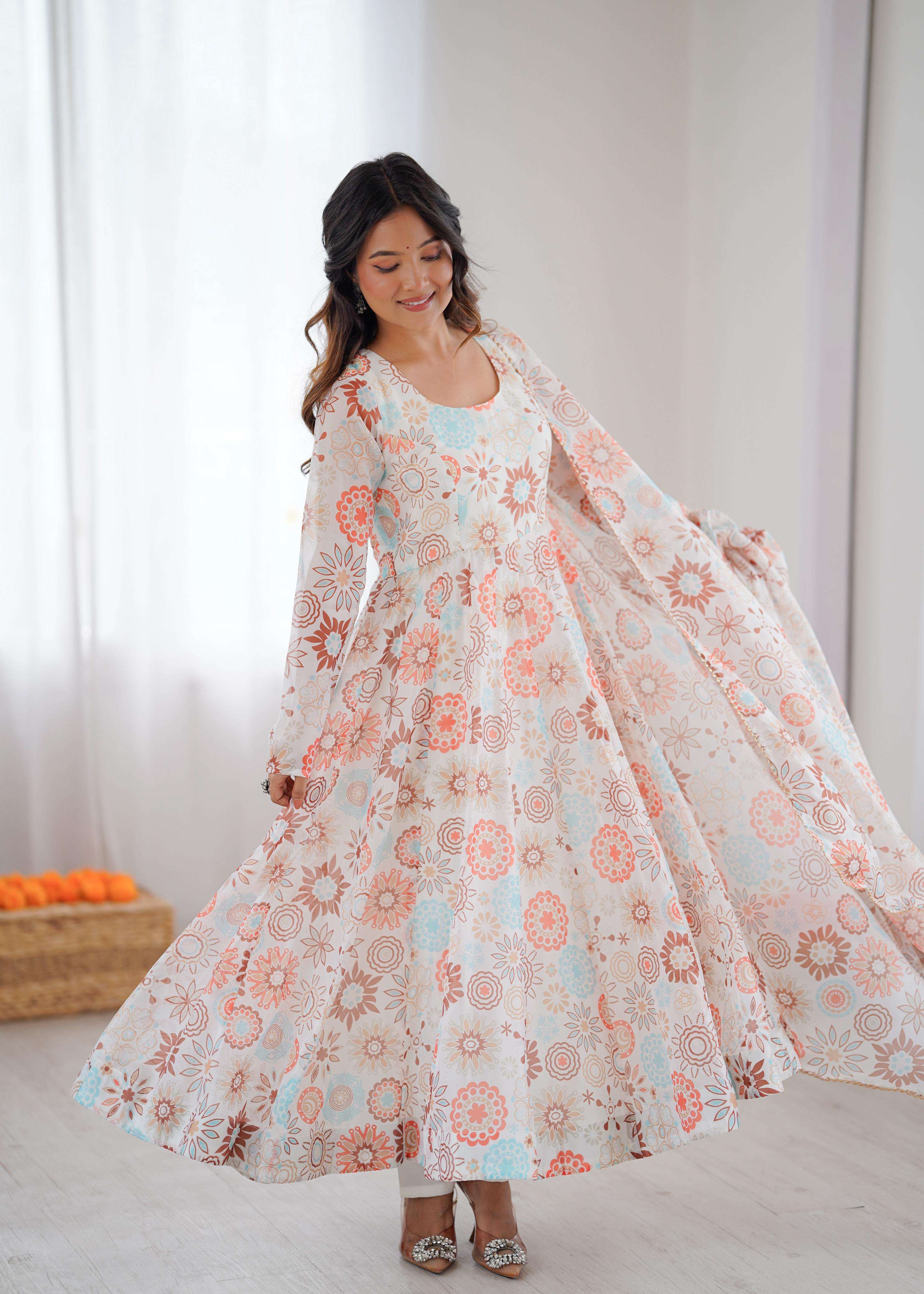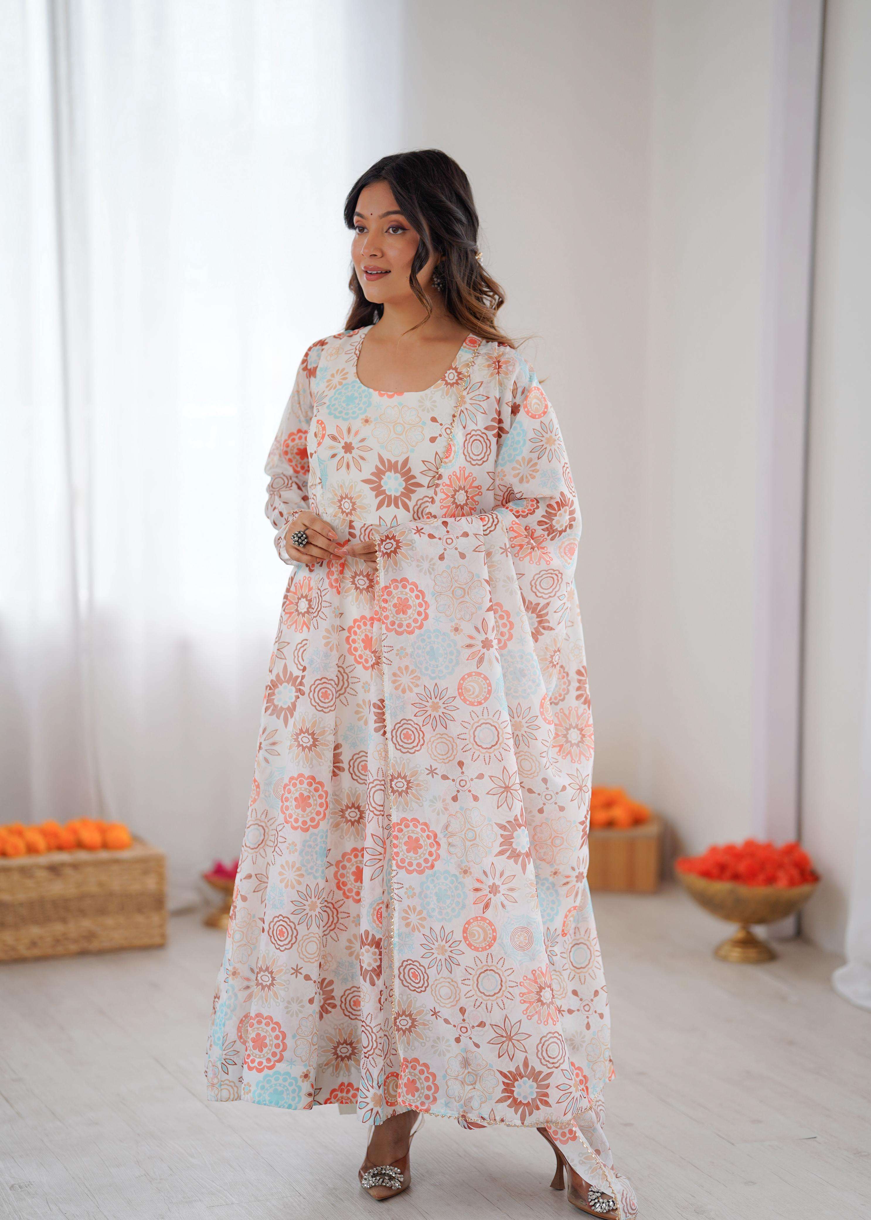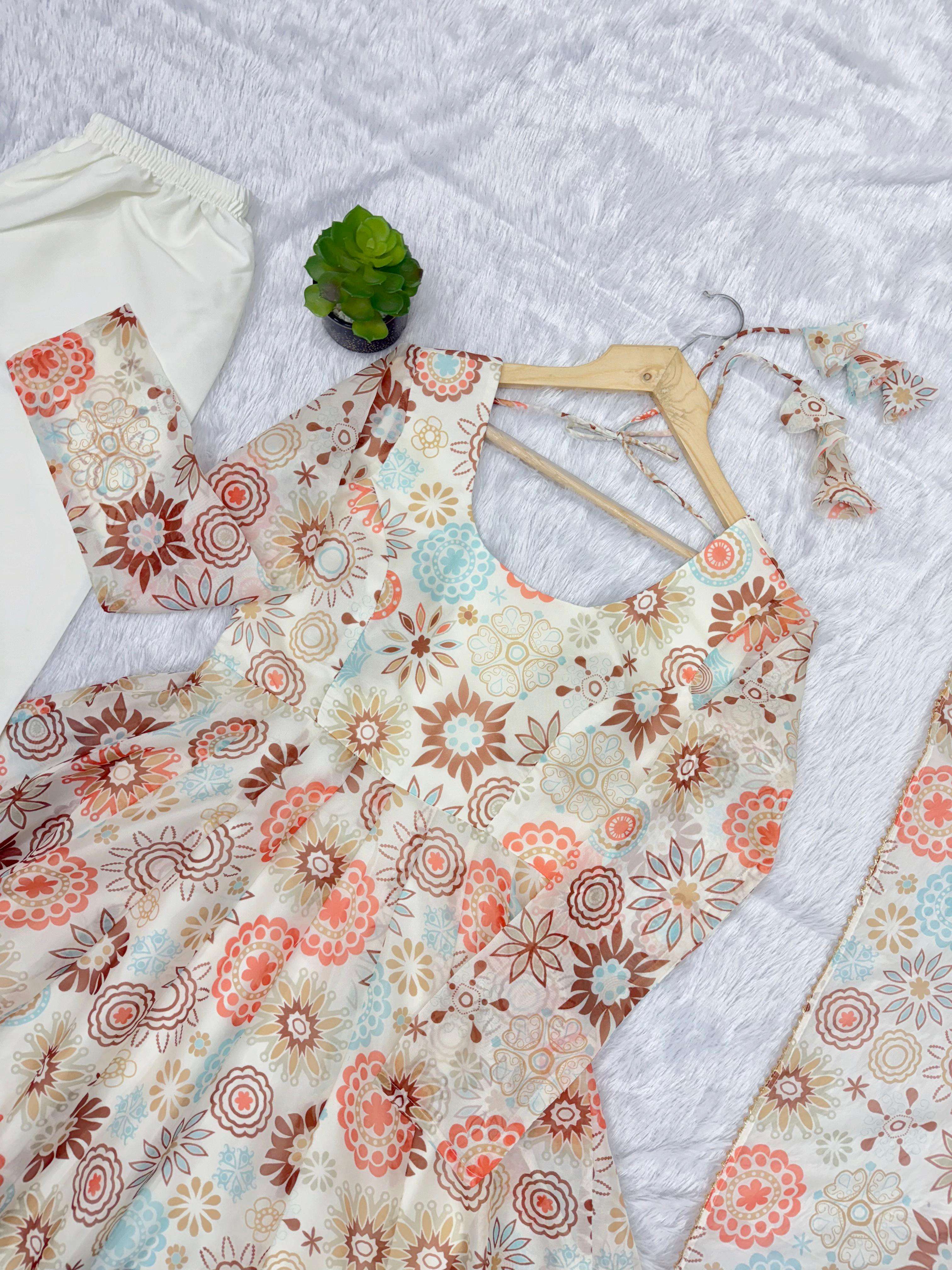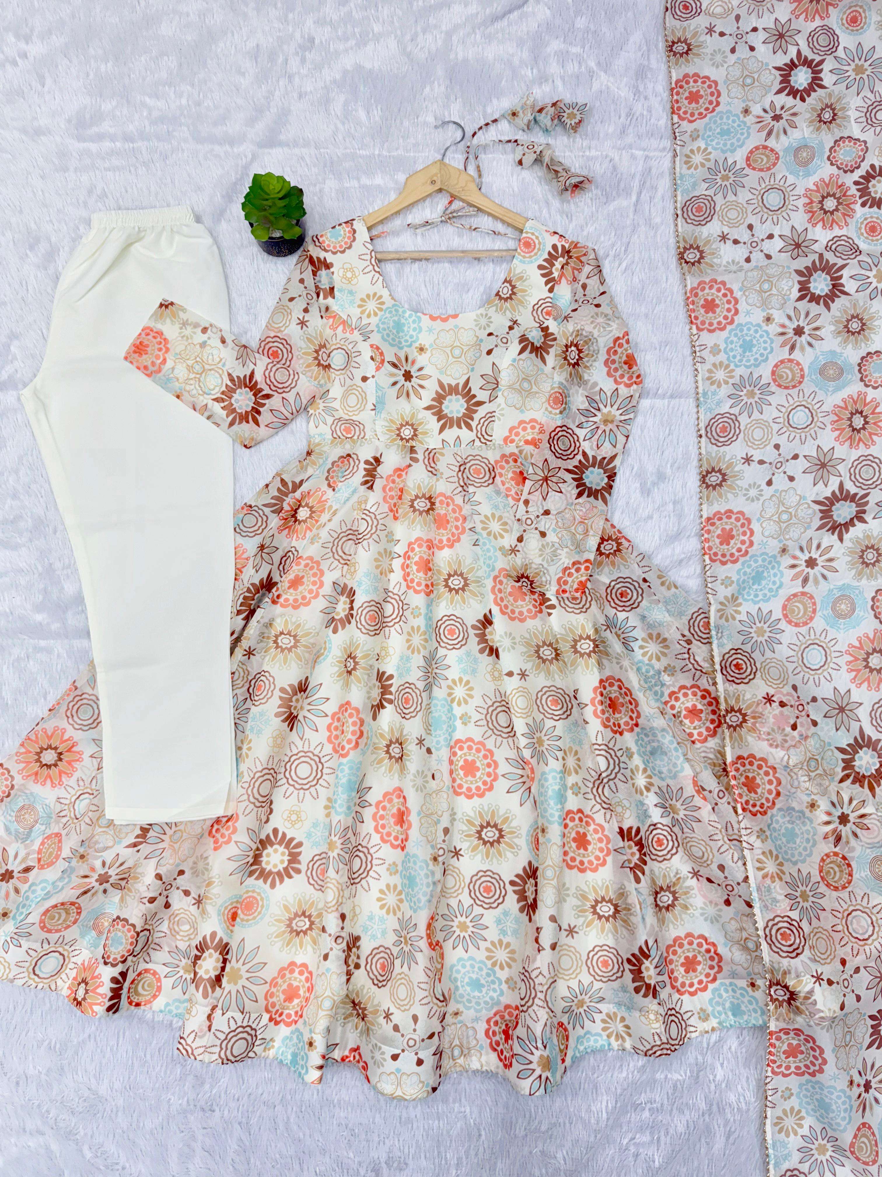 *CODE-21* *FABRIC*:PURE SOFT LIGHTWEIGHT ORGANZA FLORAL PRINT FABRIC INNER MICRO COTTON