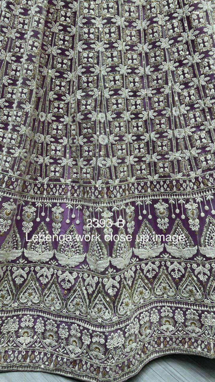 Code : 2393 Lehenga : Fabric - Bridal net Work - Patterned thread work sequins work Embroidered fancy Stitching - standard cancan and canvas attached Size - free size up to 42
