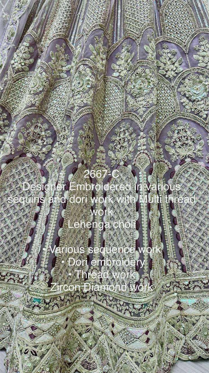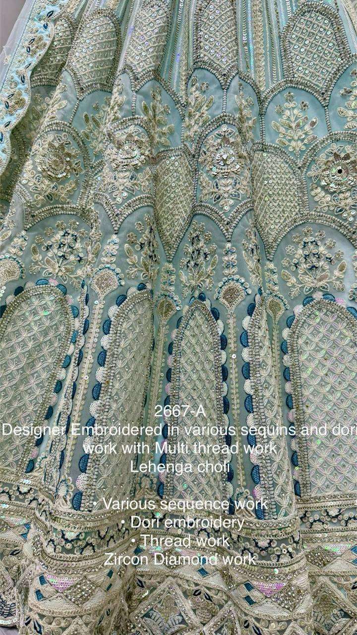 Code : 2667 Lehenga : Fabric - Heavy Net Work - Various sequence work Dori embroidery Thread work Zircon Diamond work Stitching - standard cancan and canvas attached Size - free size up to 42