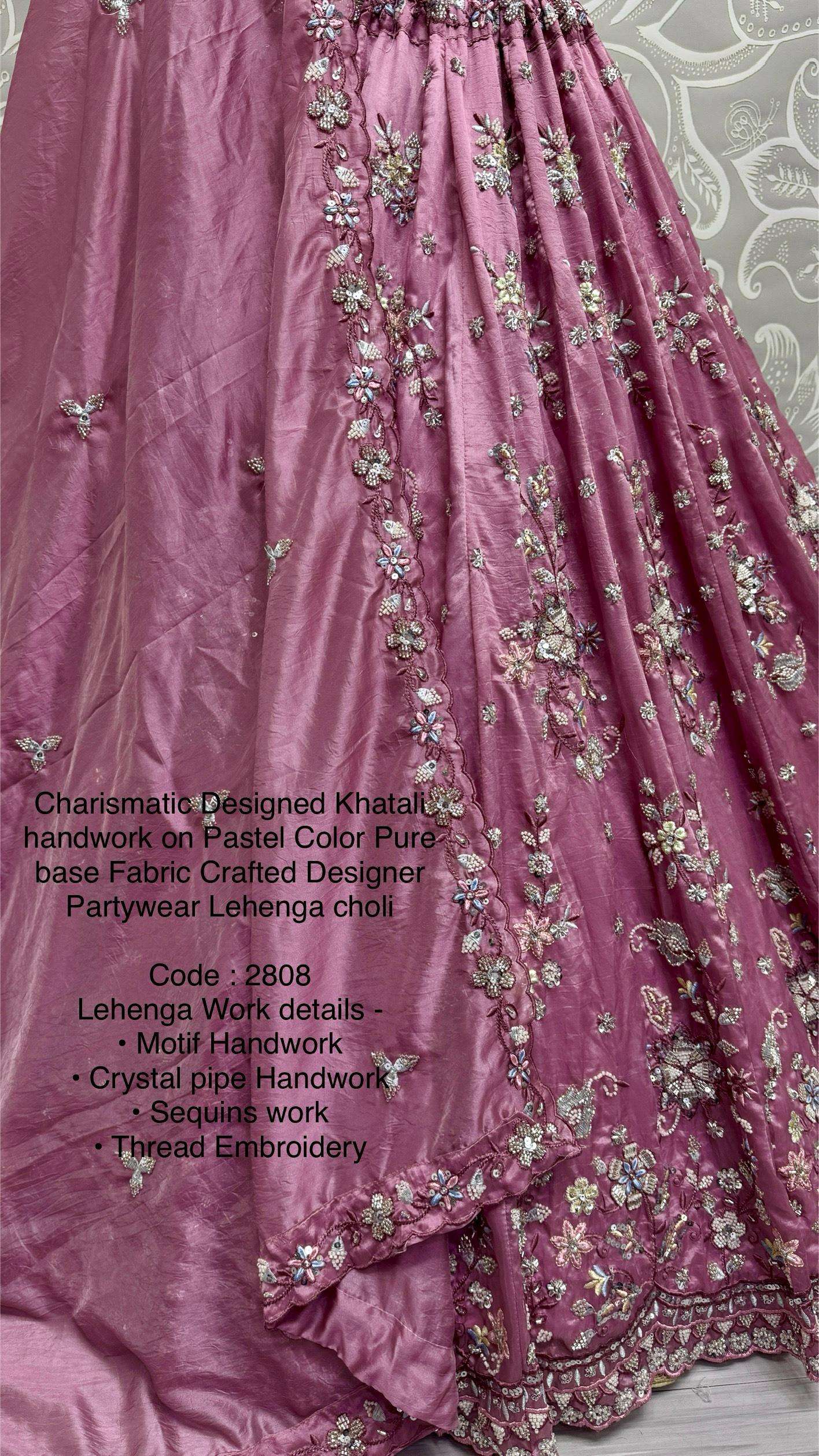 Charismatic Designed Khatali handwork on Pastel Color Pure base Fabric Crafted Designer Partywear Lehenga choli