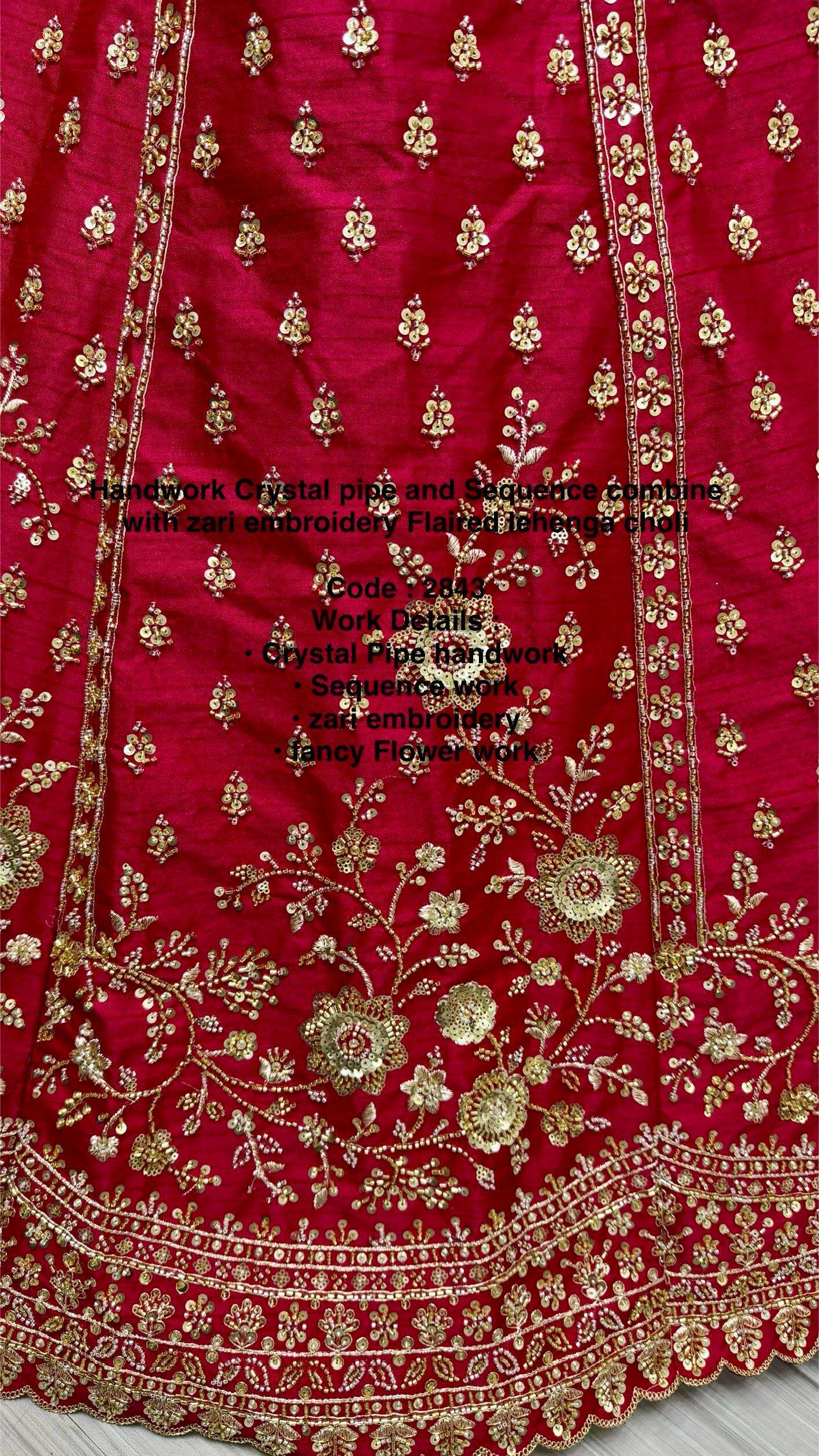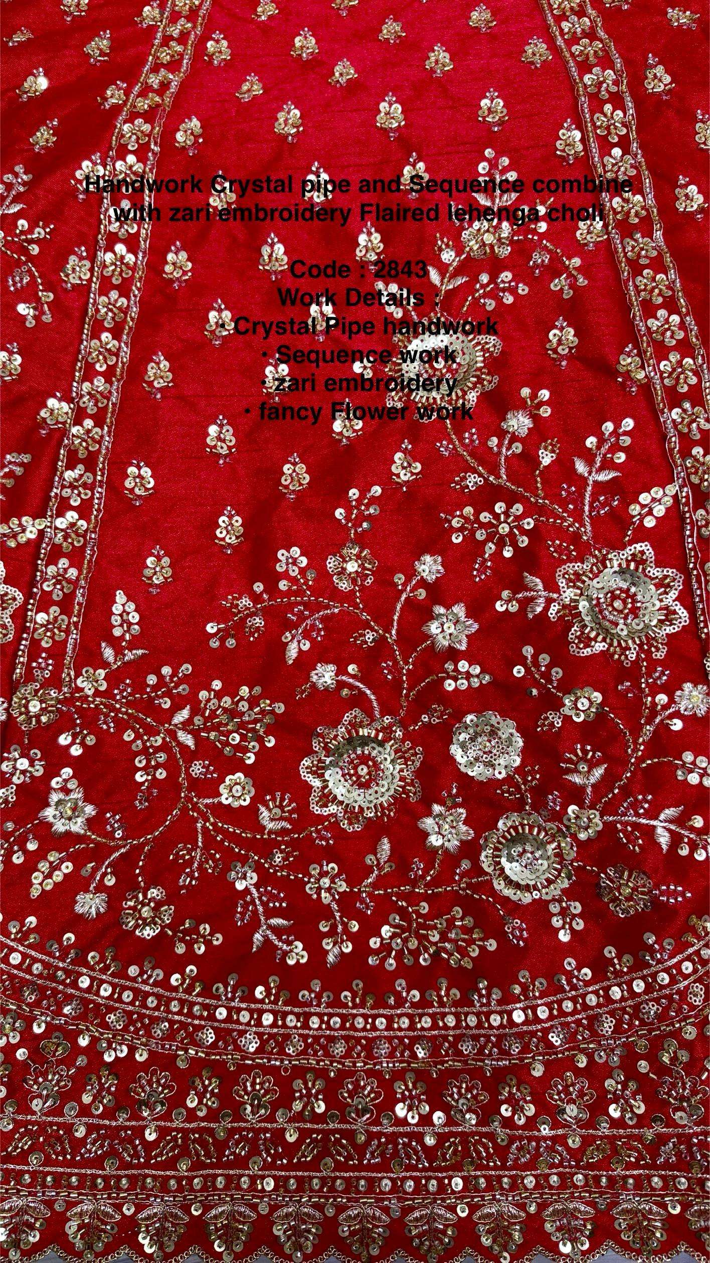 Handwork Crystal pipe and Sequence combine with zari embroidery Flaired lehenga choli