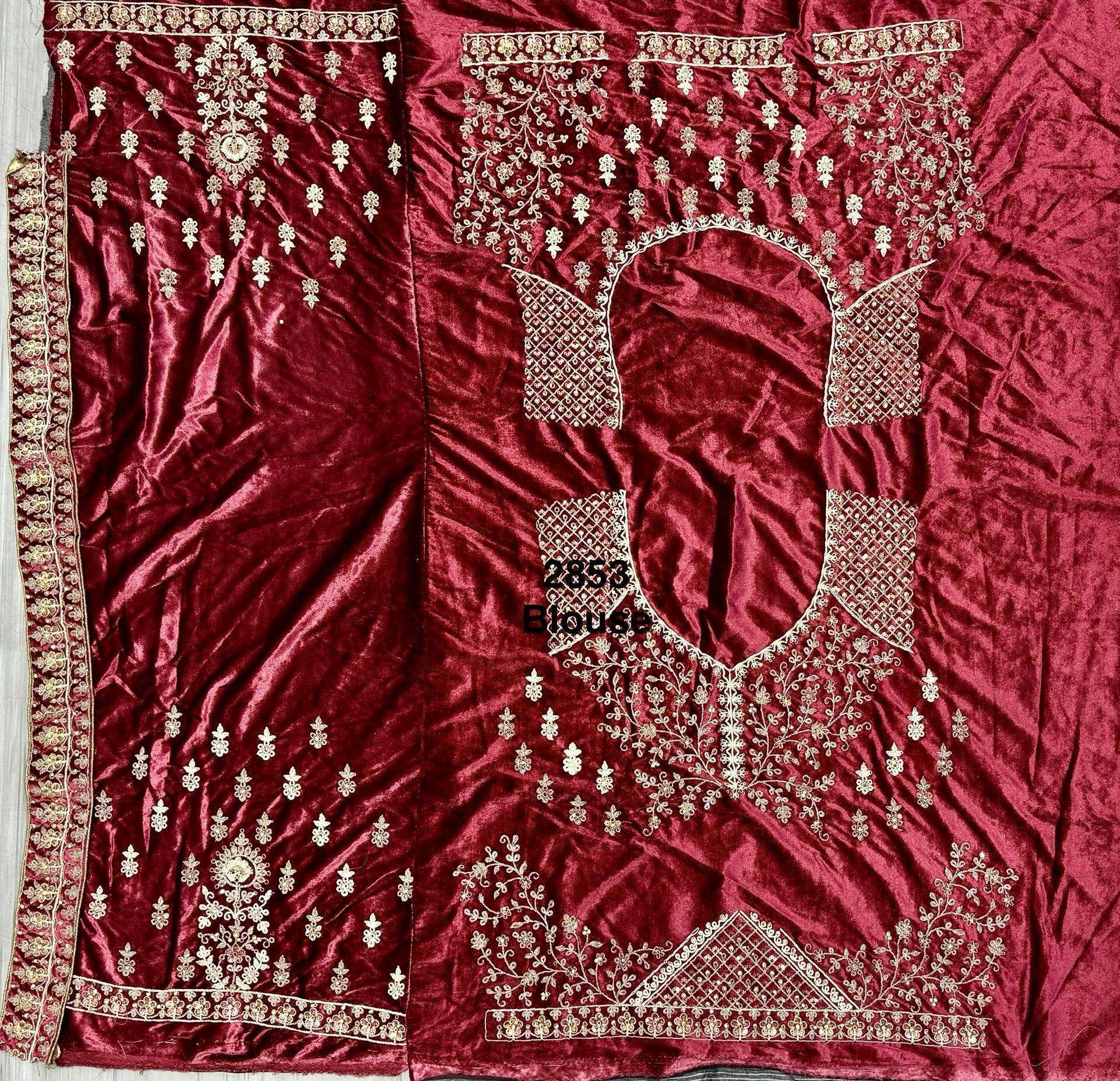 Blouse : Fabric - Velvet Work - same as lehenga Backside - yes work is there Size - 1 meter unstitched