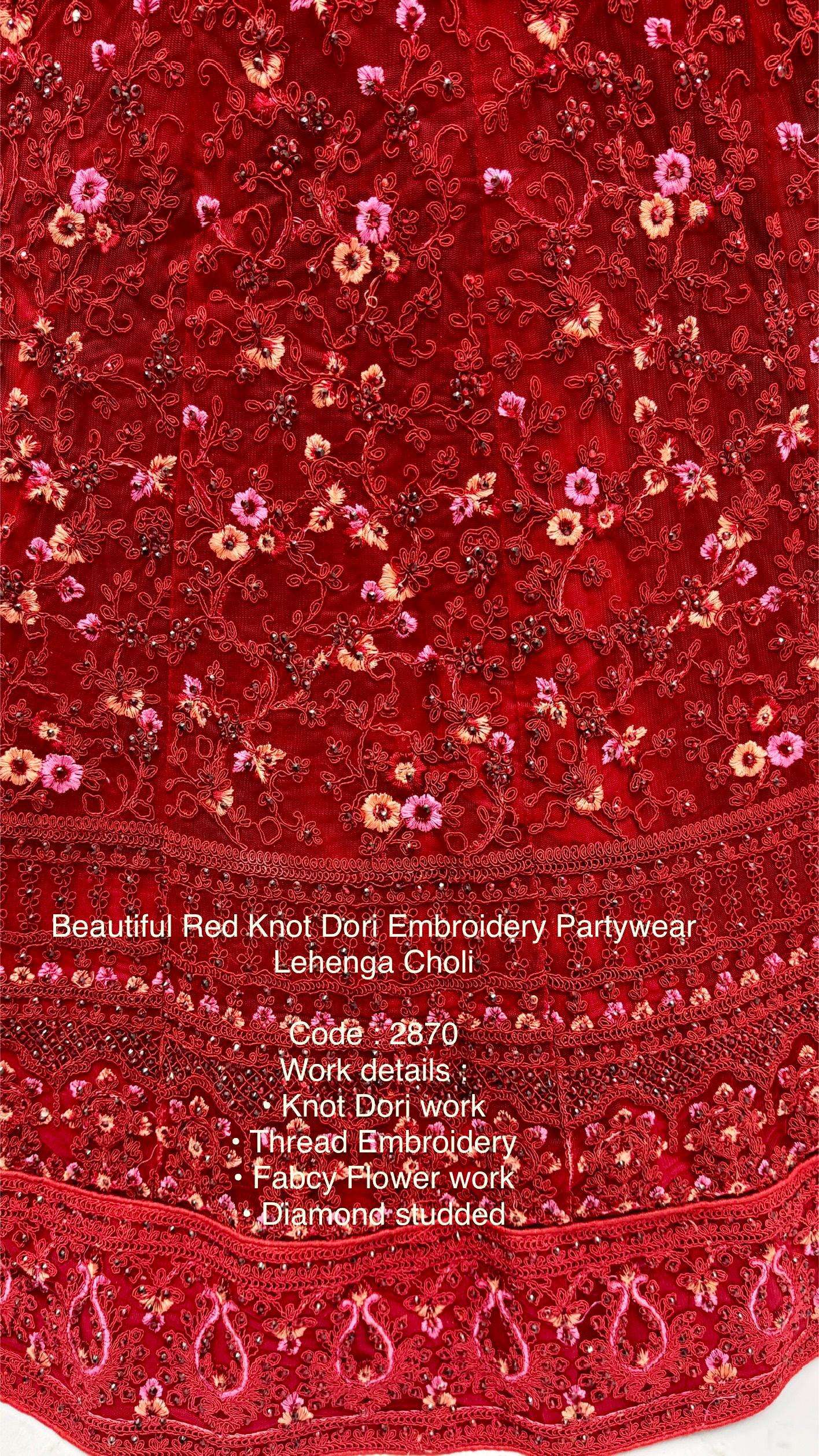 Beautiful Red Knot Dori Embroidery Partywear Lehenga Choli