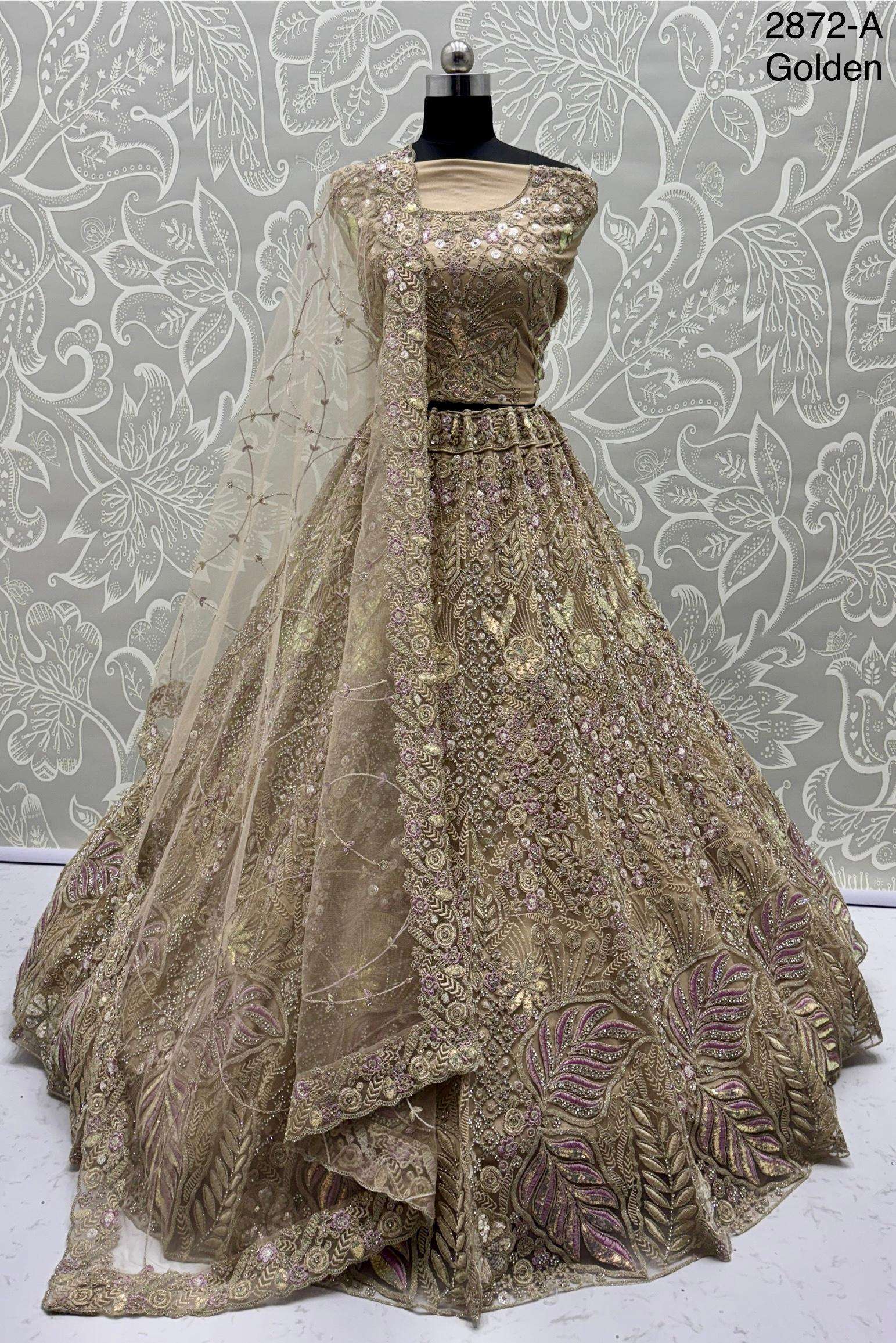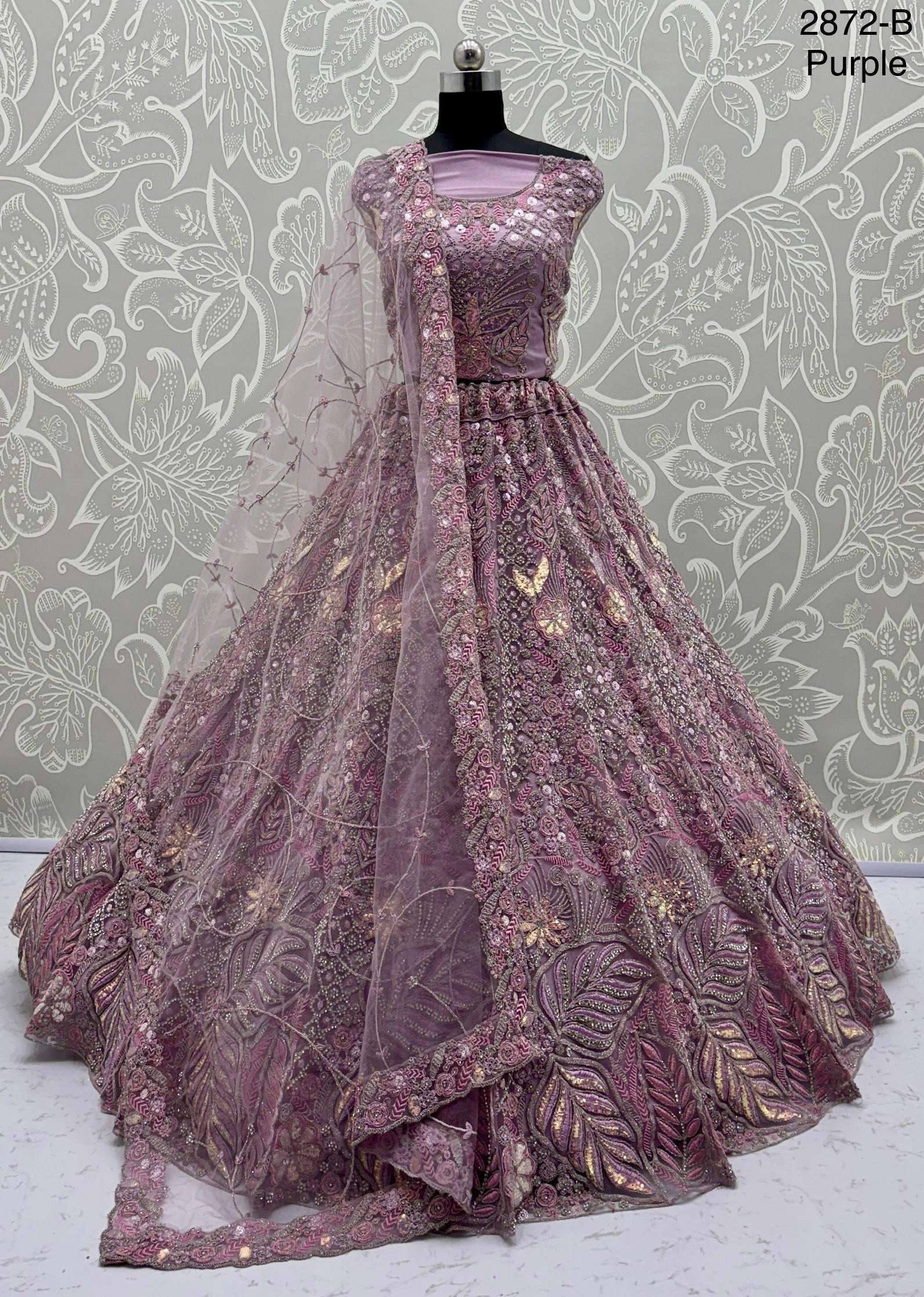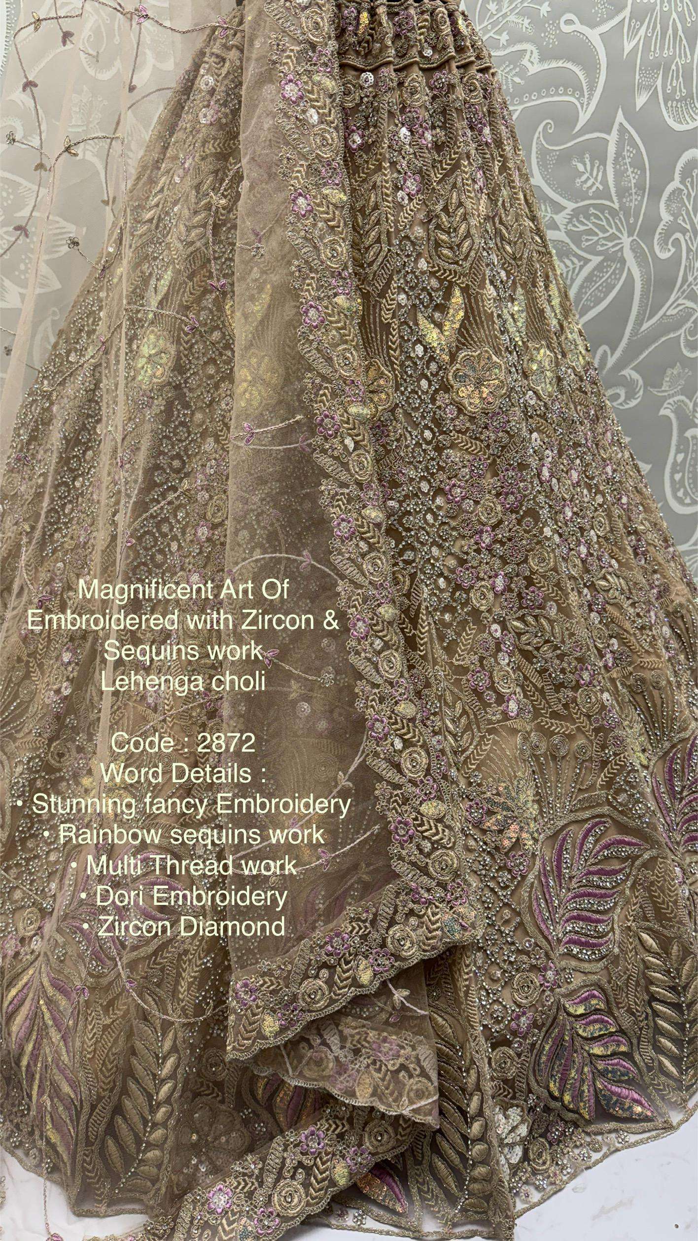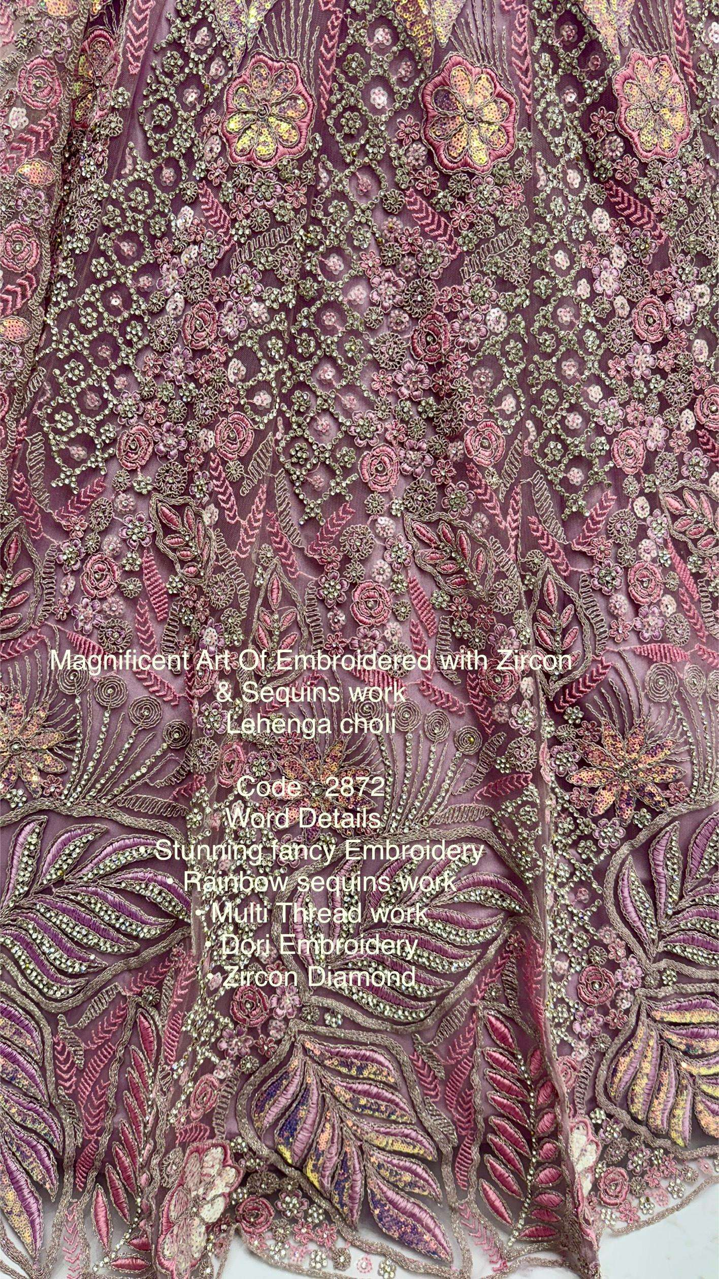 Code : 2872 Lehenga : Fabric - Net Word - • Stunning fancy Embroidery • Rainbow sequins work • Multi Thread work • Dori Embroidery • Zircon Diamond Stitching - standard cancan and canvas attached free size lehenga Flair -up to 4 meter Size - free size up to 42