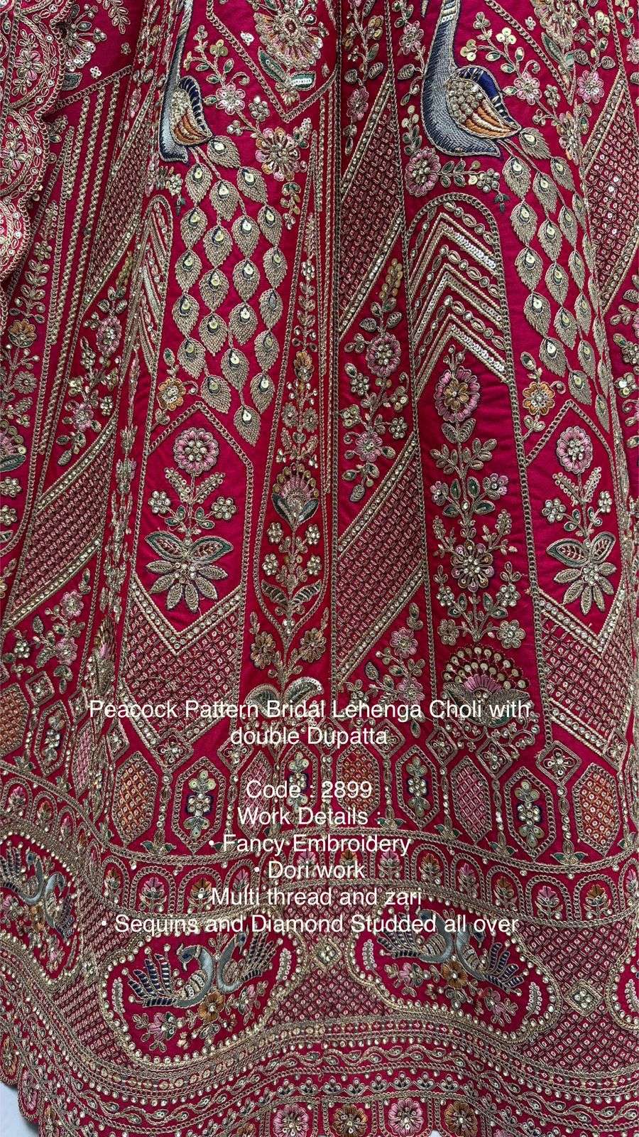 Buy Online Code 2899 Bridal Lehenga Choli with double Dupatta Collection manufacturer Surat 1 Pcs of Full Catalogue at Wholesale Price. Looking for Code 2899 Bridal Lehenga Choli with double Dupatta Collection manufacturer Surat Full Catalouge at Best Price? Buy Now Code 2899 Bridal Lehenga Choli with double Dupatta Collection manufacturer Surat at Wholesale Rate of Rs 12999 with Total 1 Pcs from authroized dealer and supplier of BRAND'S Brand. Cost of Each piece is just only Rs 12999 which is very low and affordable price to resale the product in your retail store ,This is Surat based Wholesale Supplier & Dealer of BRAND'S Brand. Click on Brand name to Know more about BRAND'S Brand's products.Call or Whatsapp on 9898838984 for booking or enquiry