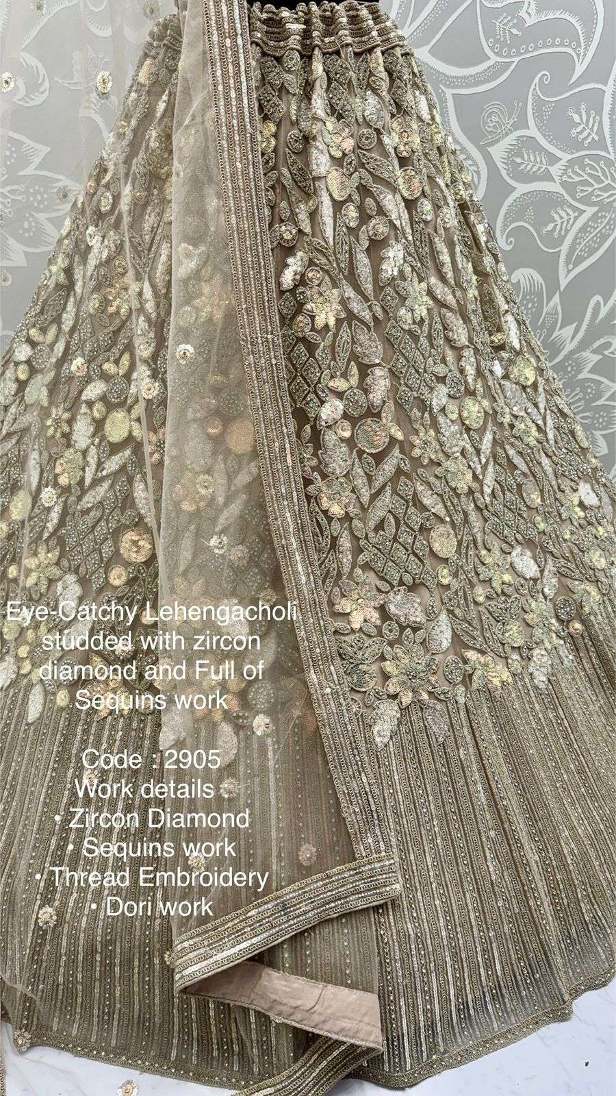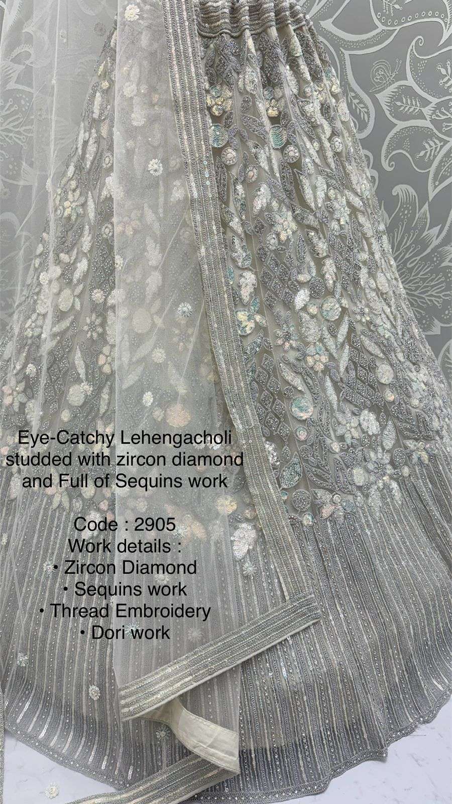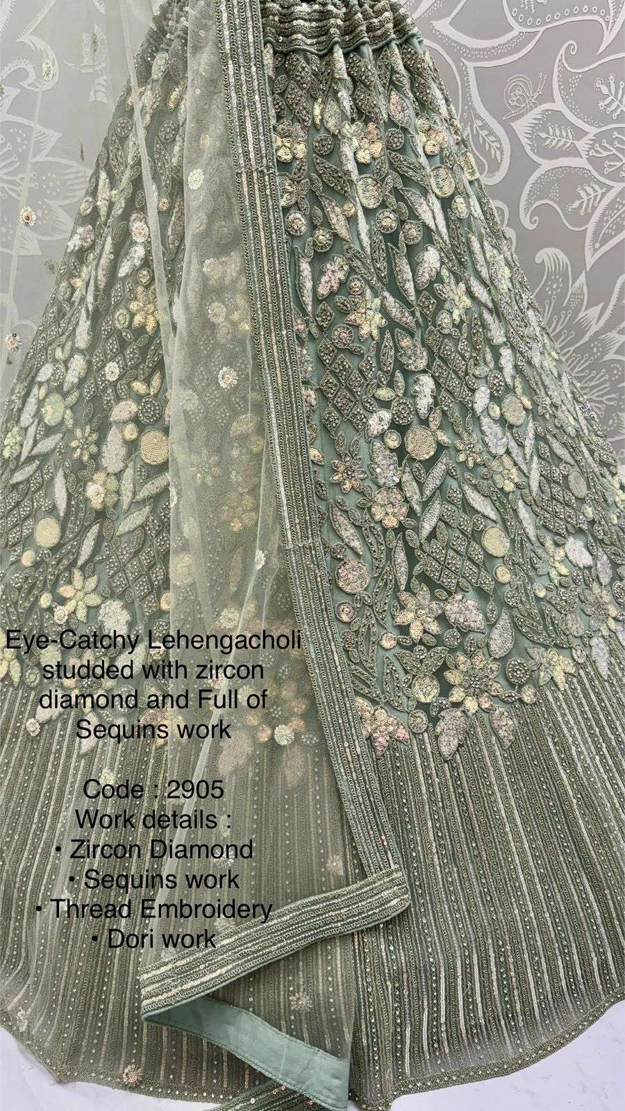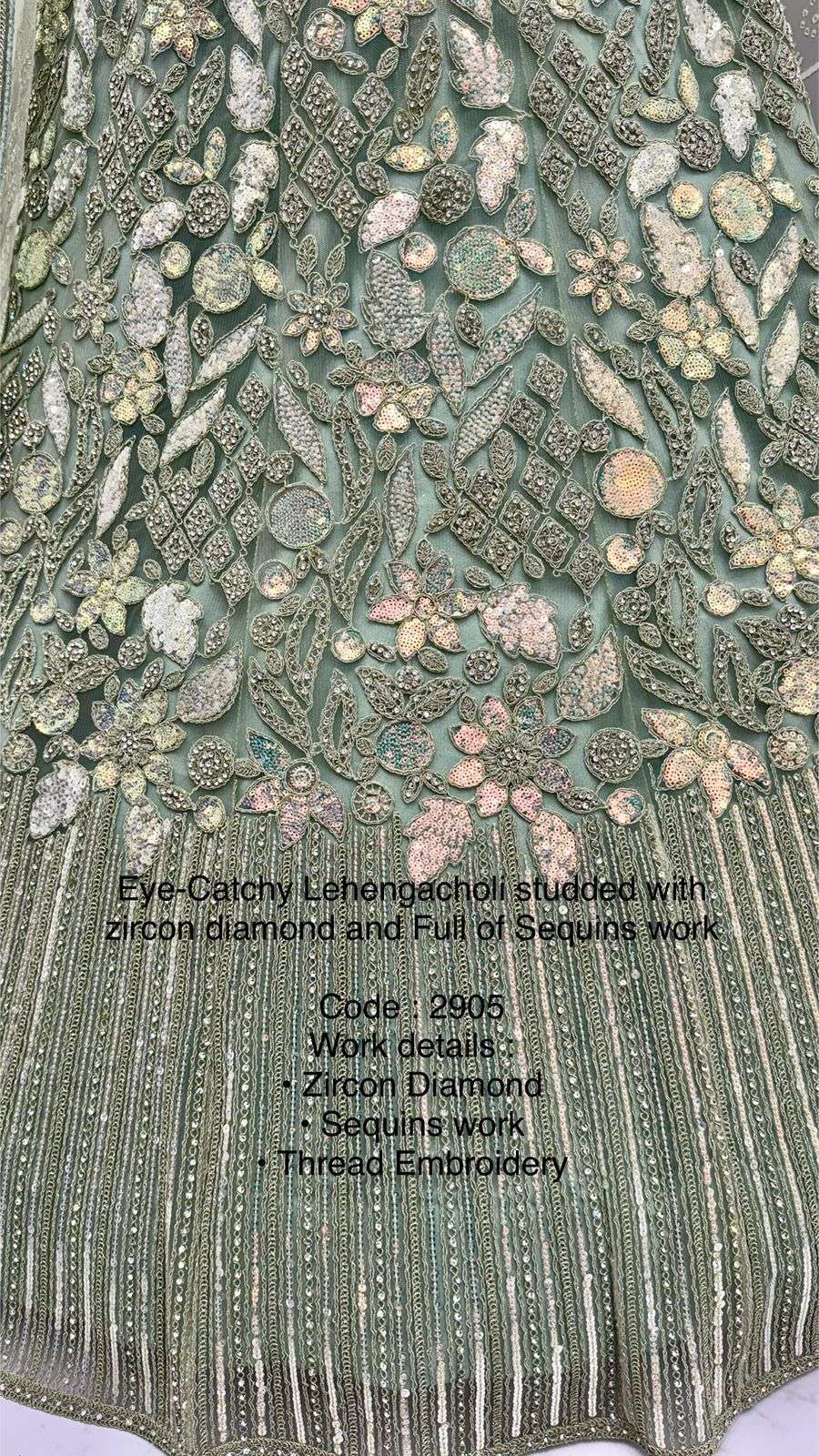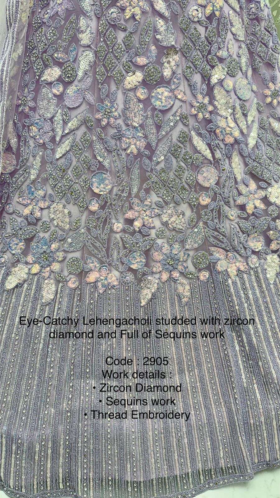 Code : 2905 Lehenga : Fabric - Net Work - • Zircon Diamond • Sequins work • Thread Embroidery • Dori work Stitching - Standard Cancan and Canvas attached free size up to 42