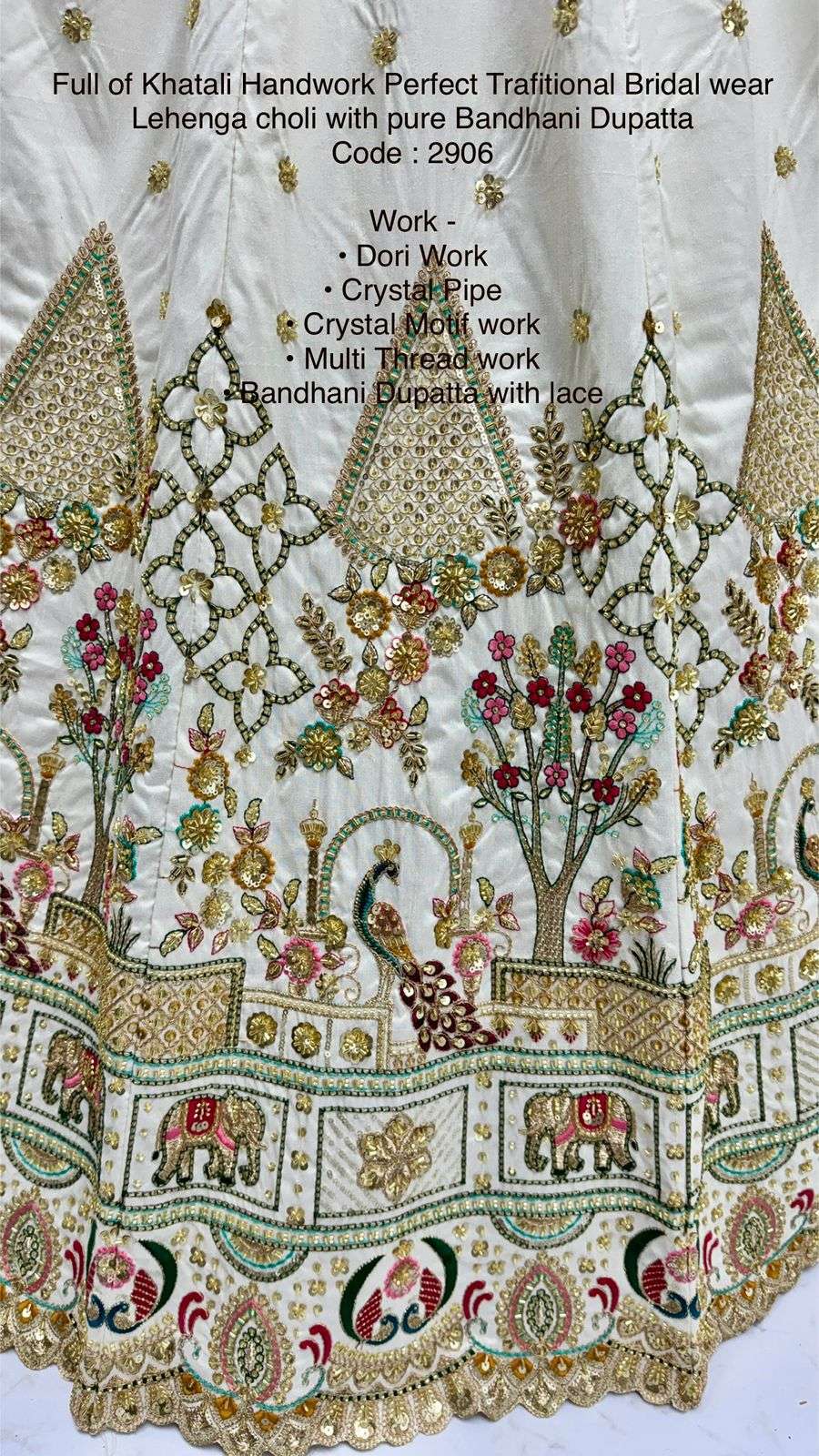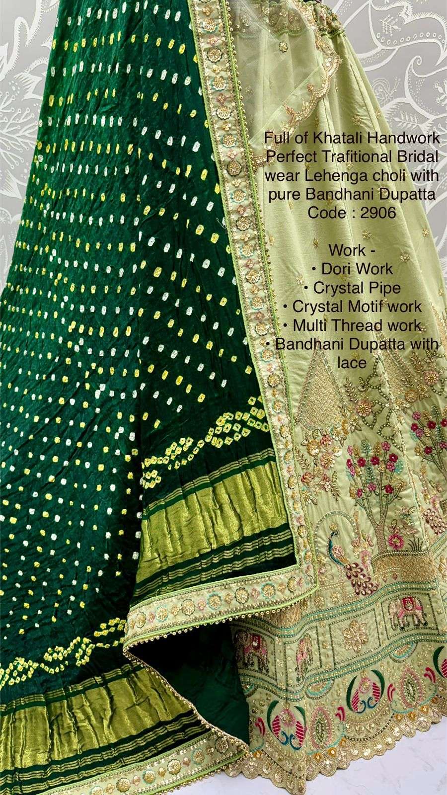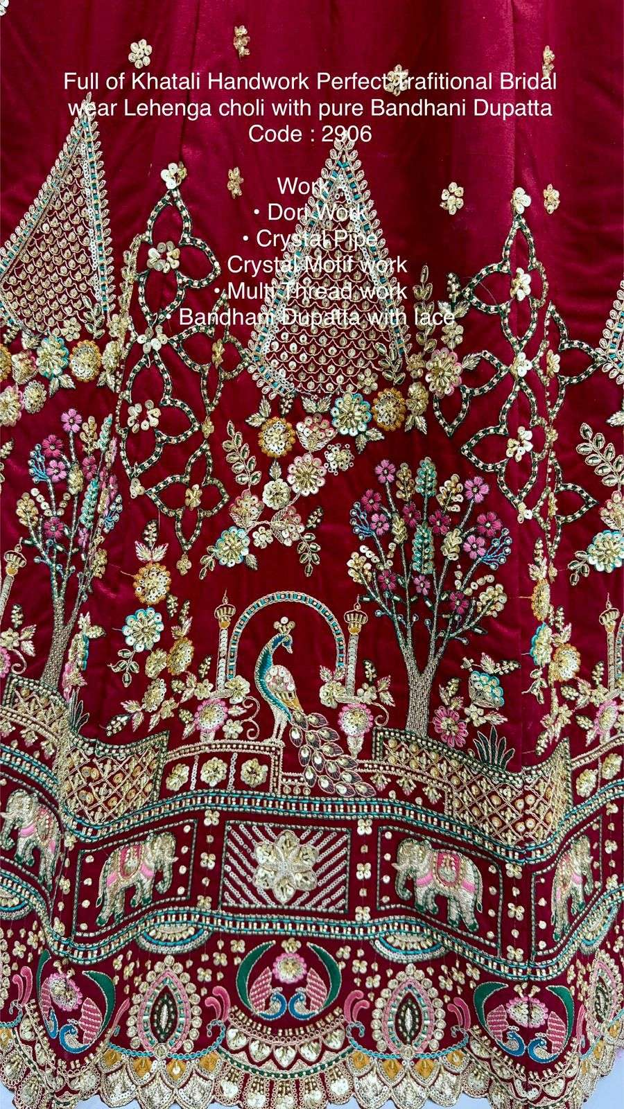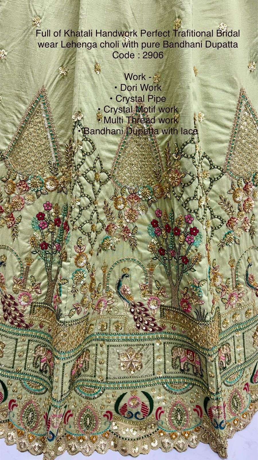 Code : 2906 Lehenga : Fabric - Slub Silk Work - • Dori Work • Crystal Pipe • Crystal Motif work • Multi Thread work • Bandhani Dupatta with lace Stitching - standard cancan and canvas attached free size lehenga Size - free size up to 42