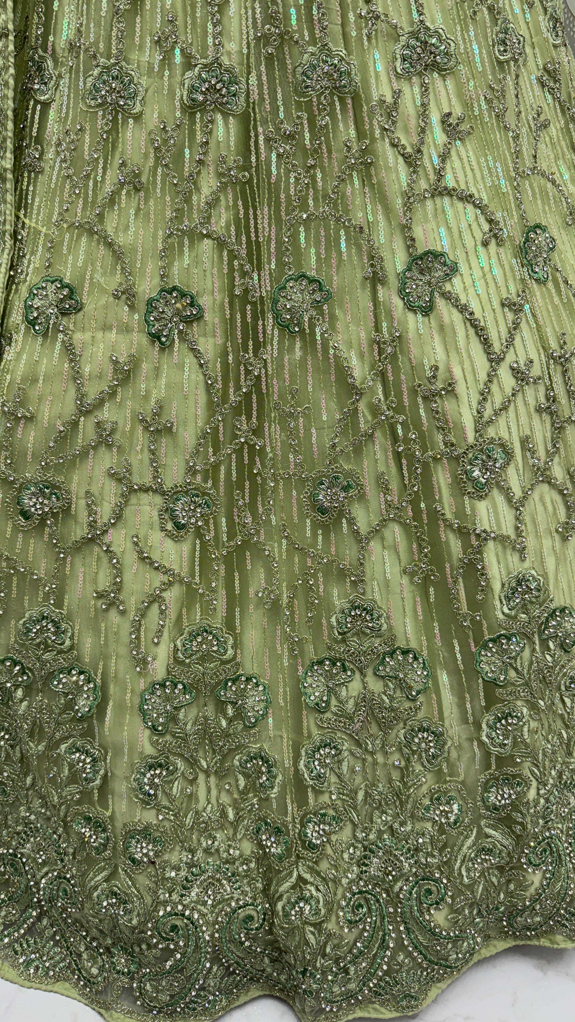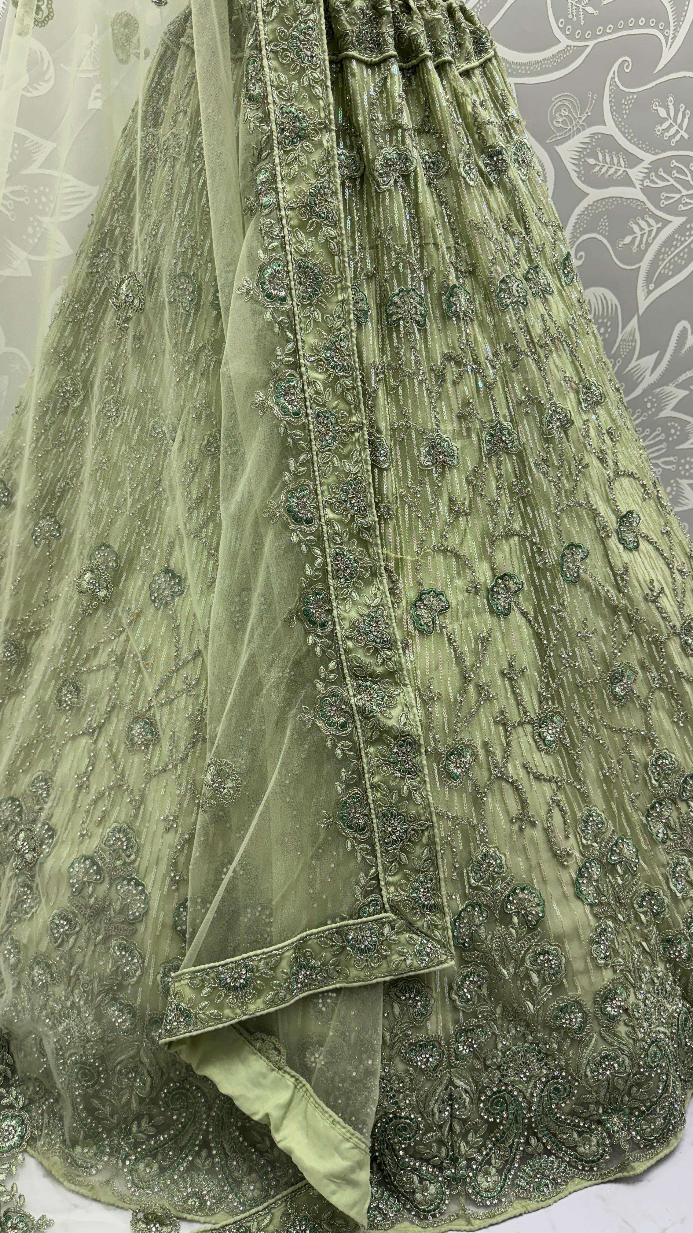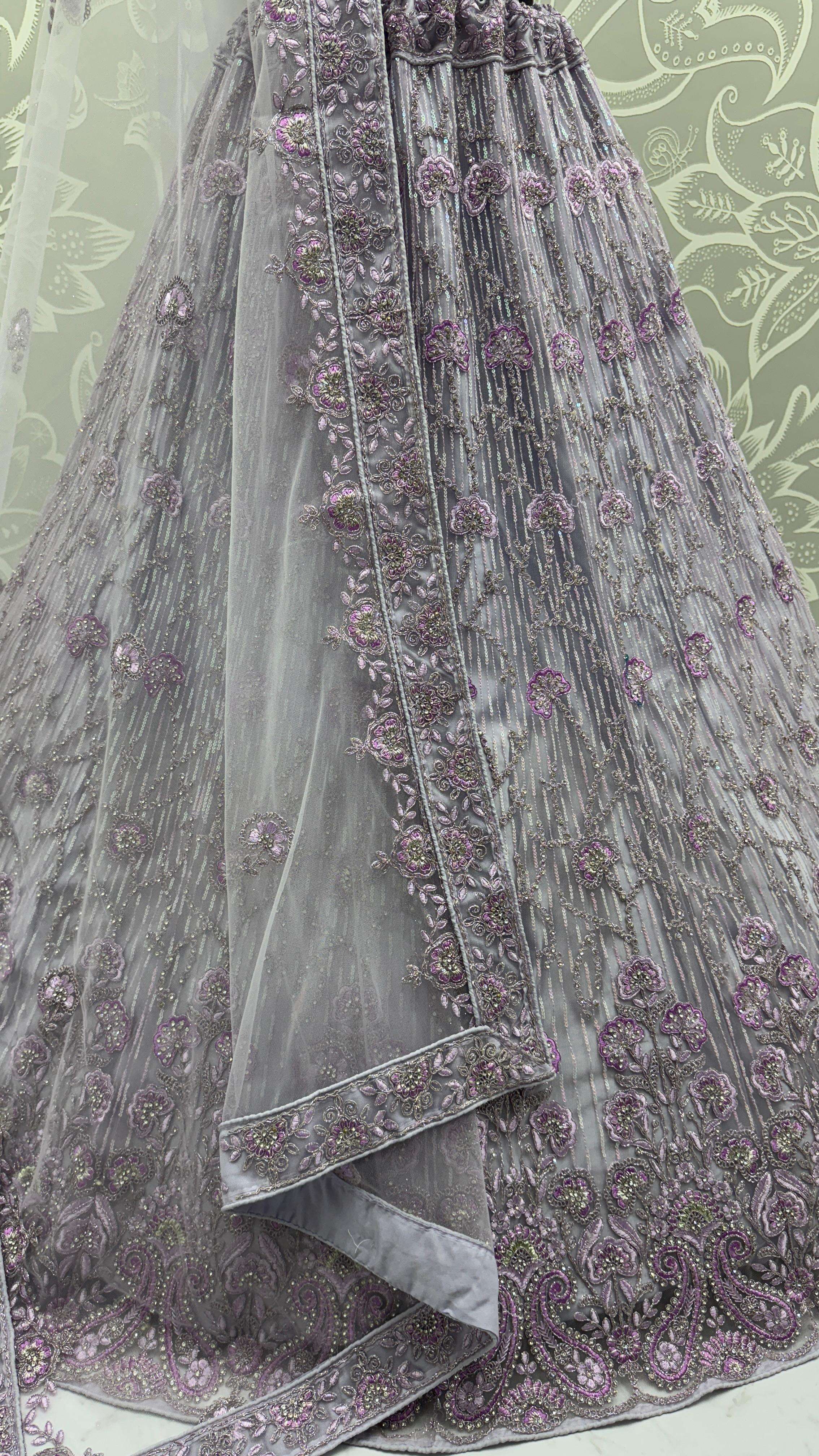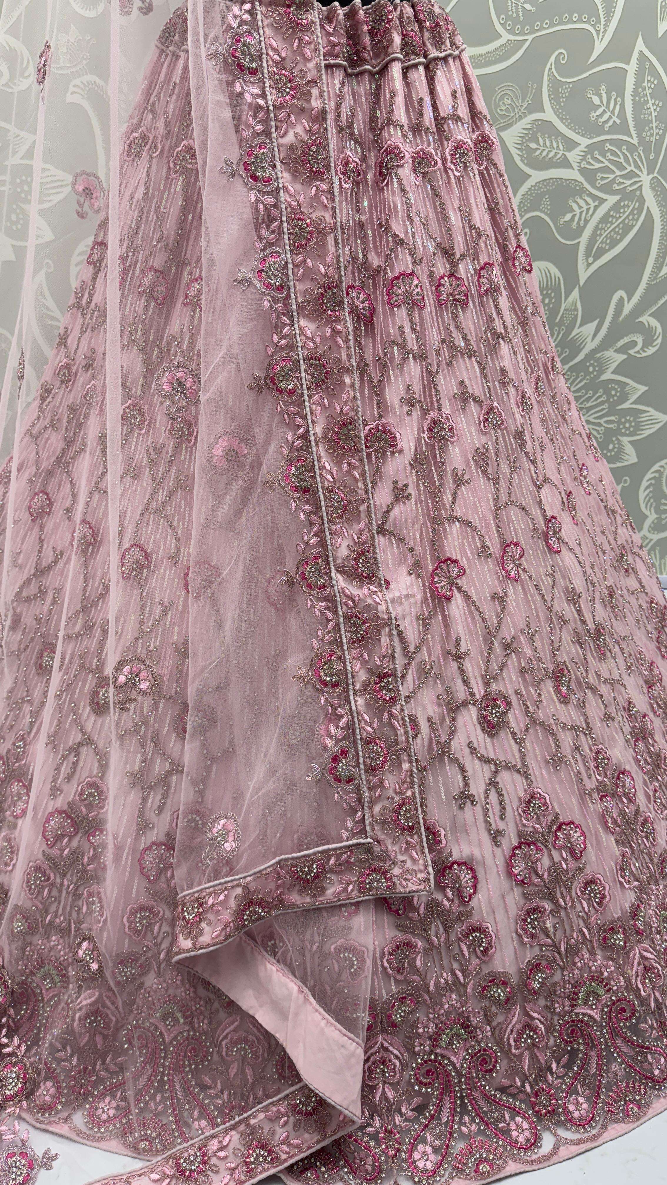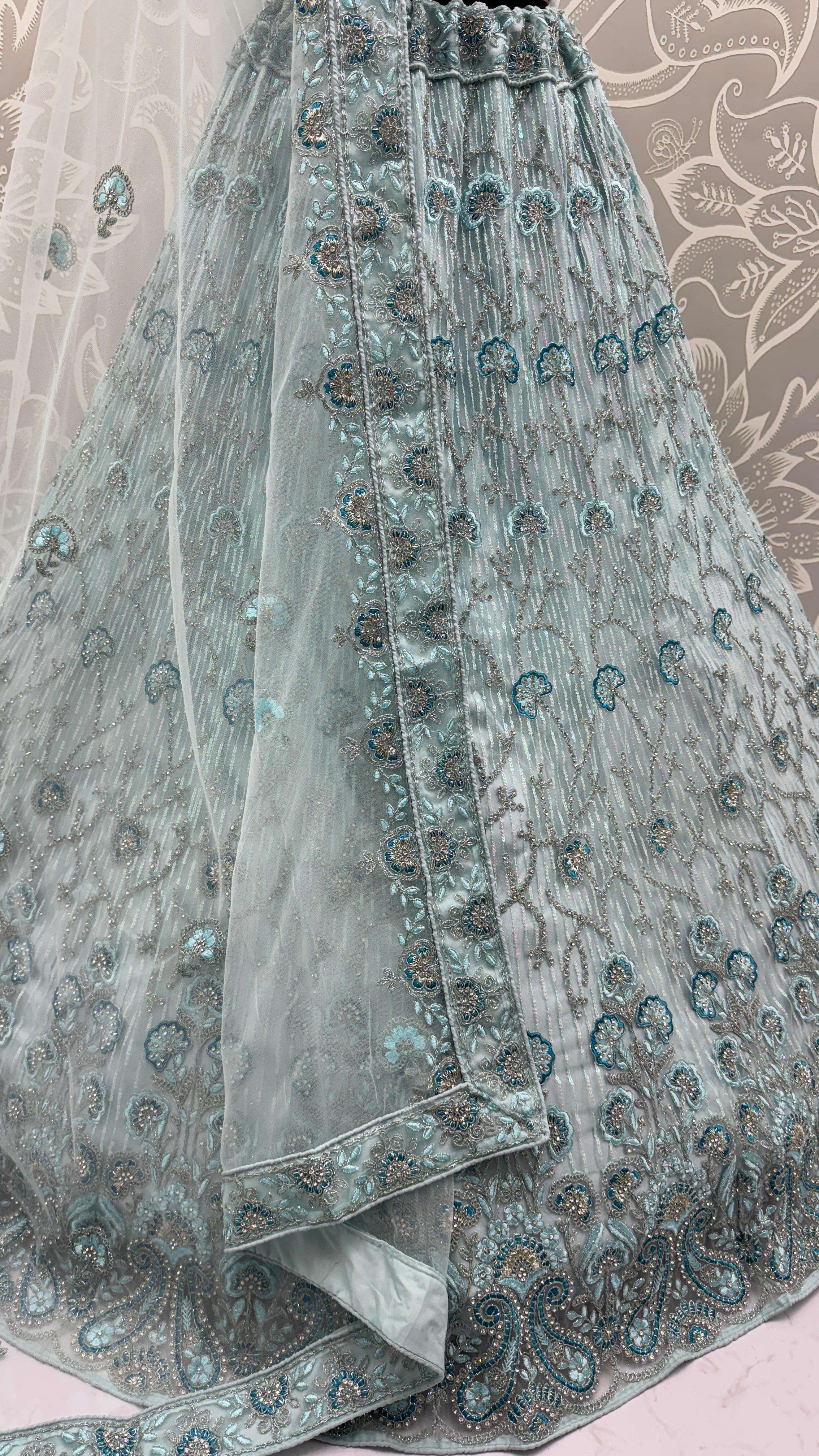 Code : 2911 Lehenga : Fabric - Net Work - Dori work Zircon Diamond Sequins and Zari work Stitching - Free size up to 42, standard cancan and canvas attached