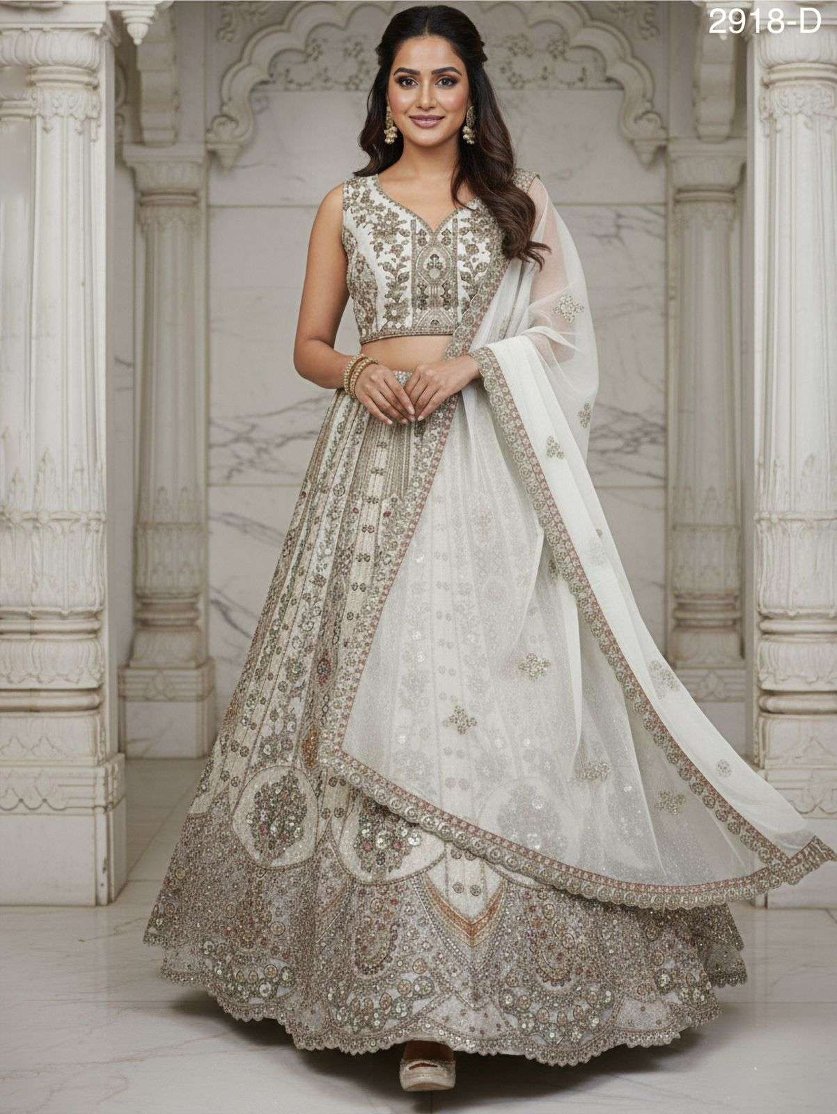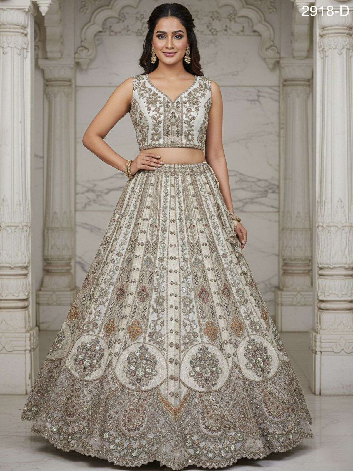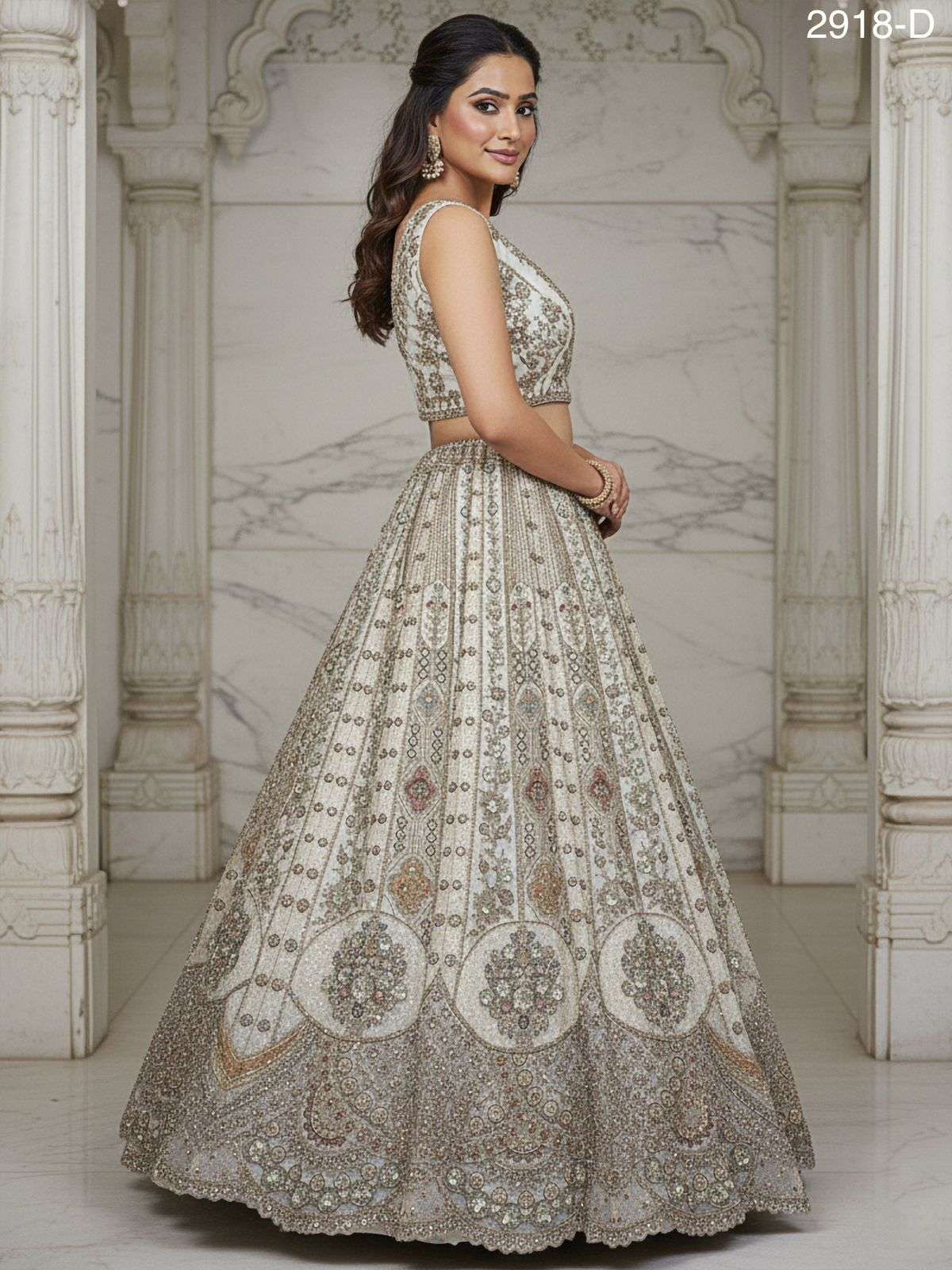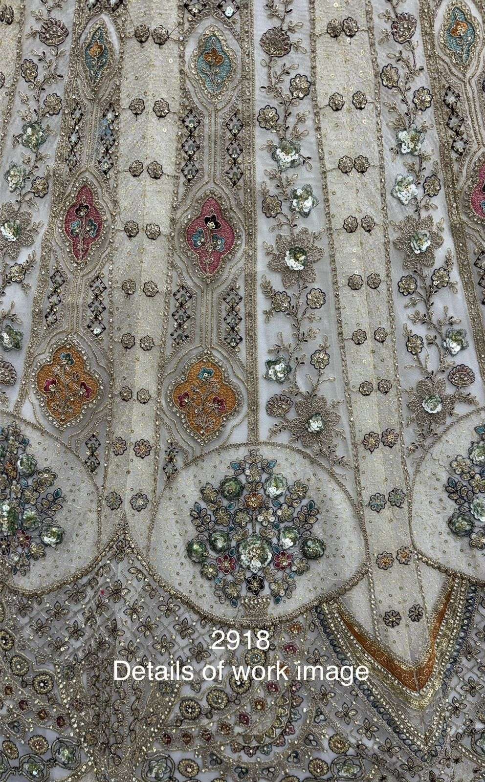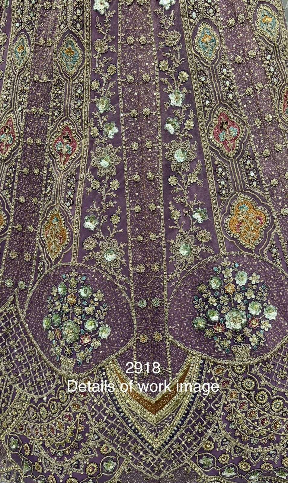 Code : 2918 - D/E/F Lehenga : Fabric - Orgenza Work - sequins and Zari Zal Multi thread and Dori work Metalic Sequins Diamond work Stitching - Standard cancan and canvas attached free size up to 42