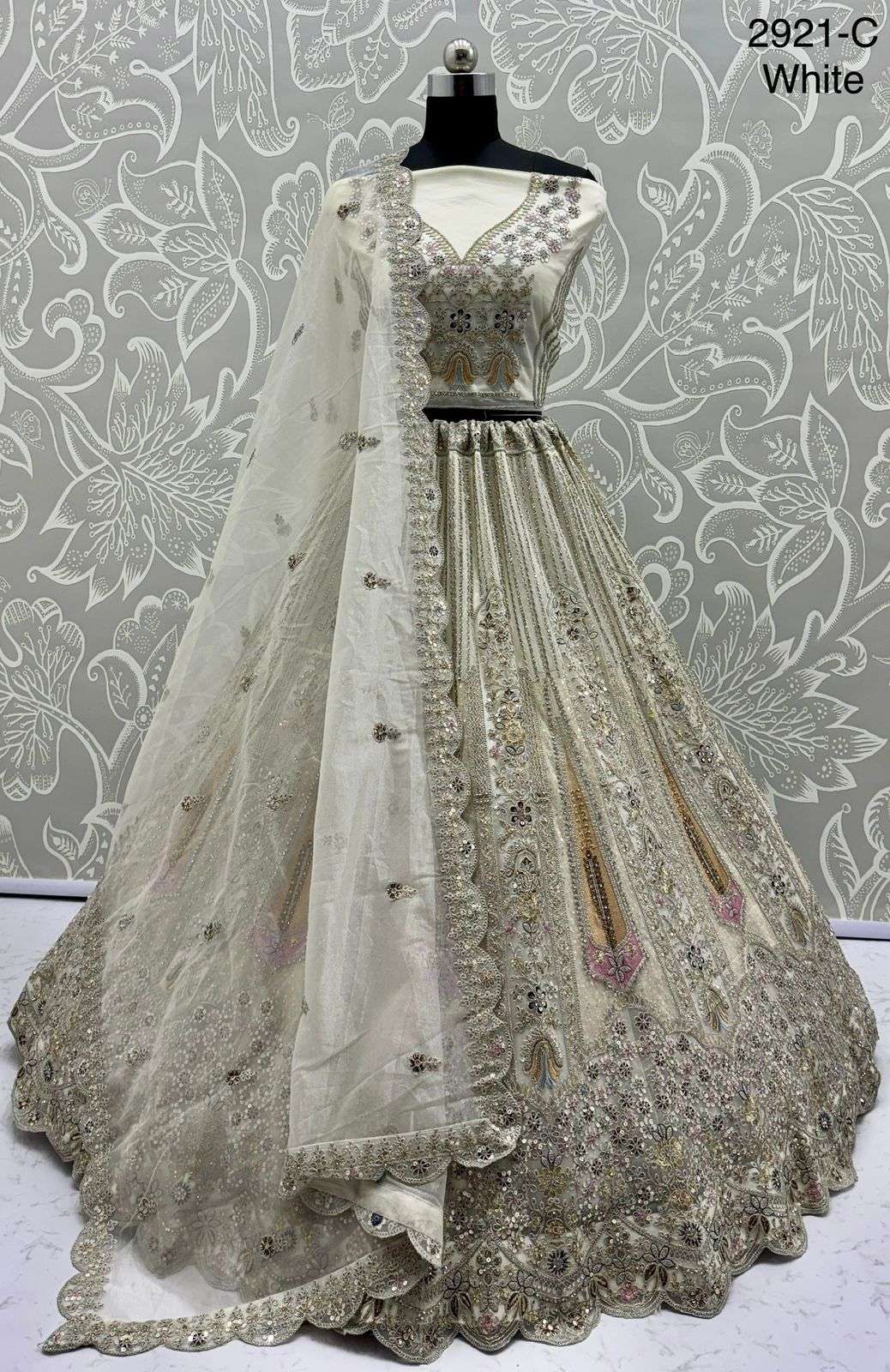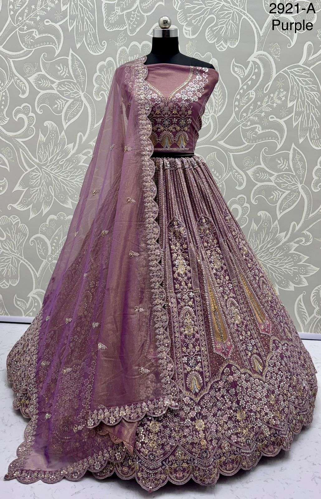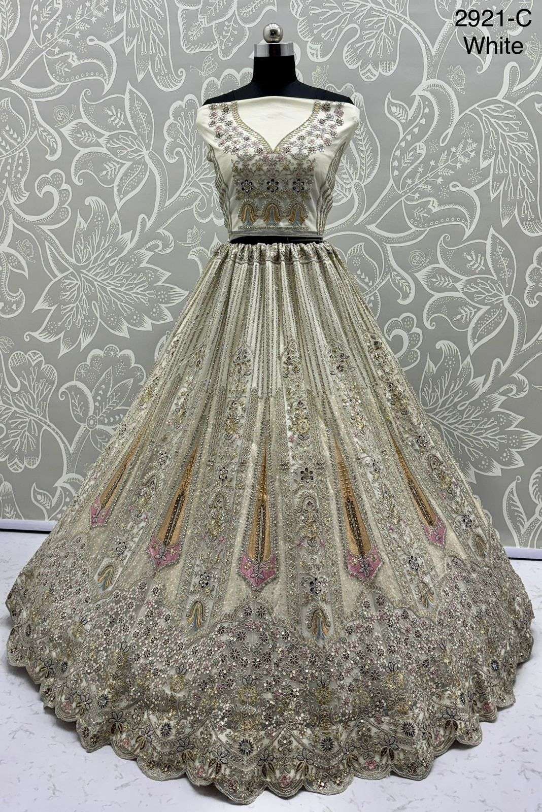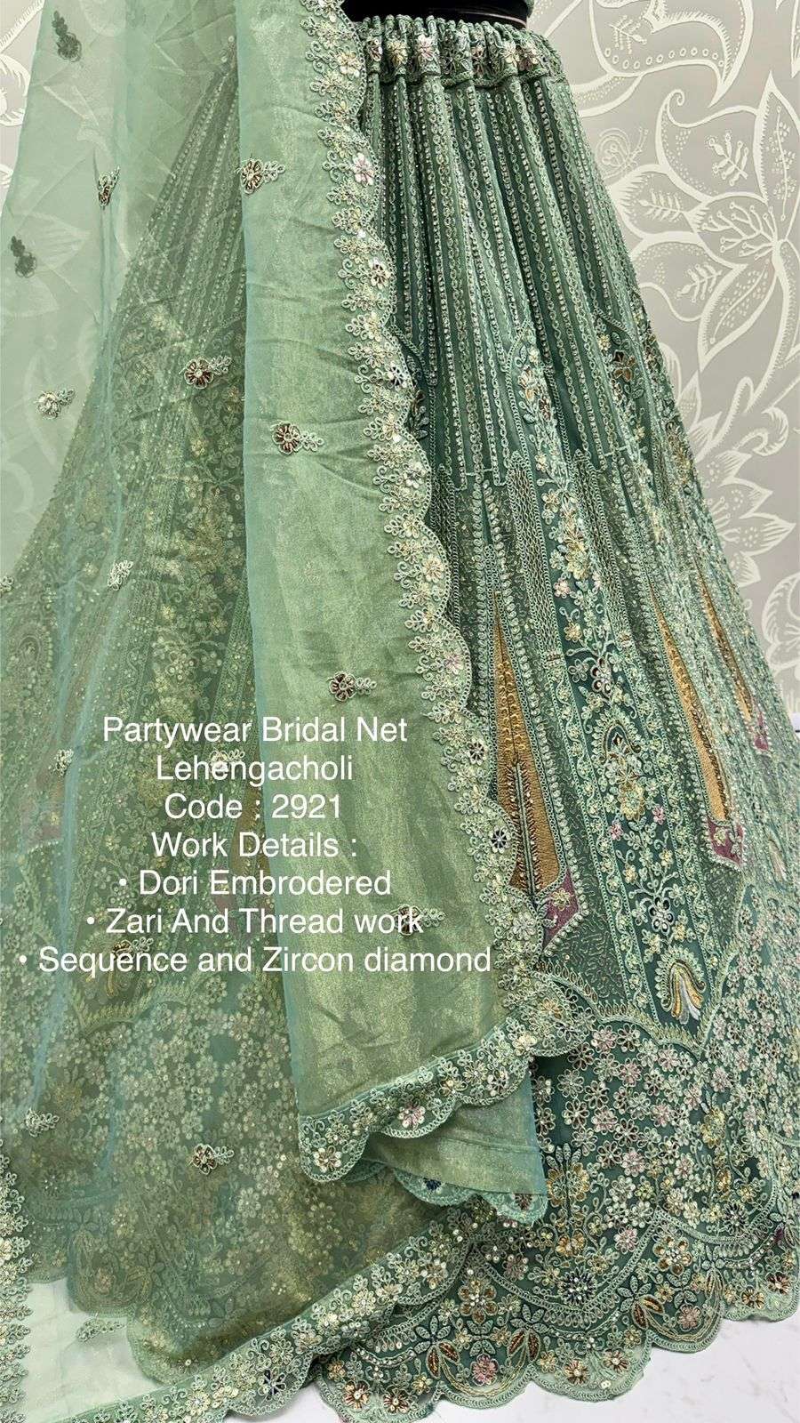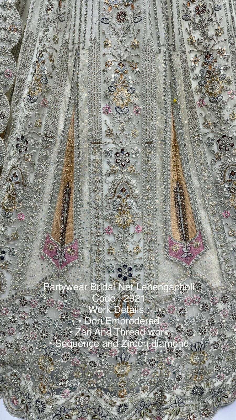 Code : 2921 Lehenga : Fabric - Bridal Net Work - • Dori Embrodered • Zari And Thread work • Sequence and Zircon diamond Stitching - Standard Cancan and Canvas attached free size upto 42
