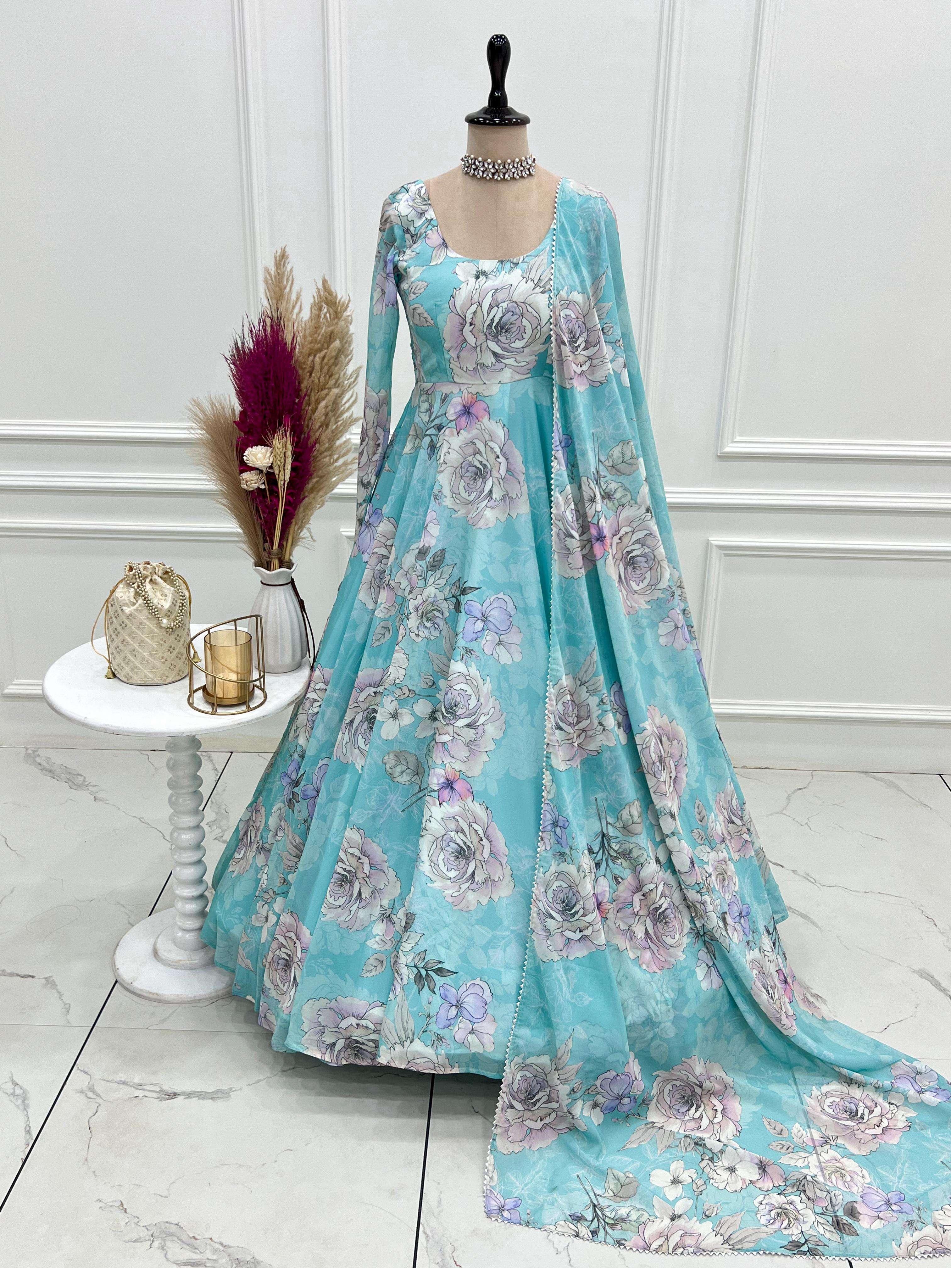 *REGISTERED TM PATENTED BY OWNER* *This colourfull & fresh look outfit is perfect for upcoming festivities and weddings which provides you more comfort and style* *PRESENTING NEW FOX GEORGETTE FLORAL PRINT ANARKALI GOWN DUPPTA FULL SET READY TO WEAR*