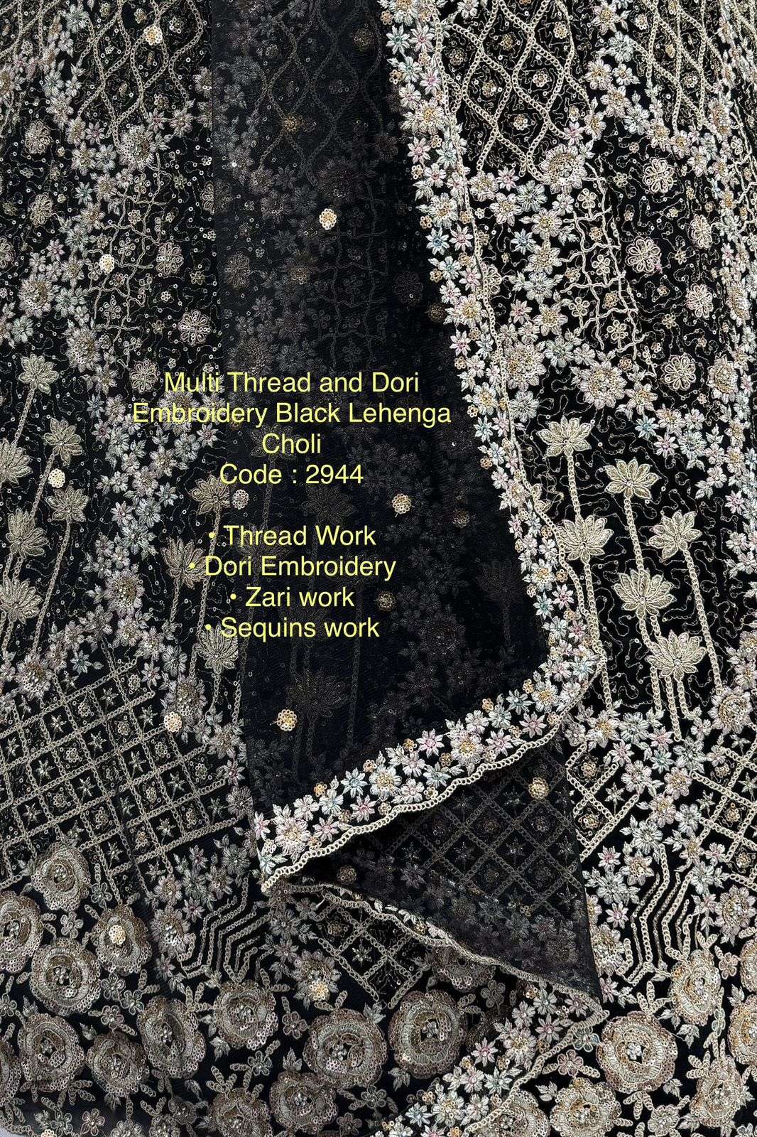 Code : 2944 Lehenga : Fabric - Double Net Crafted Work - • Double net Crafted • Dori Embroidery • Multi thread work • Sequence work Stitching - standard cancan and canvas attached free size lehenga Size - free size up to 42