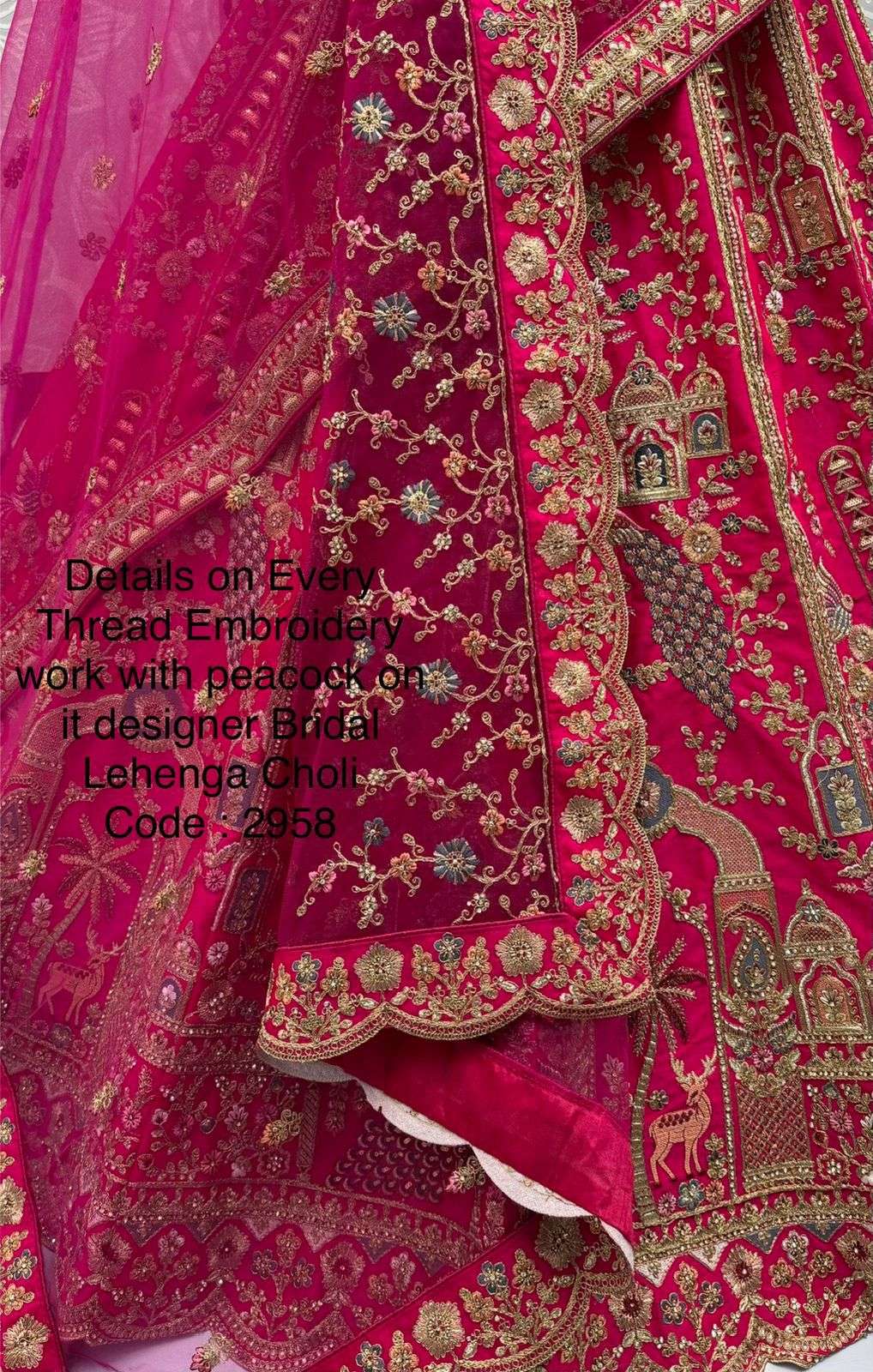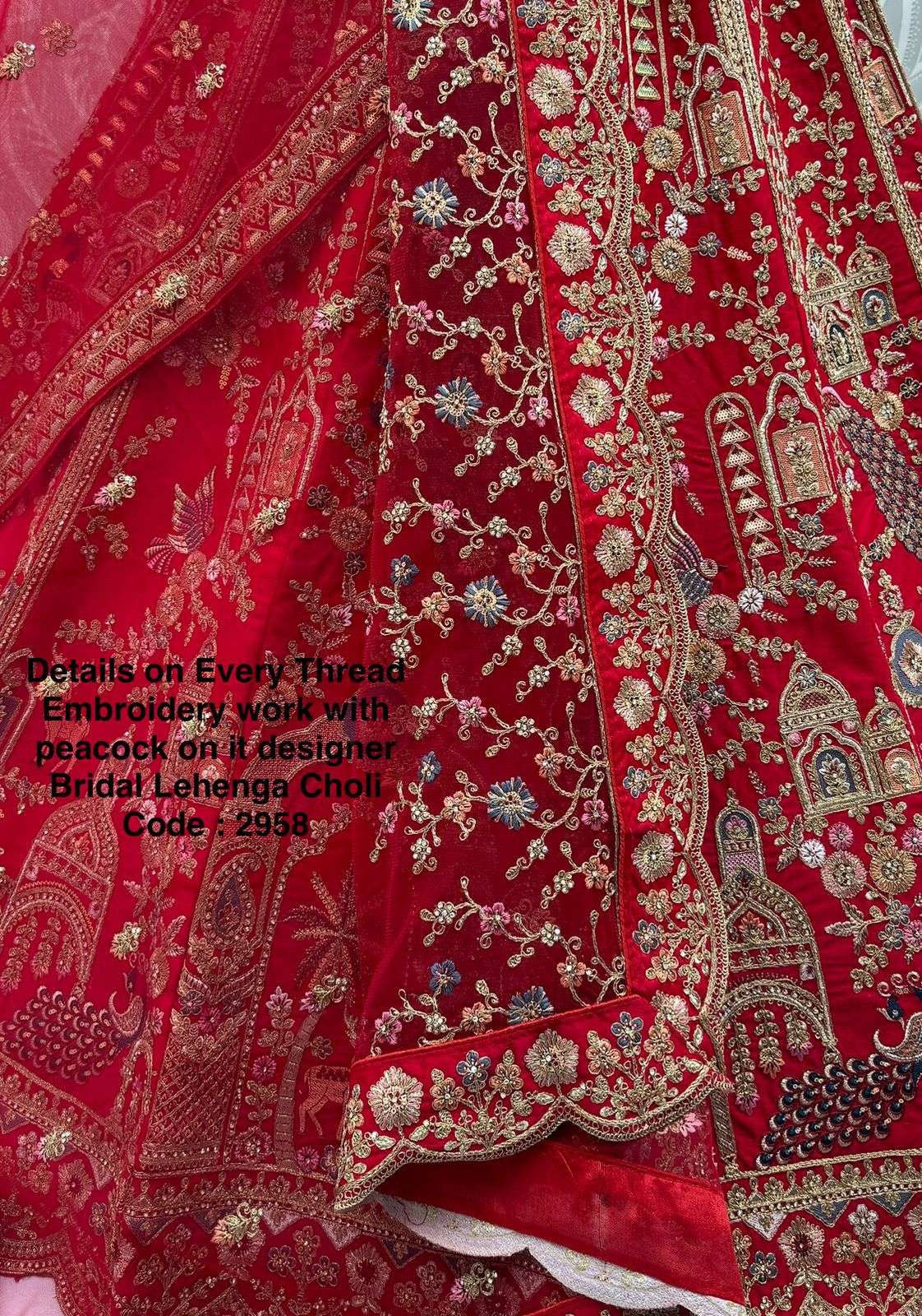 Details on Every Thread Embroidery work with peacock on it designer Bridal Lehenga Choli