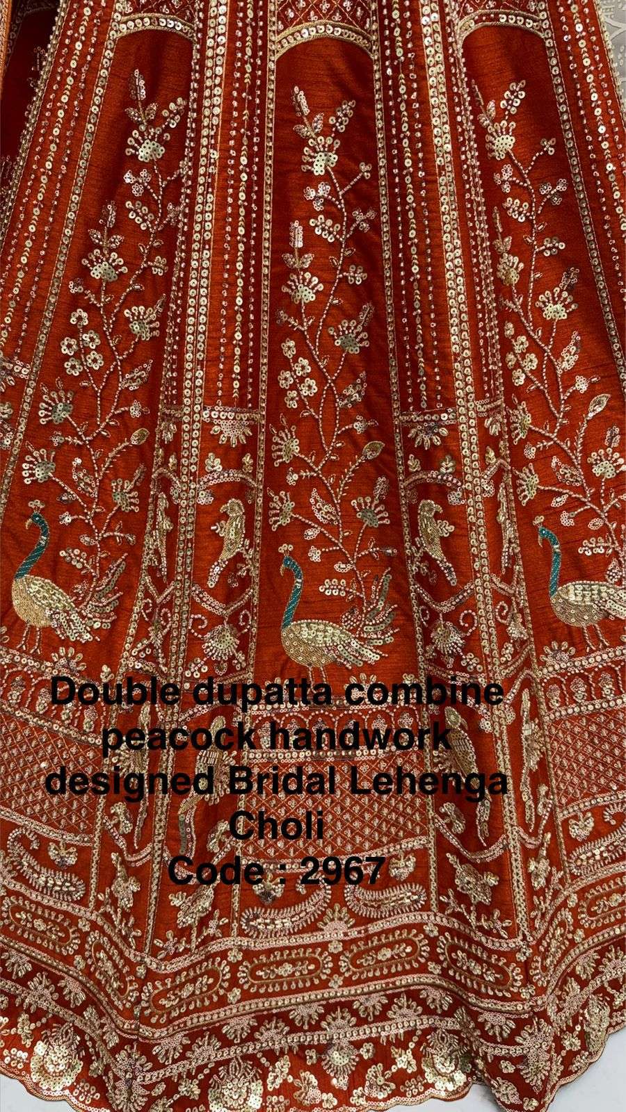 Double dupatta combine peacock handwork designed Bridal Lehenga Choli