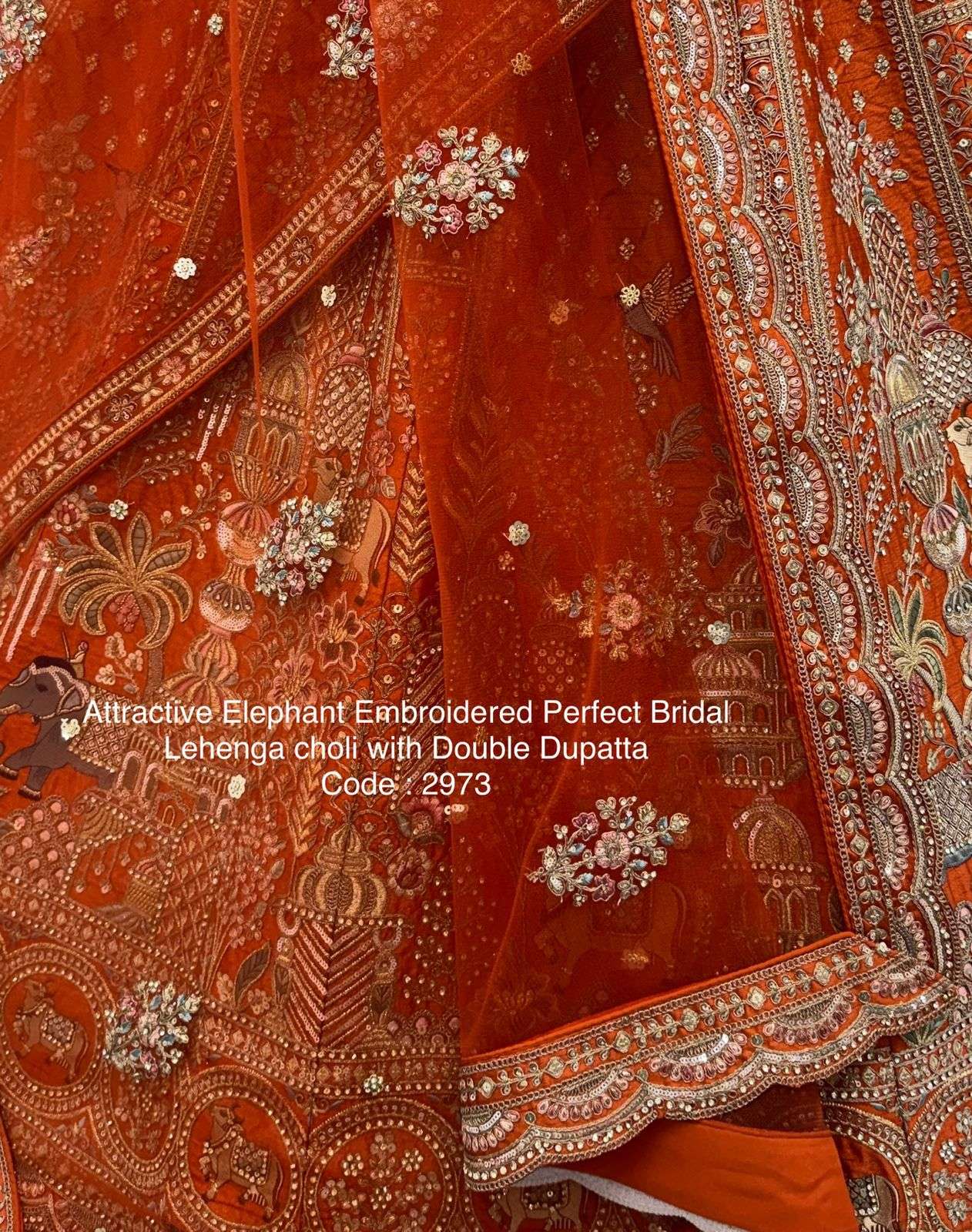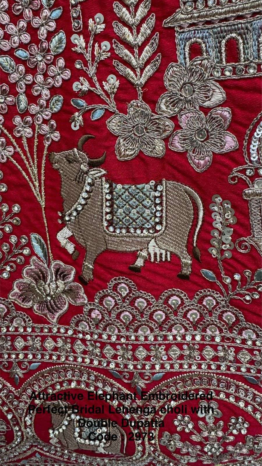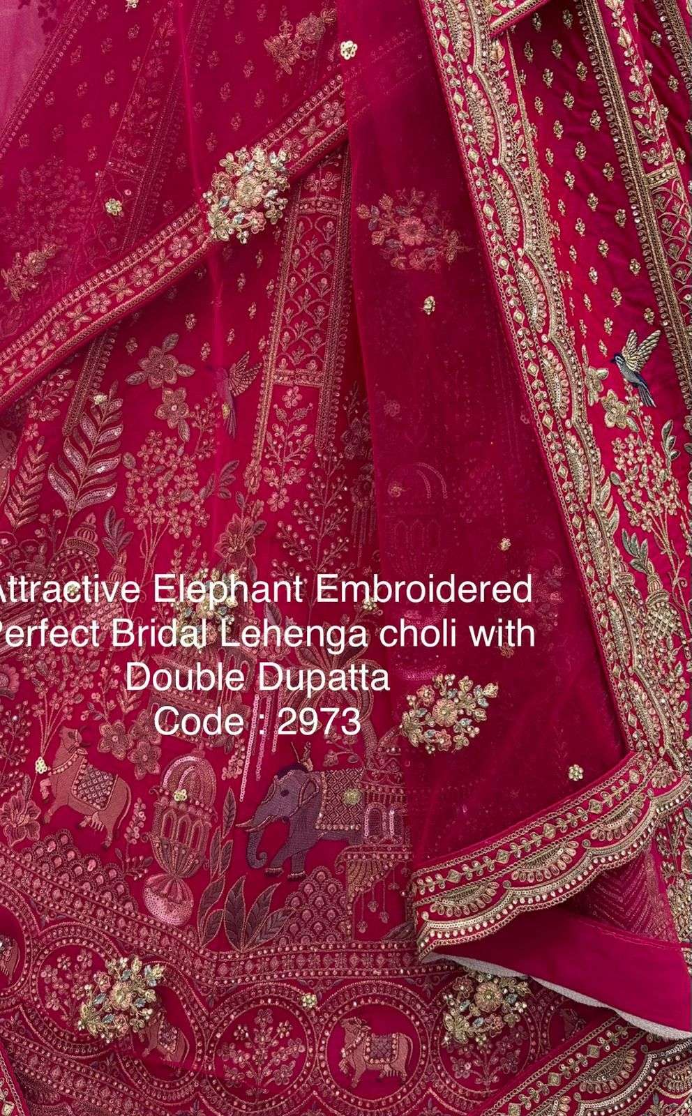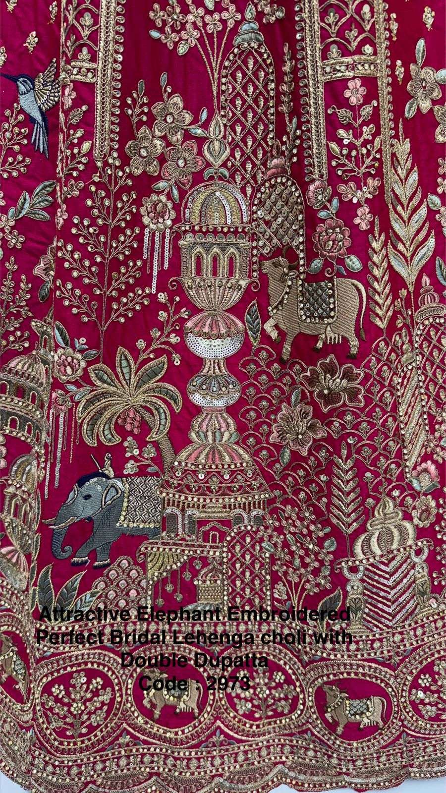 Attractive Elephant Embroidered Perfect Bridal Lehenga choli with Double Dupatta