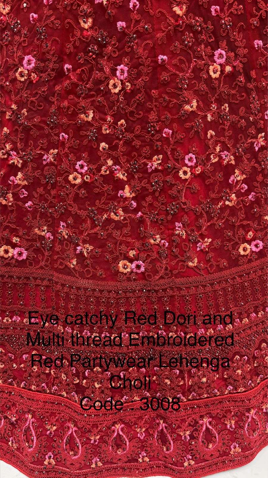 Eye catchy Red Dori and Multi thread Embroidered Red Partywear Lehenga Choli