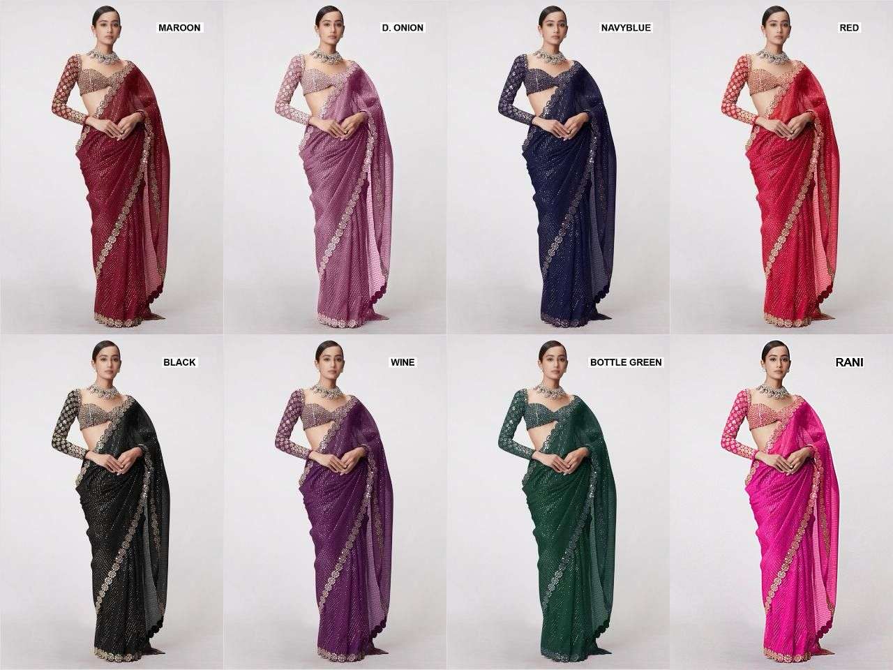 CODE 3429 faux Georgette Bollywood fancy saree collection manufacturer surat