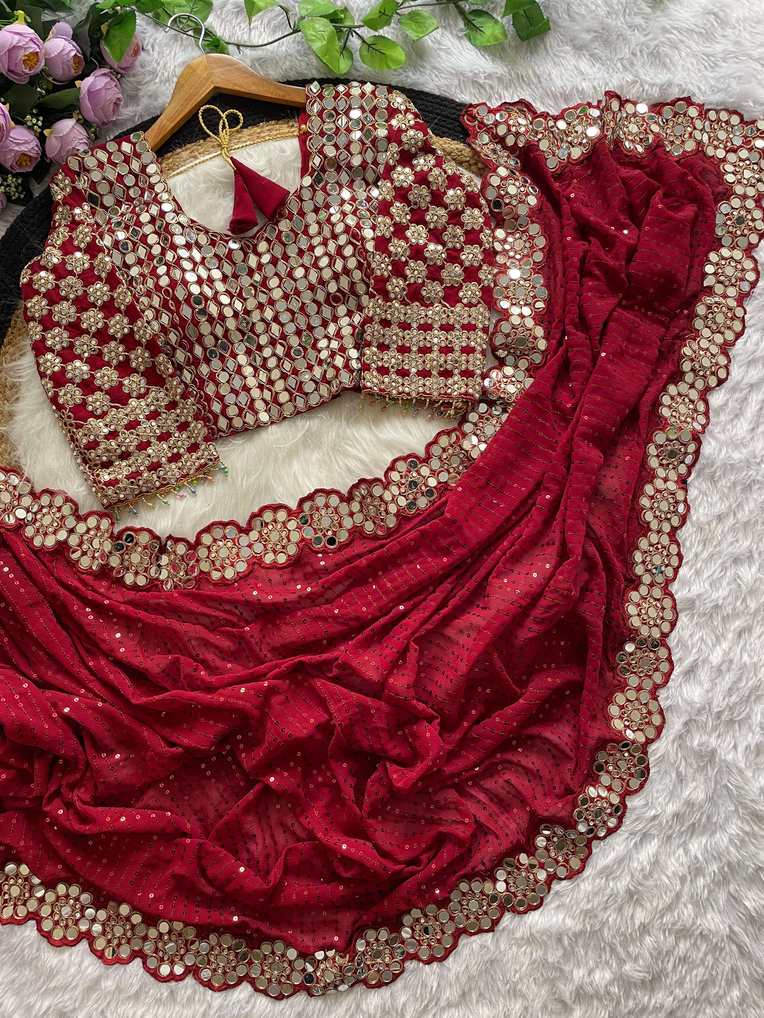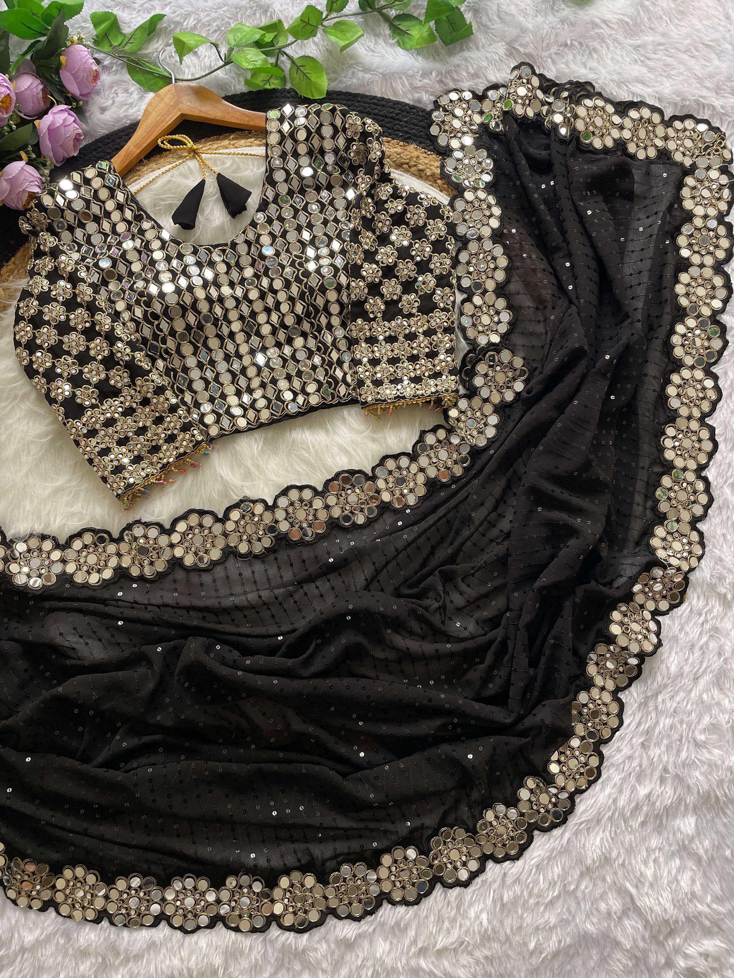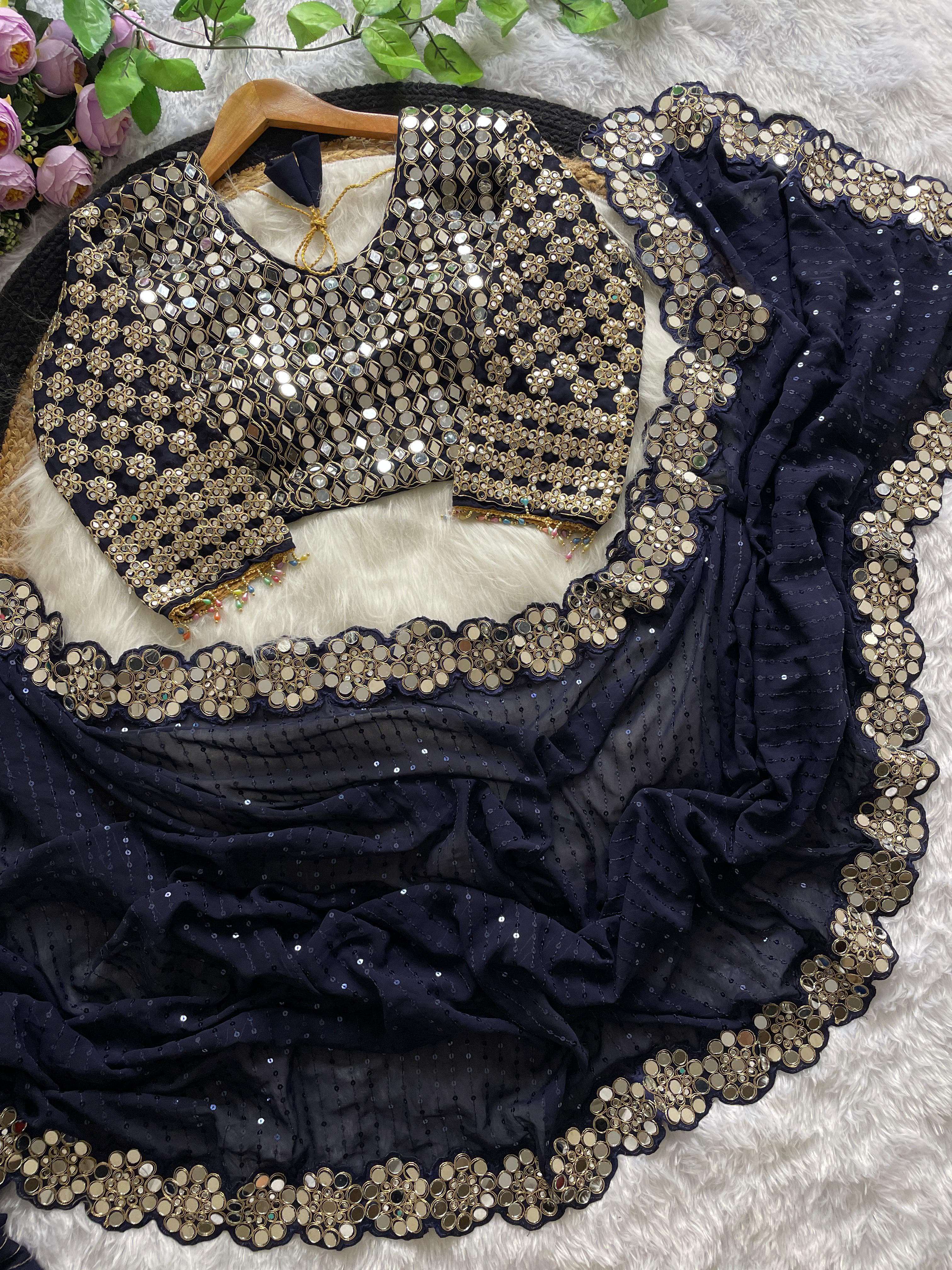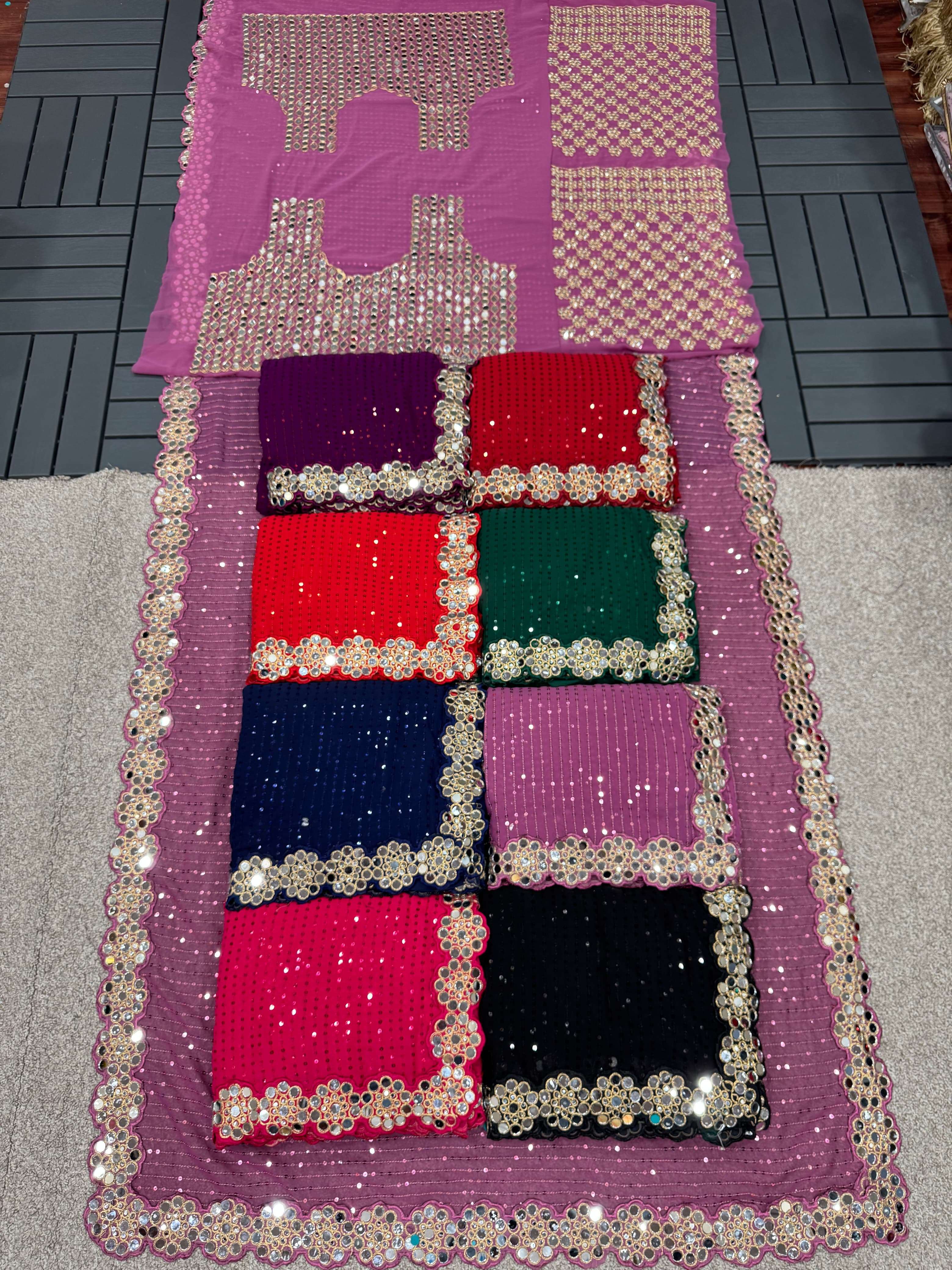 *HANDWORK DETAILS* ORIGINAL MIRROR WORK DONE IN LACE BORDER,BLOUSE & SLEEVES