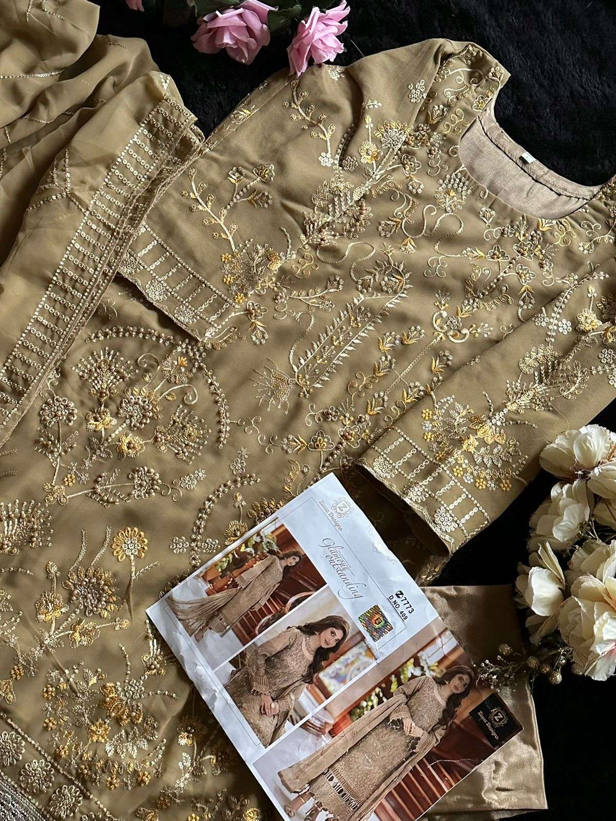 Georgette very heavy embroidered very beautiful gold semi stitched outfit ❤️ unstitched santoon inner and bottoms. beautiful georgette embrdroidered heavy dupatta 😍