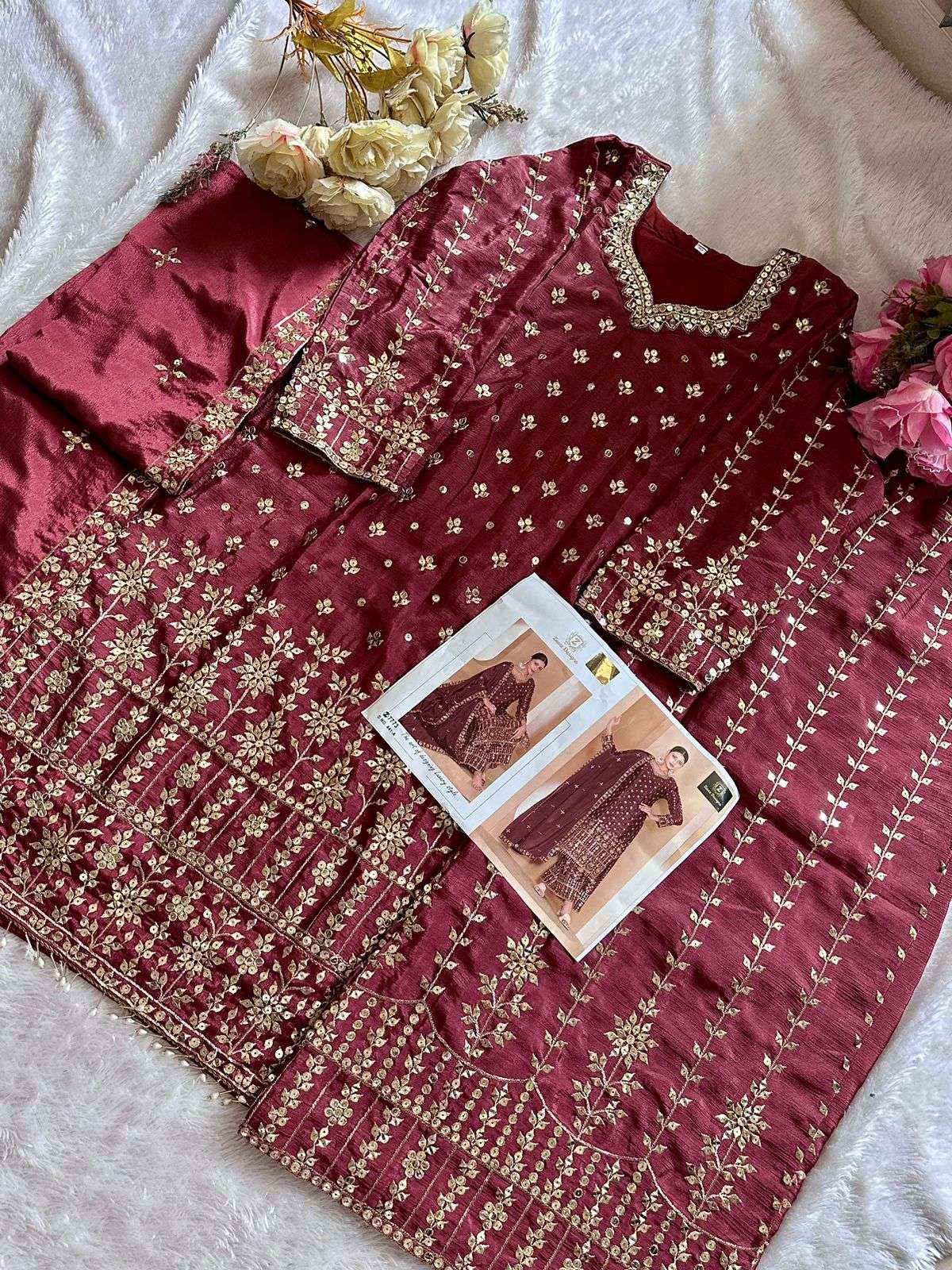 Chinon Semi stitched very heavy embrdrdy sequins work kameez and inner santoon Xxl loose palazzo style stitched chinon bottoms with santoon inner and bottoms embrdrd. Chinon Enbroidered sequins work heavy dupatta