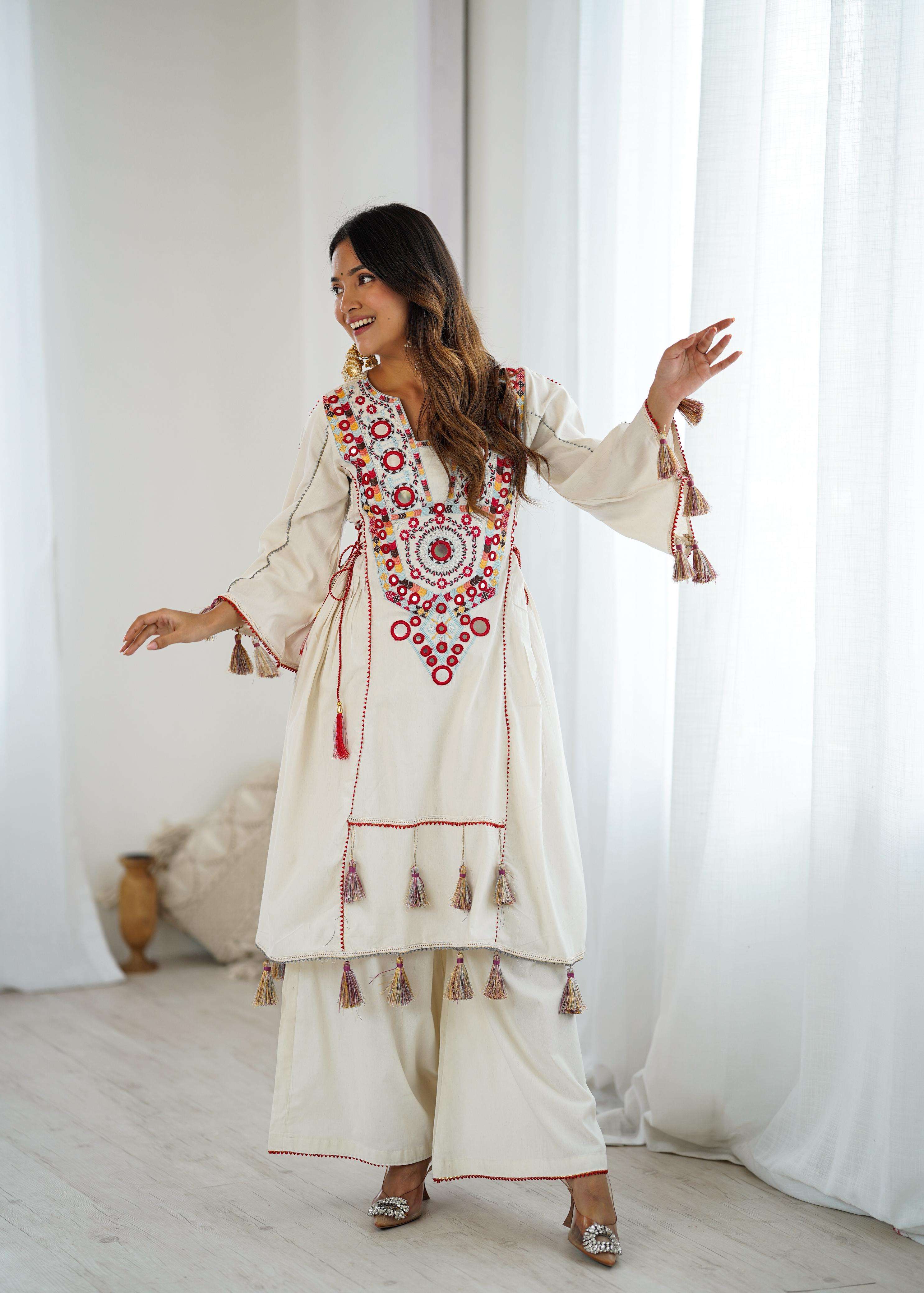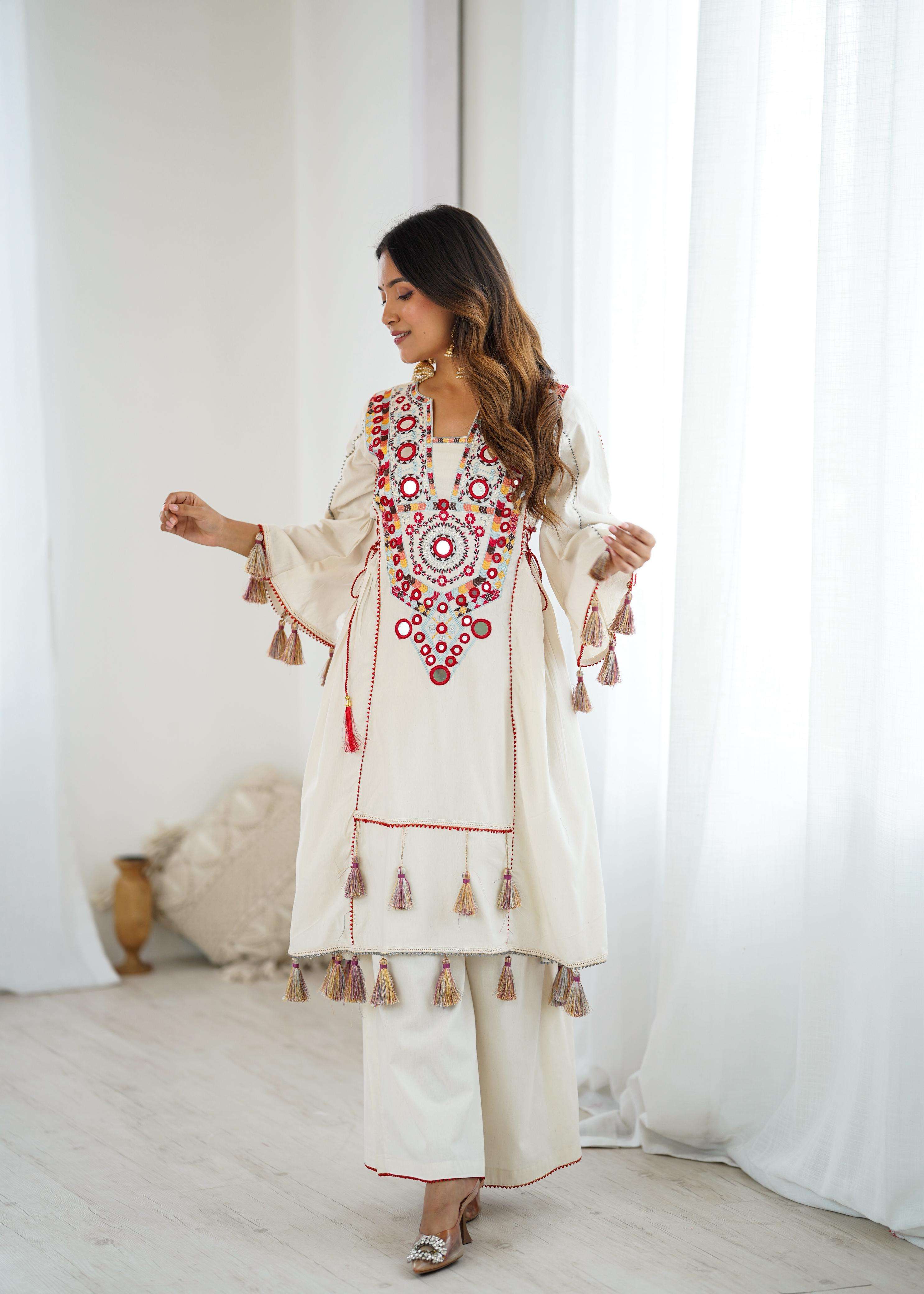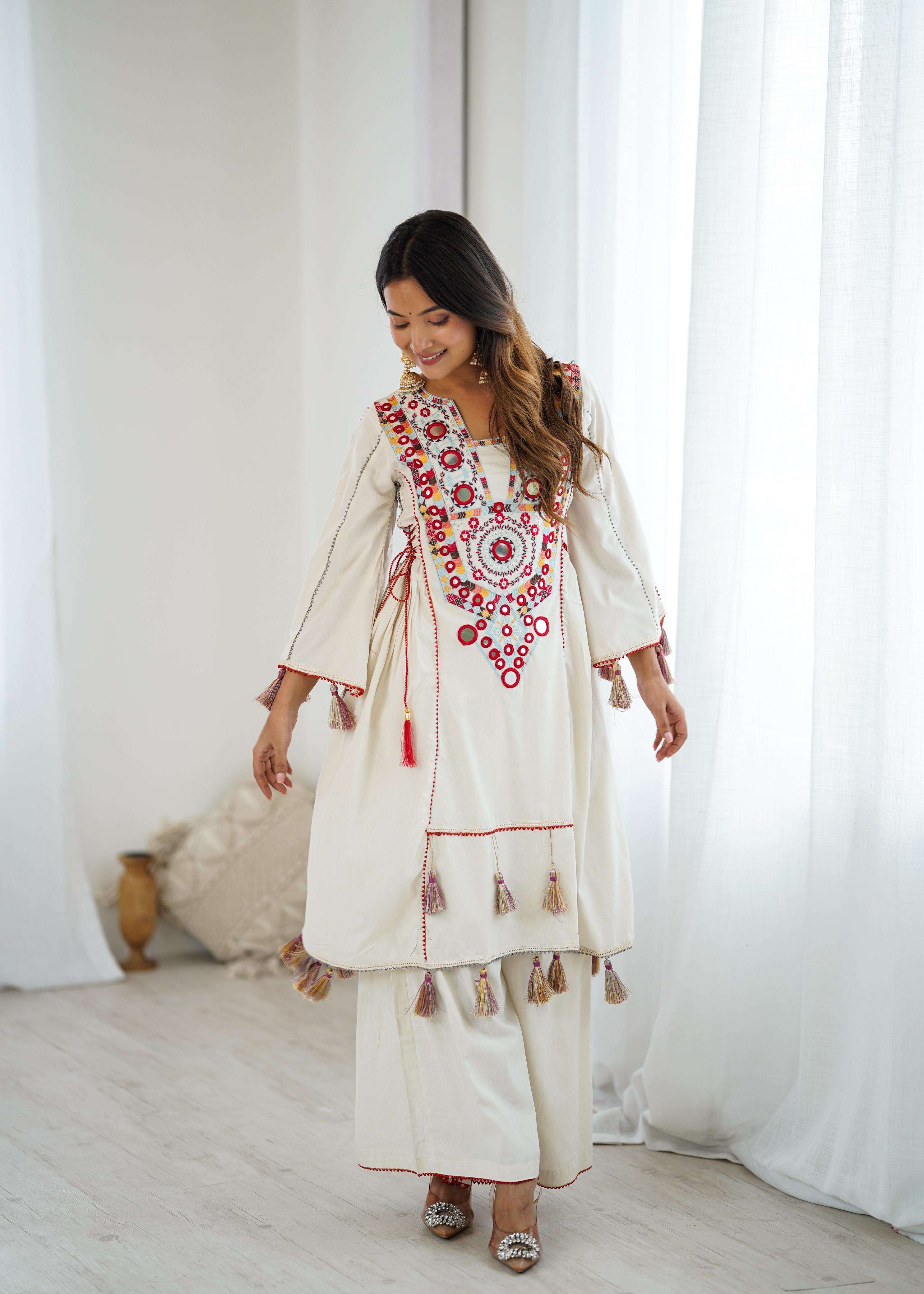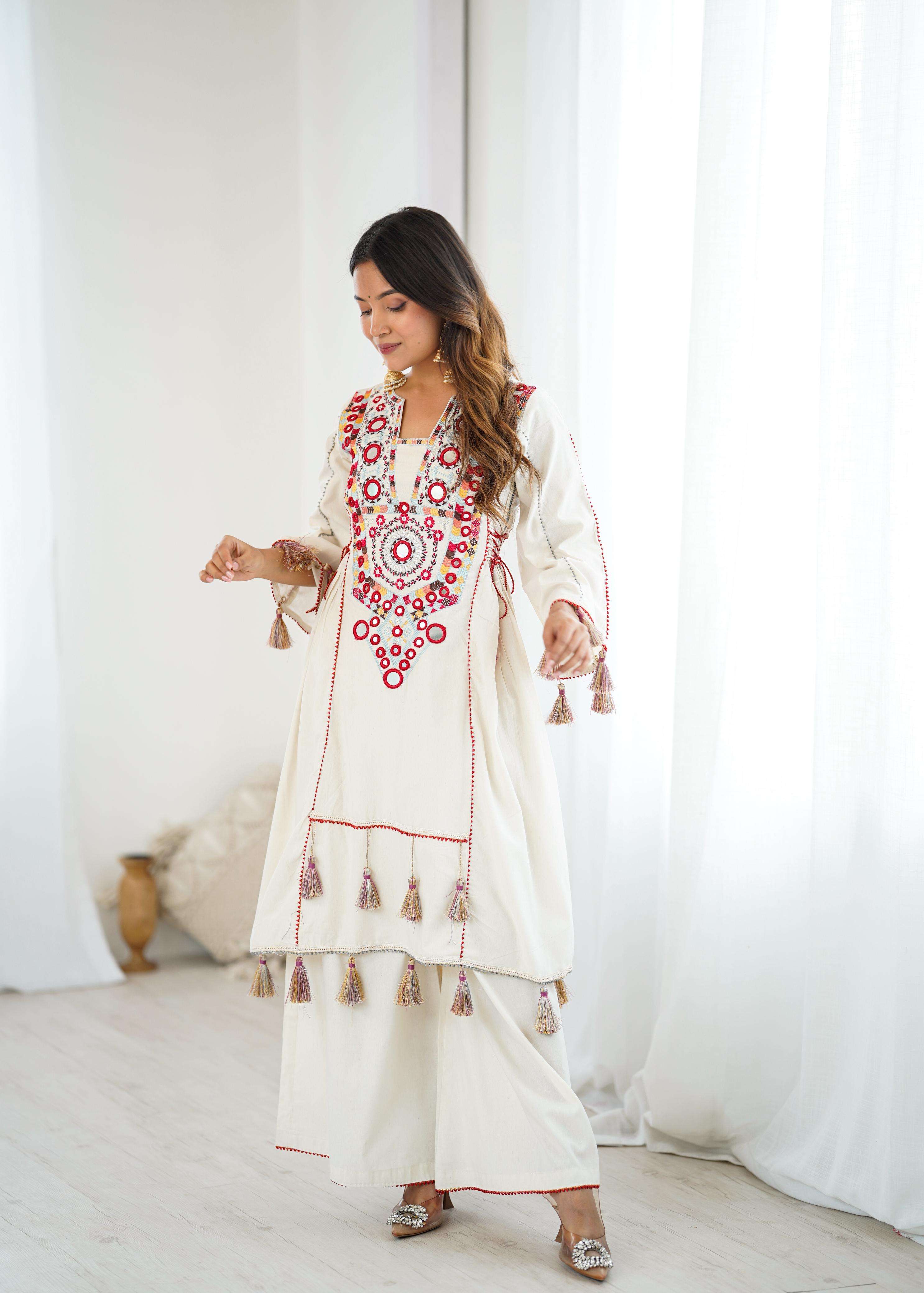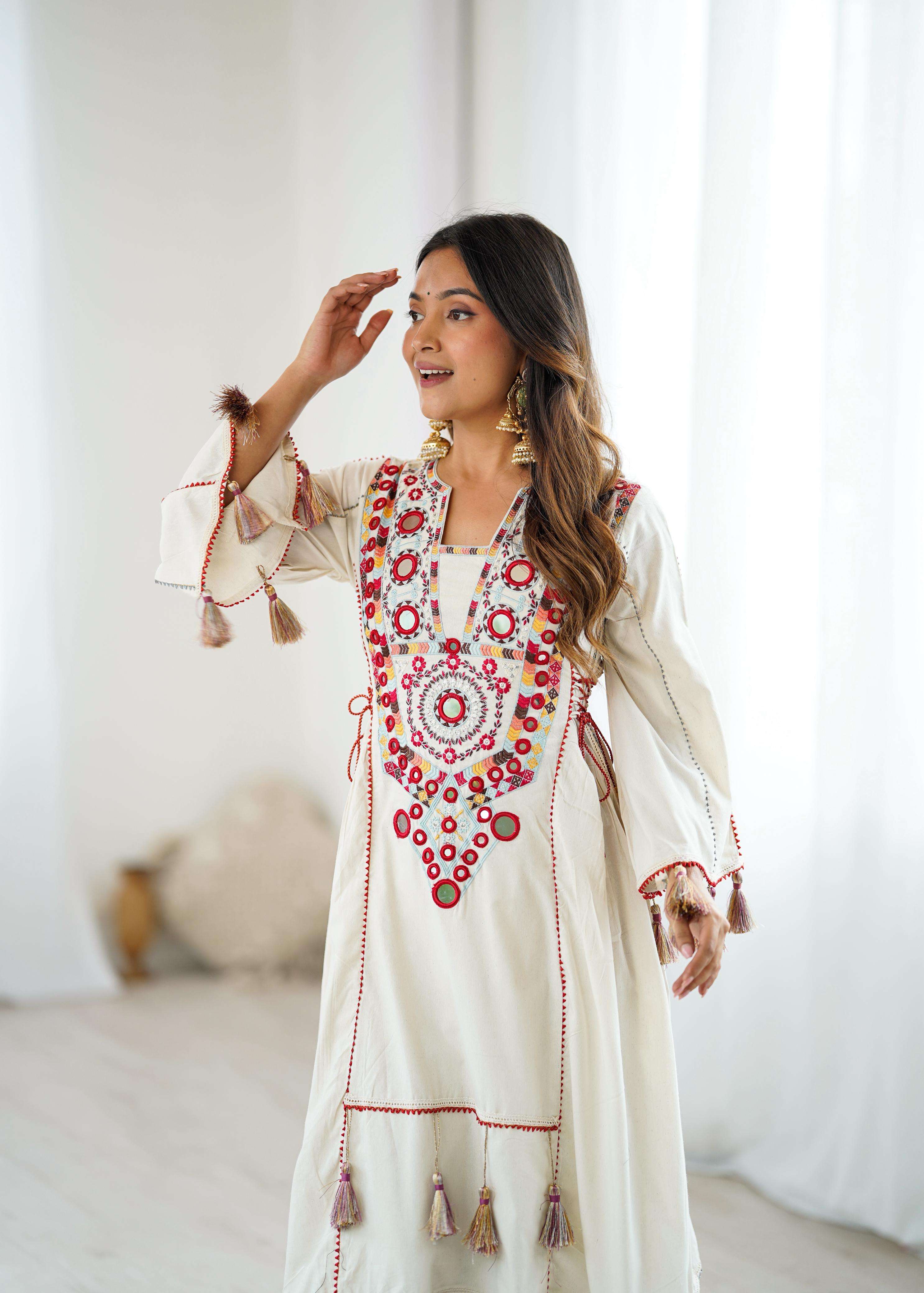 💕*Top Fabric Details*: 💕 *Pure Khadi Cottan* With Embroidery Sequence Work With Real Mirror Work💐📌