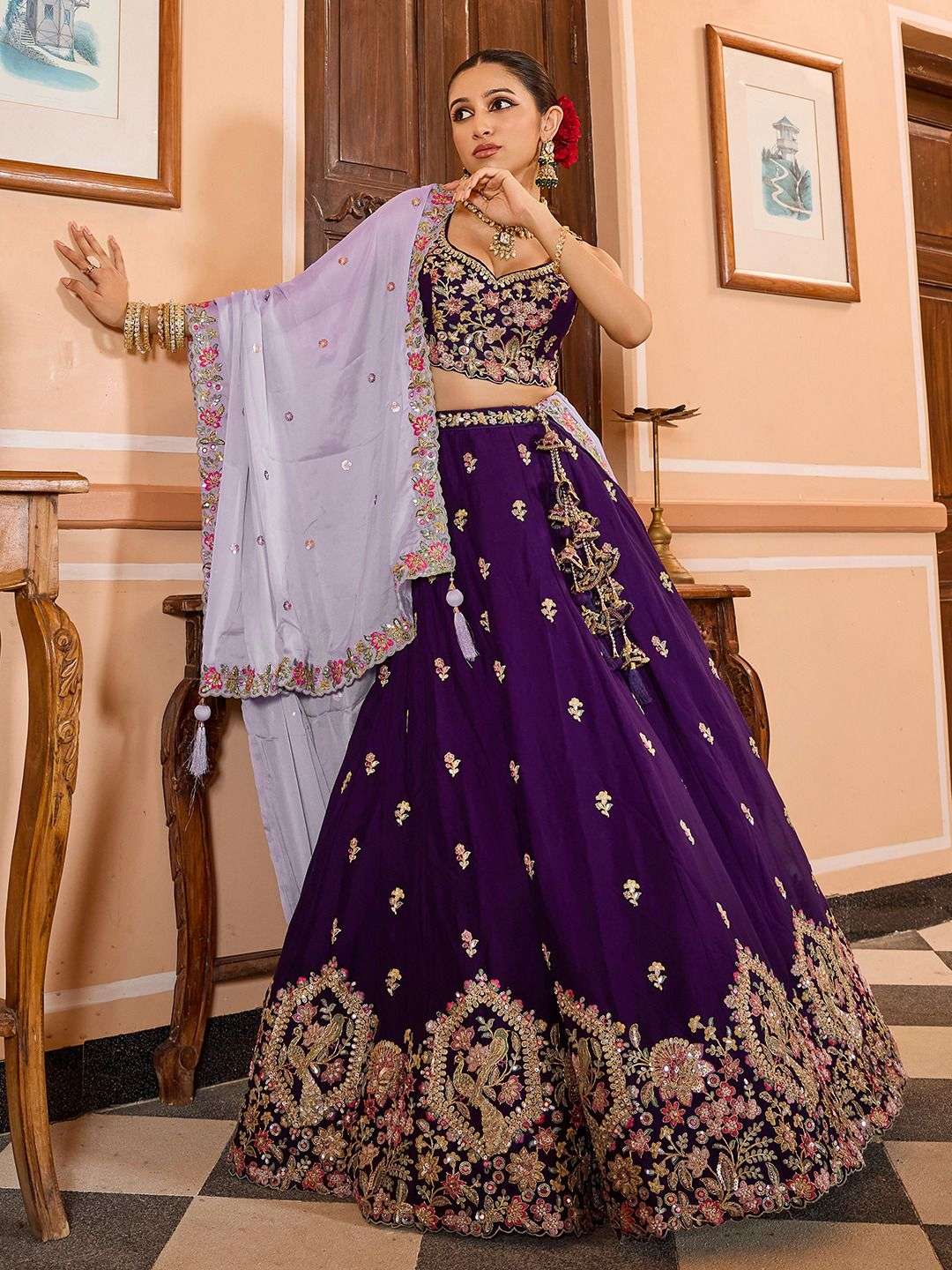 💜✨ Adorn craft Purple & Teal Sequins Embroidered Lehenga Set ✨💜