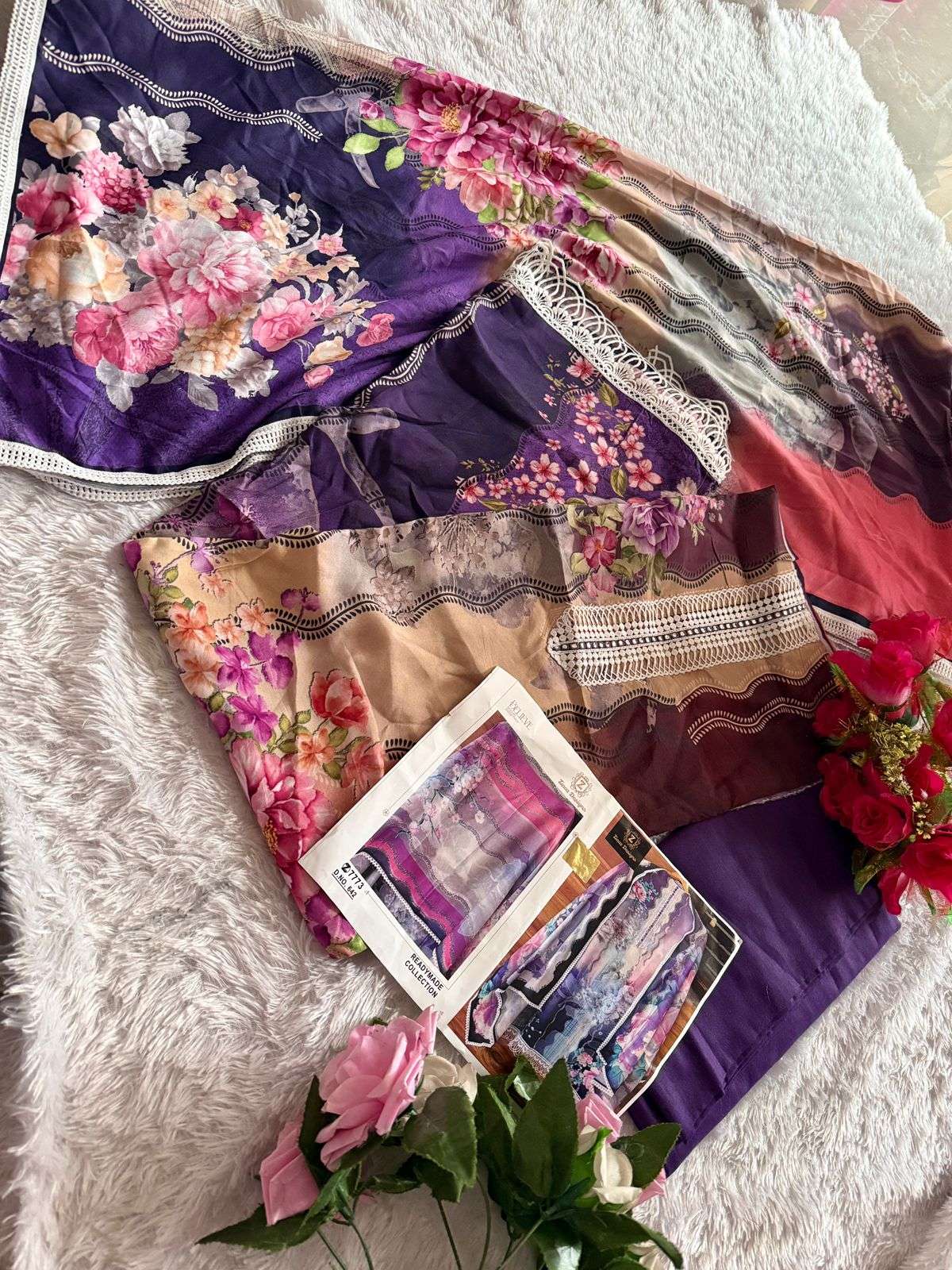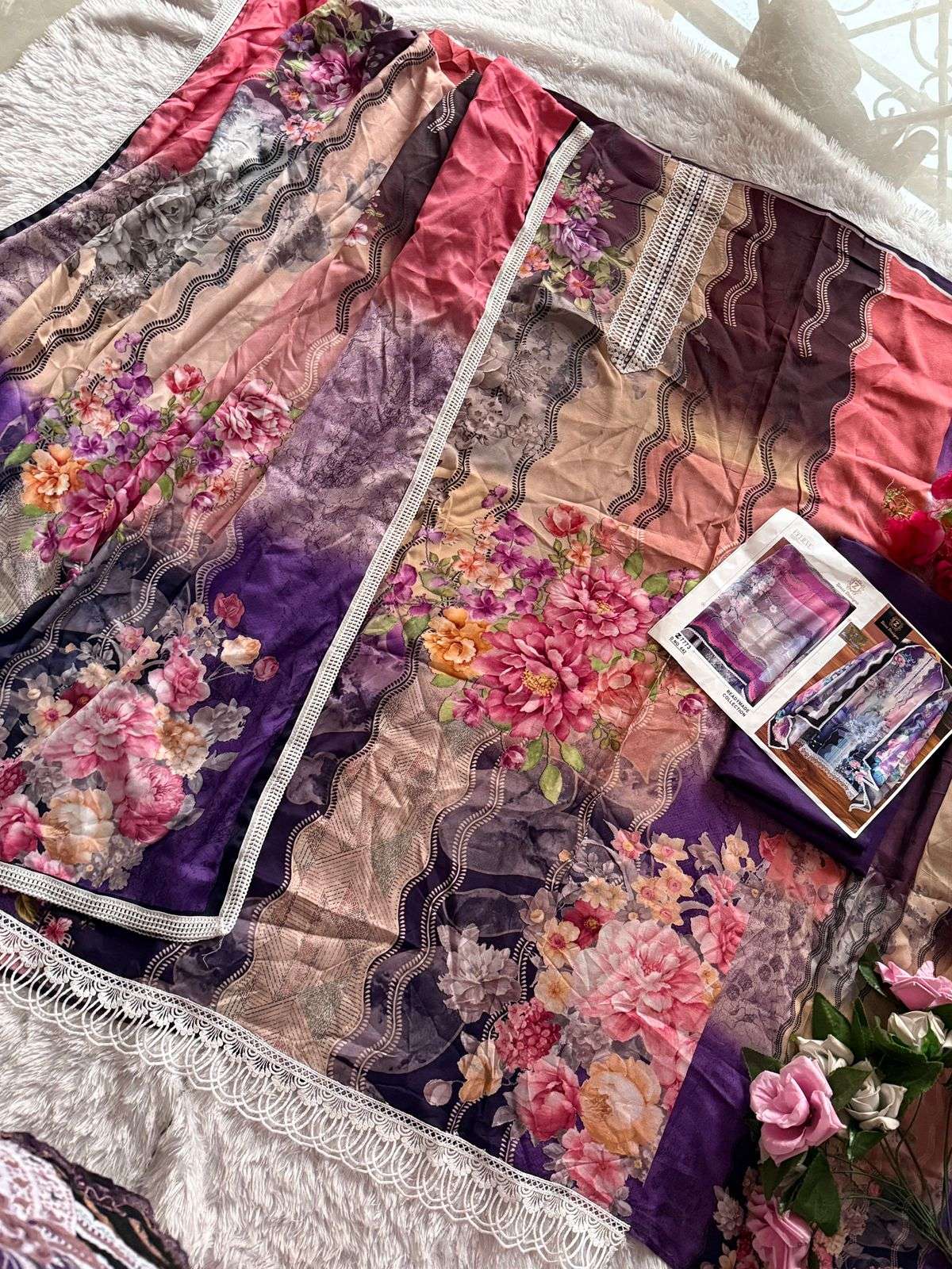 Amazing pure Muslin stunning printed outfit with laces ❤️❤️❤️❤️ lawn unstitched bottoms ✅ very beautiful muslin digital print dupttas with lace foursides😍✅