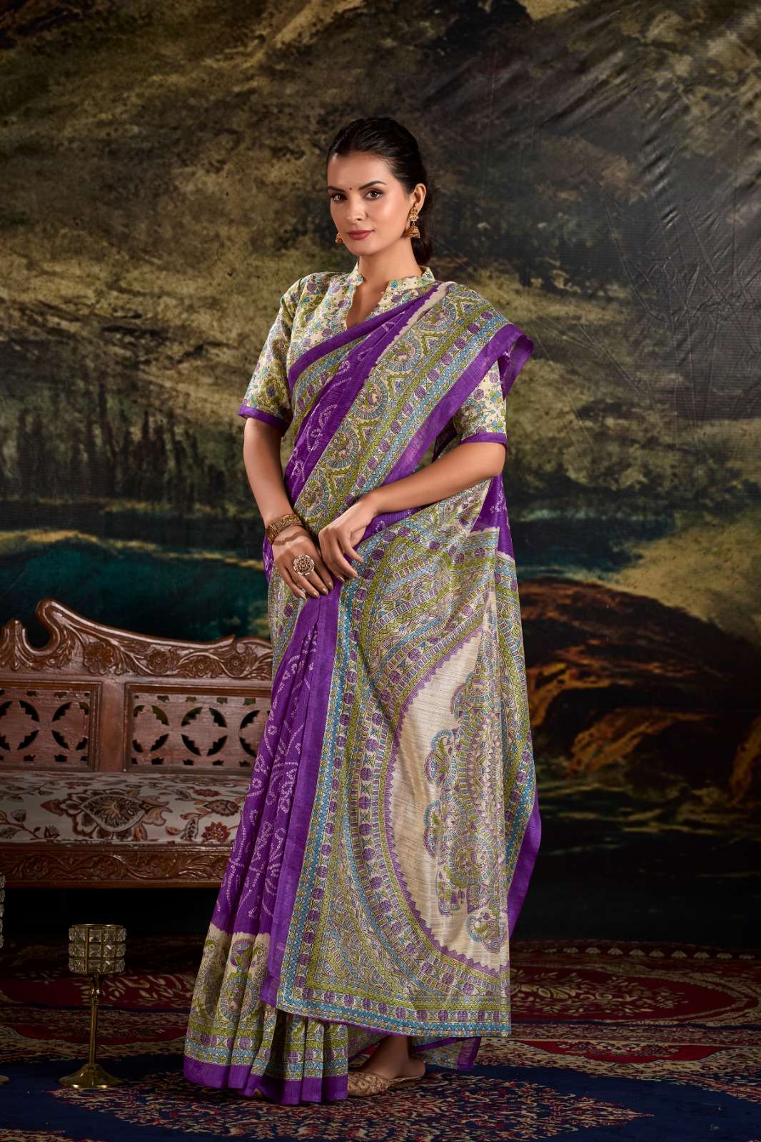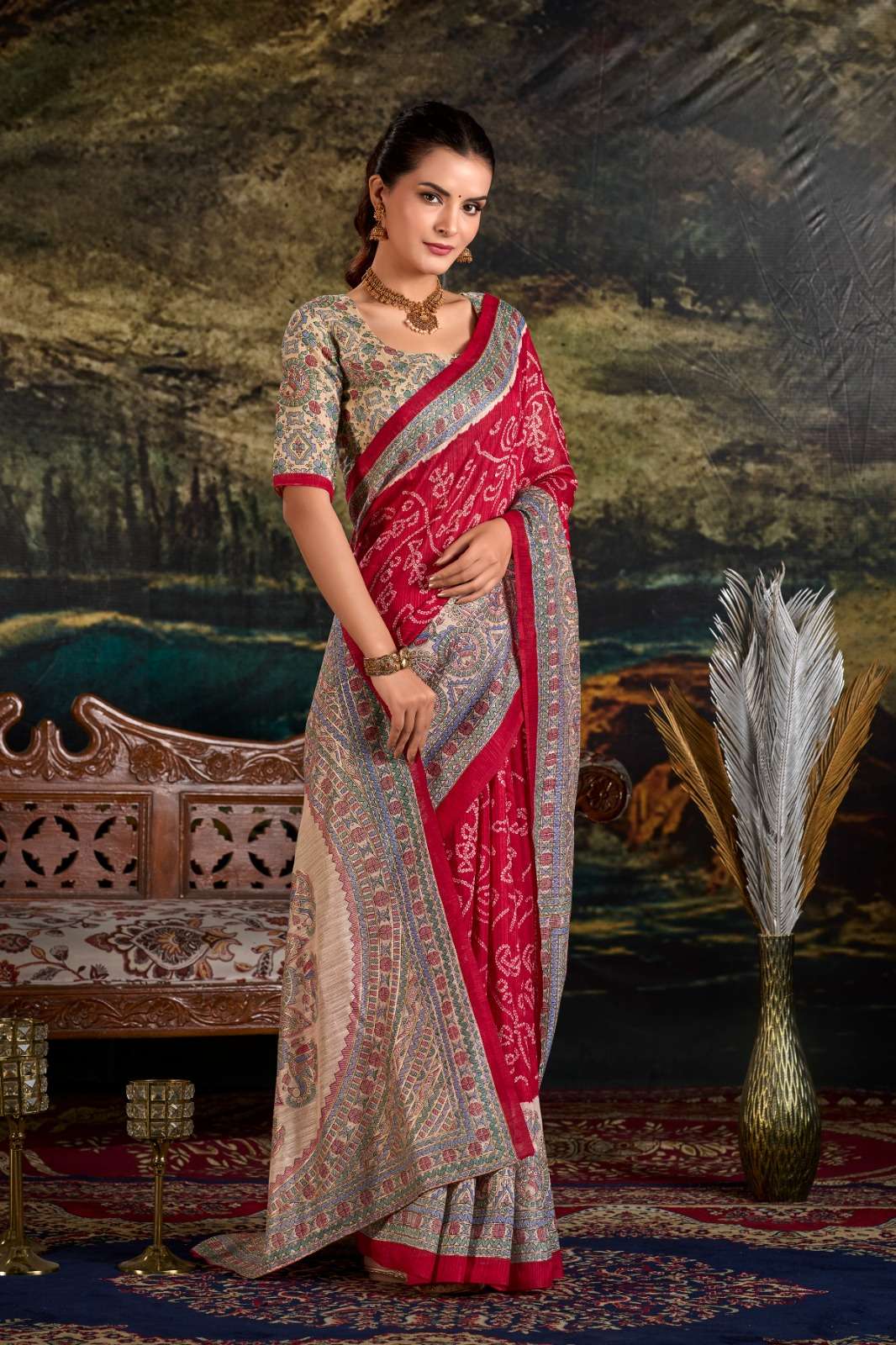 *Saree* Saree Fabric : Green Silk Saree Work : Fusion Print Of Madhubani And Bandhej Saree Length : 5.5 meter