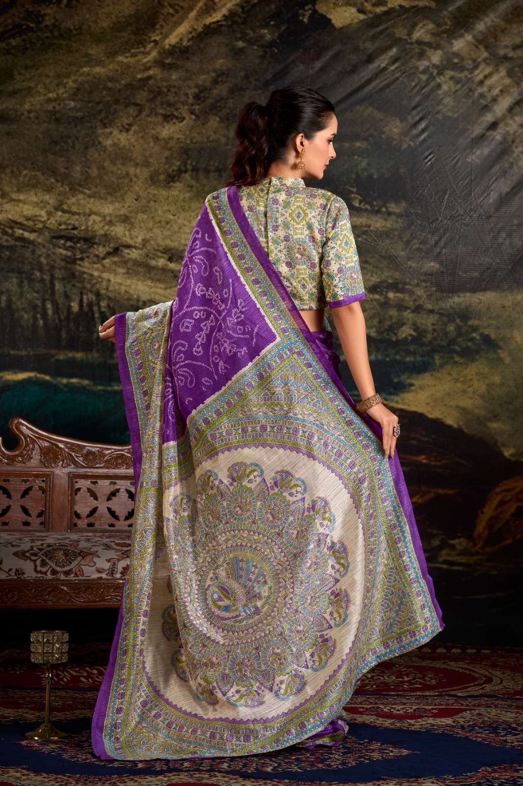 Green Silk Artistry: Fusion Of Madhubani and Bandhej 🍃