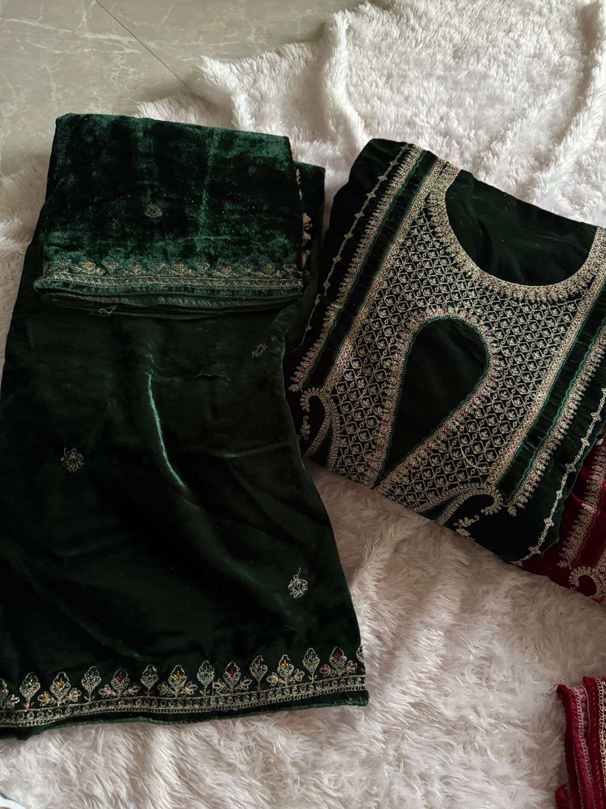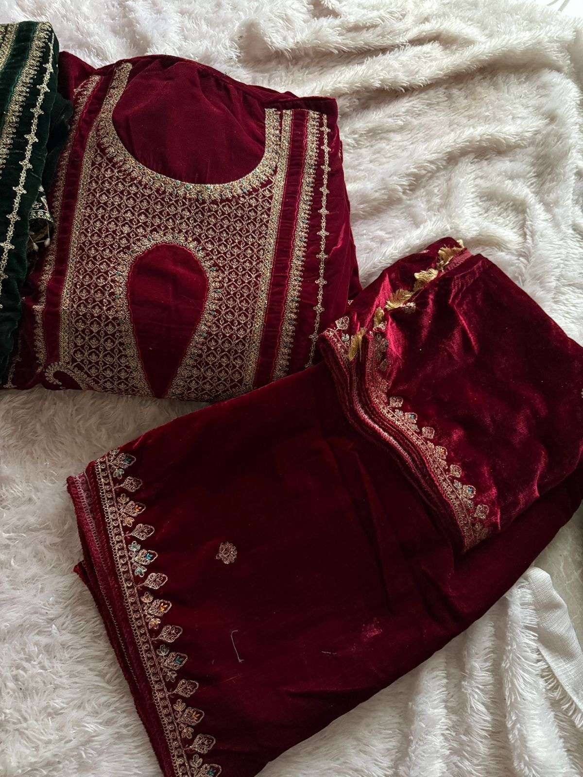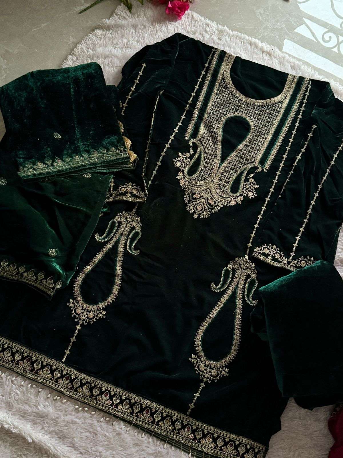 Pure 9000 Velvet Semi stitched outfit with beautiful embroidery