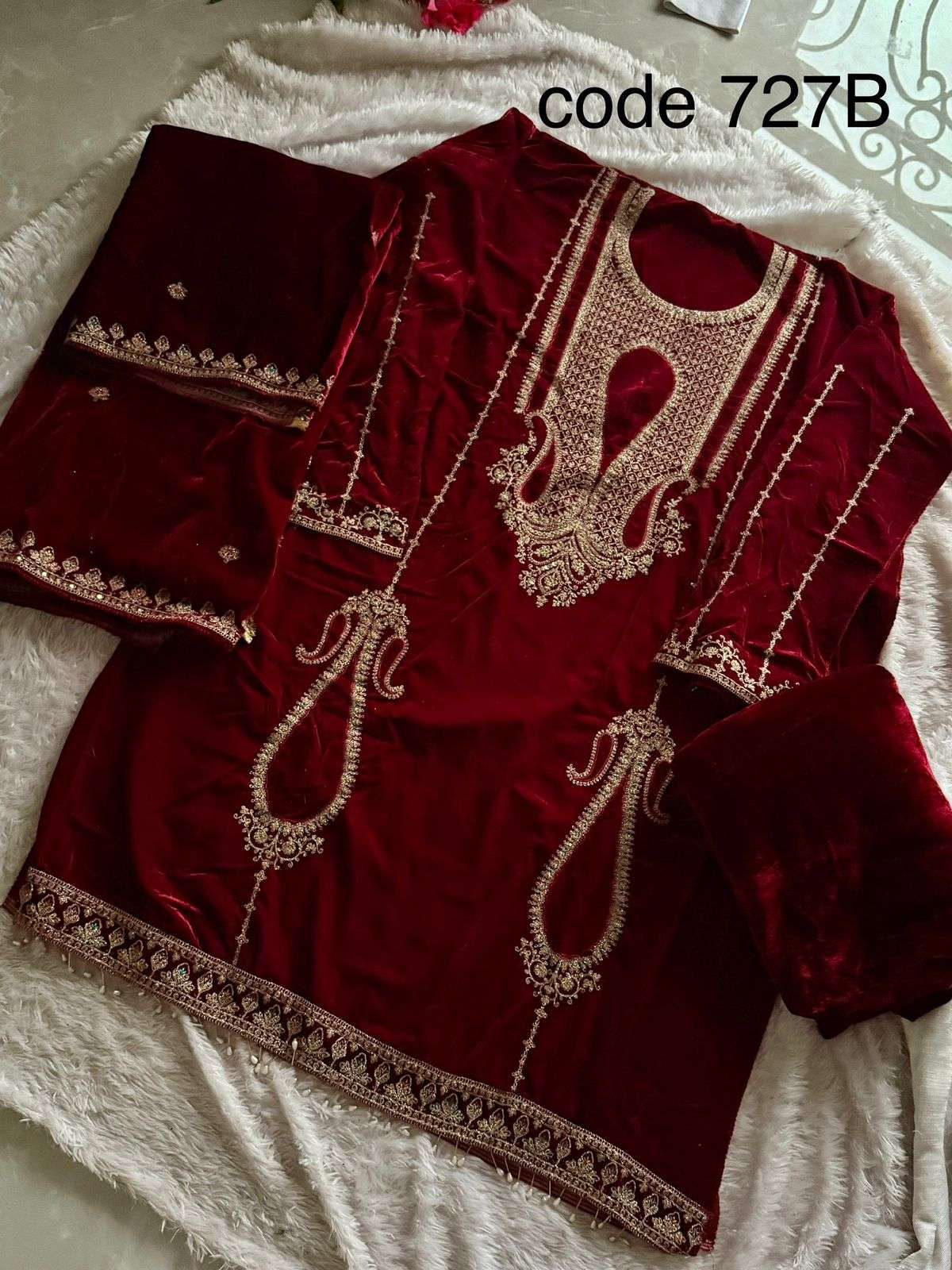 code 727A by Ziaaz Design 9000 Velvet suit collection manufacturer Surat