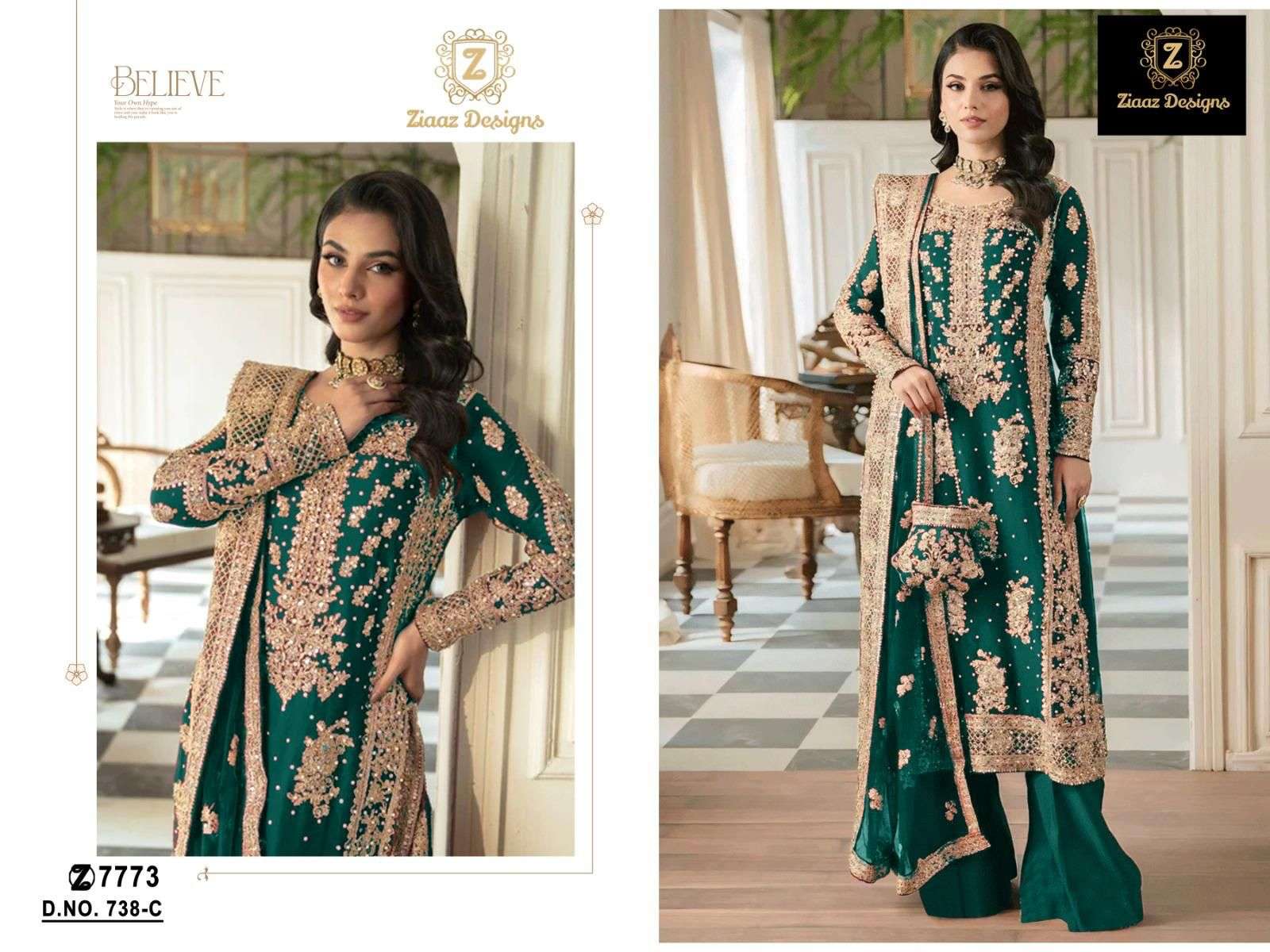code 738 by Ziaaz Designs Georgette suit collection manufacturer surat