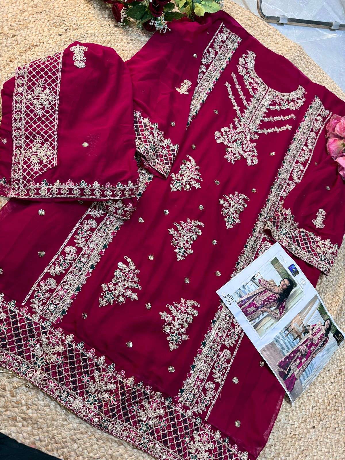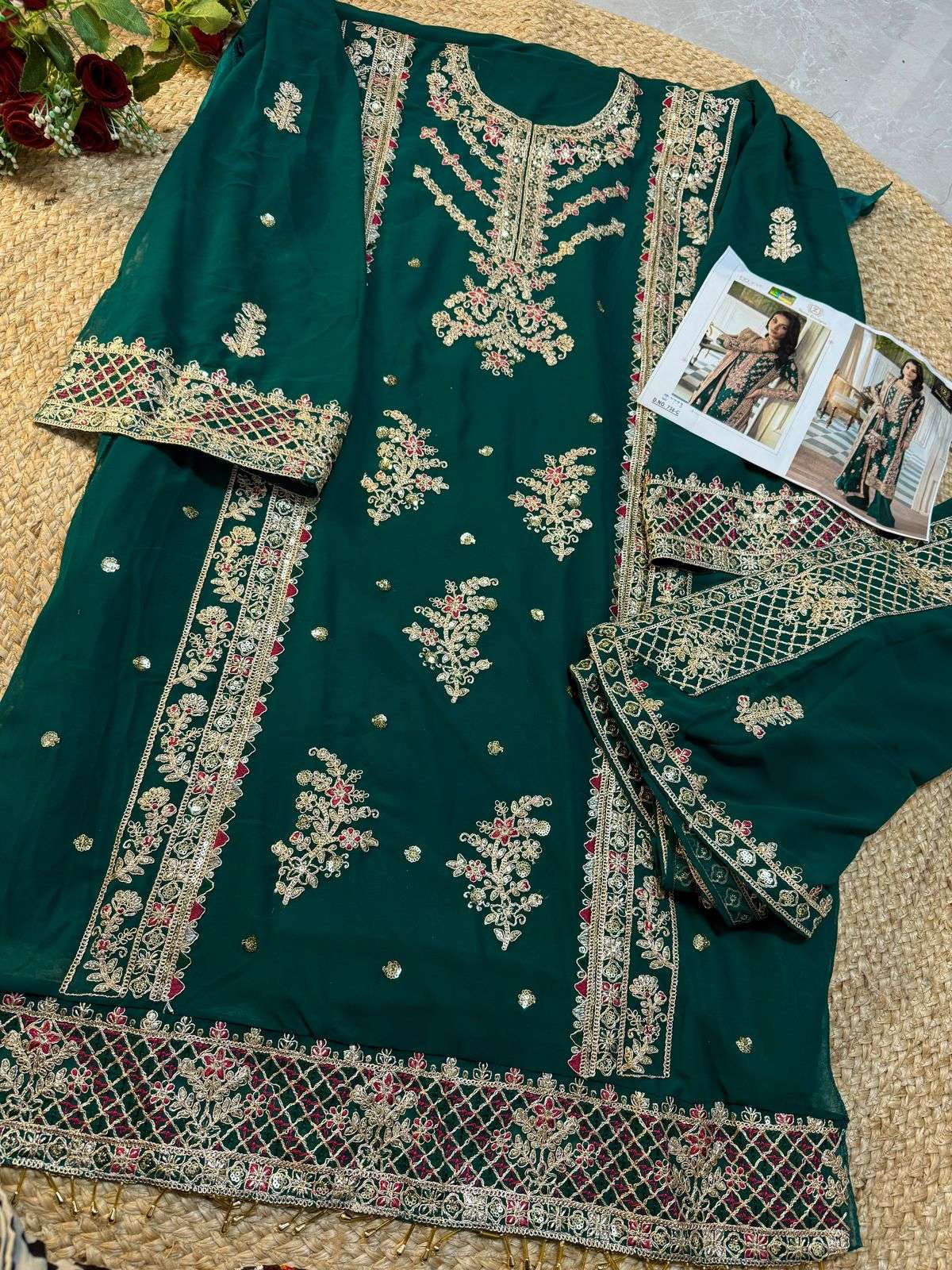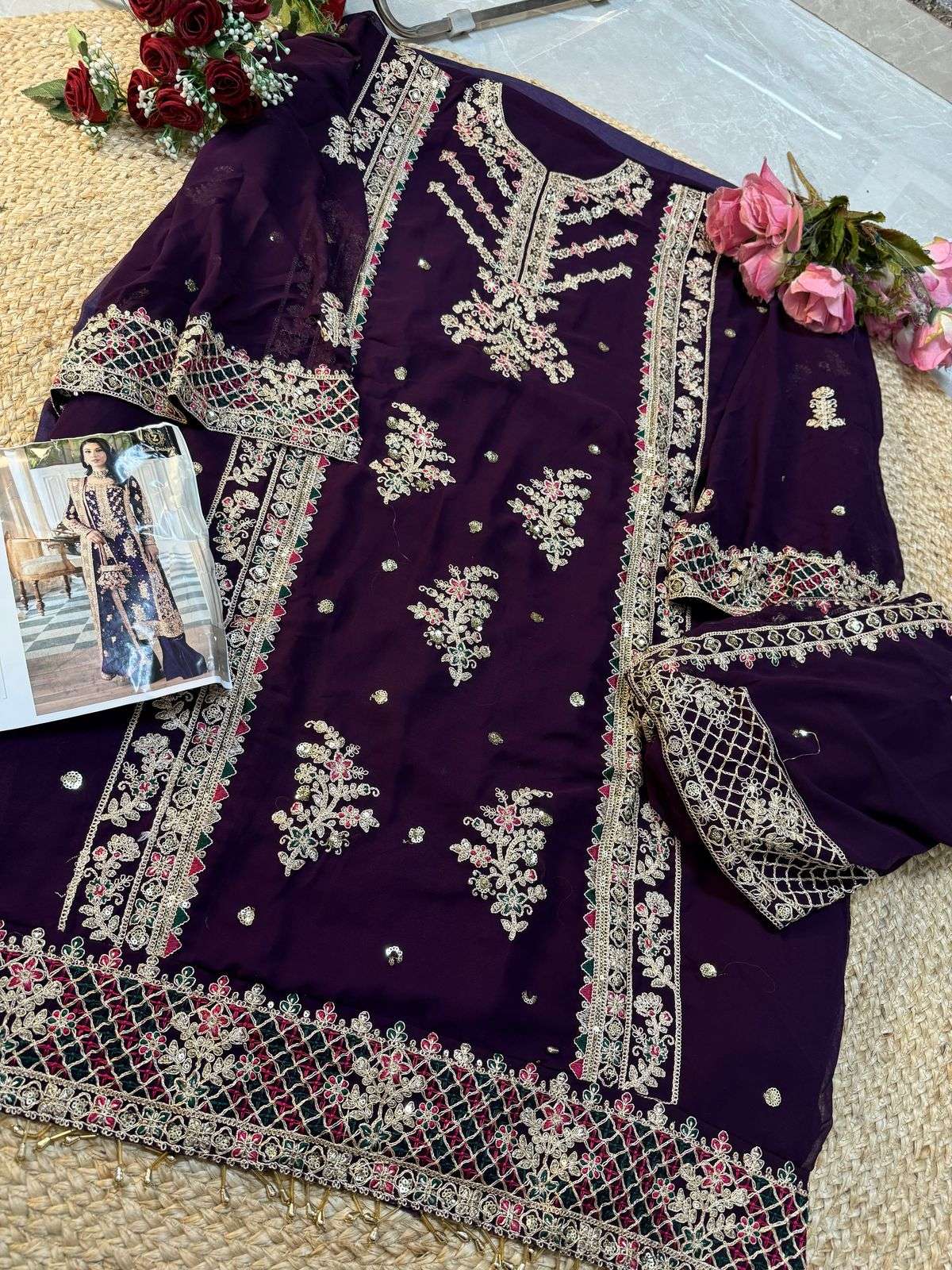 Georgette embroidered very beautiful semi stitched outfit 😍unstitched santoon inner and bottoms. Georgette embrdroidered heavy border work dupatta 🤩🤩
