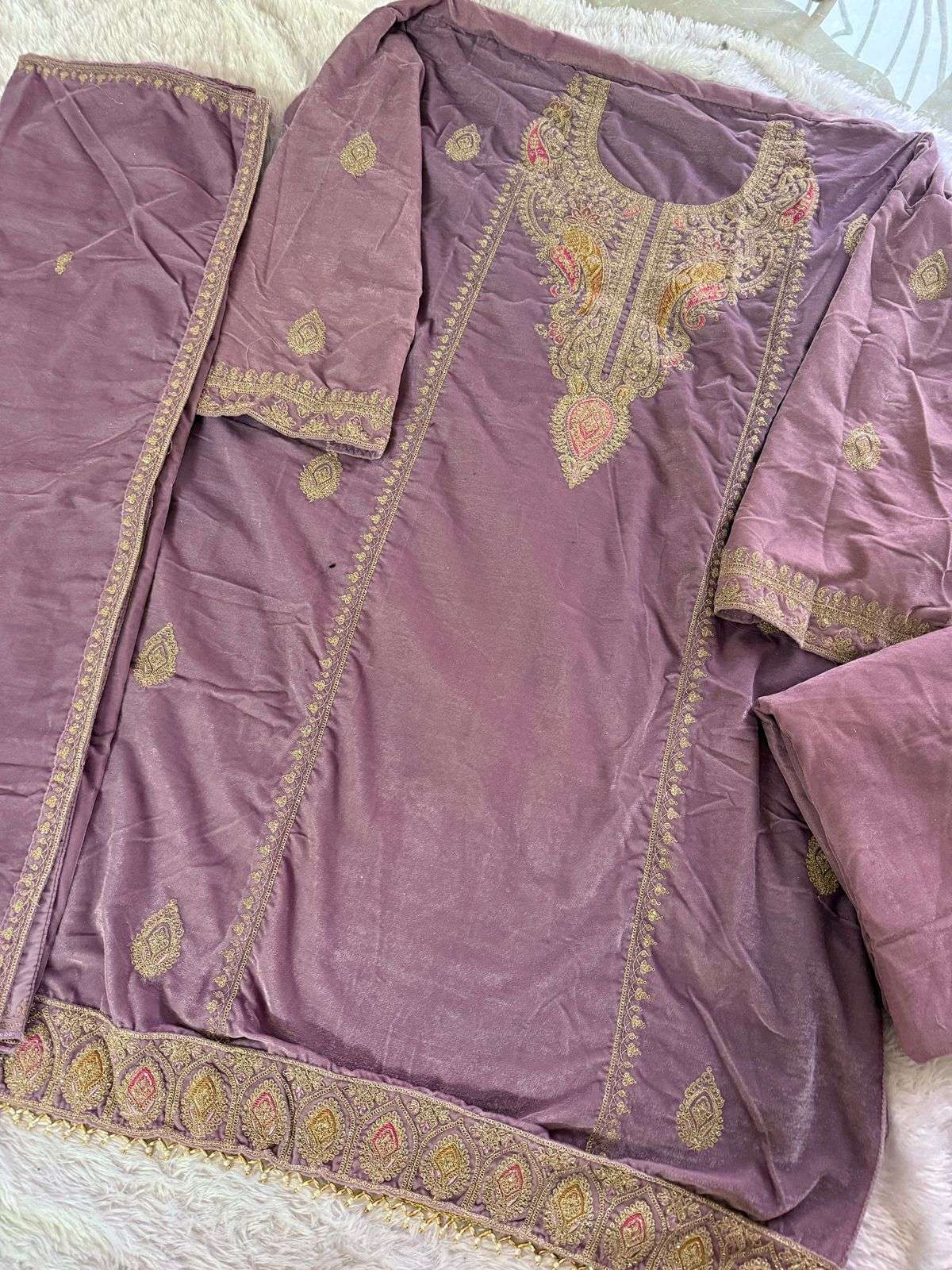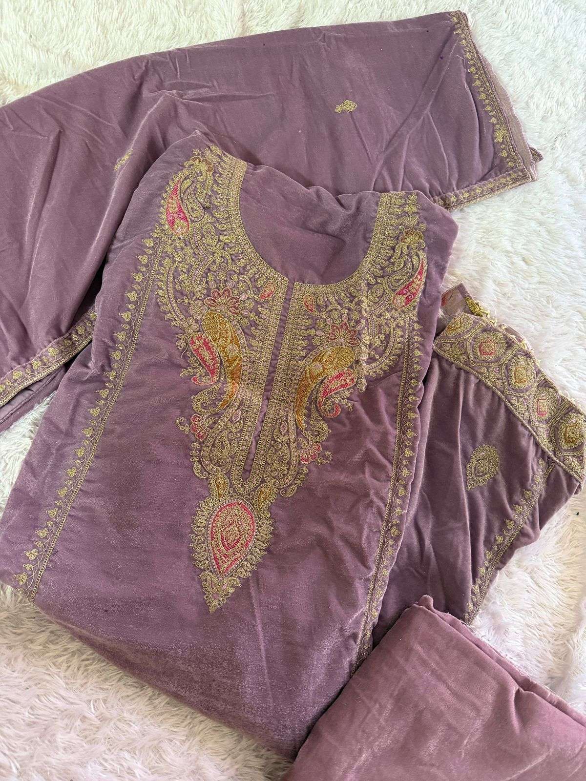 Pure 9000 Velvet Semi stitched outfit with beautiful embroidery