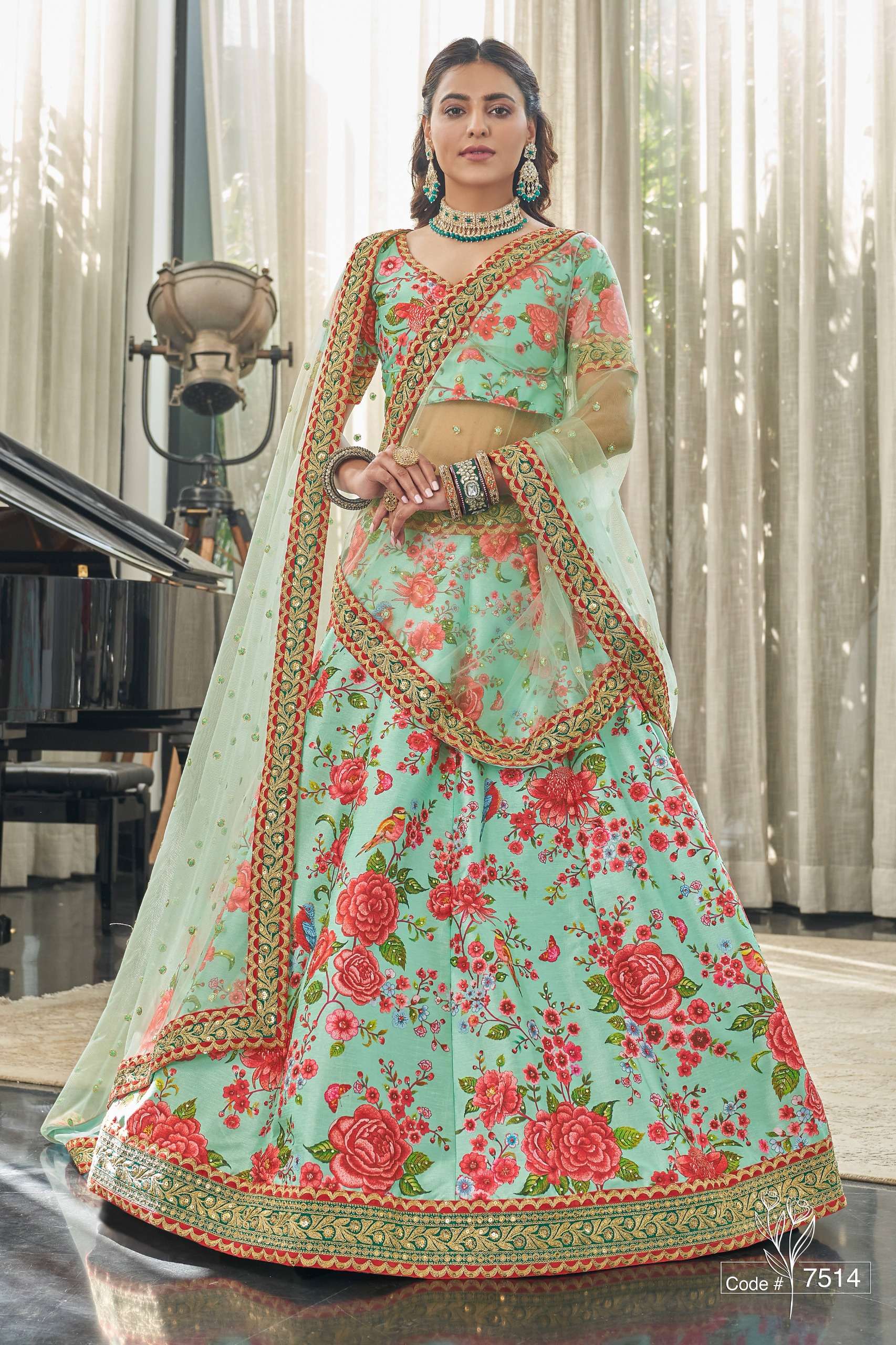 CODE 7514 A Modern Floral art silk Lehenga collection manufacturer surat
