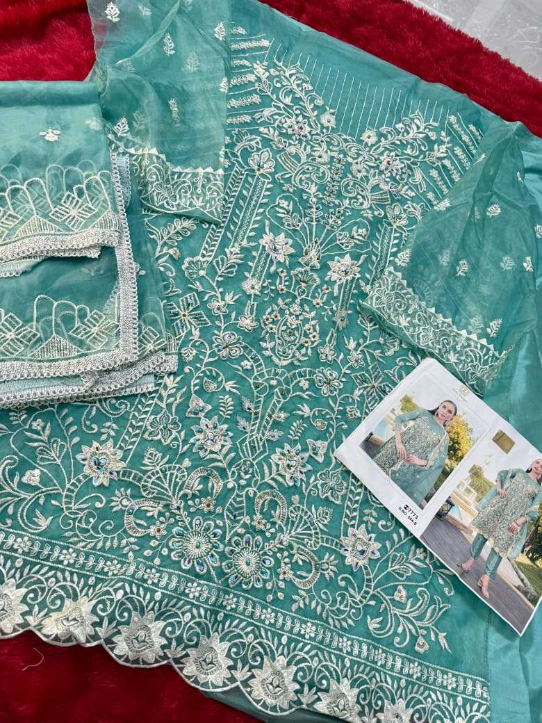 Organza handwork moti work embroidered semi stitched suits❤️
