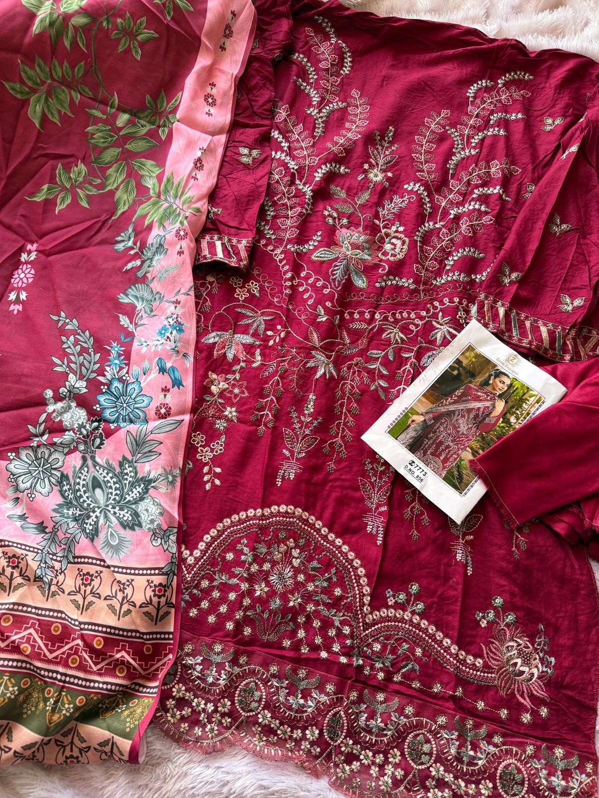 Rayon semi stitched very heavy embrdrd kameez and rayon unstitched bottoms with Muslin digital print dupatta