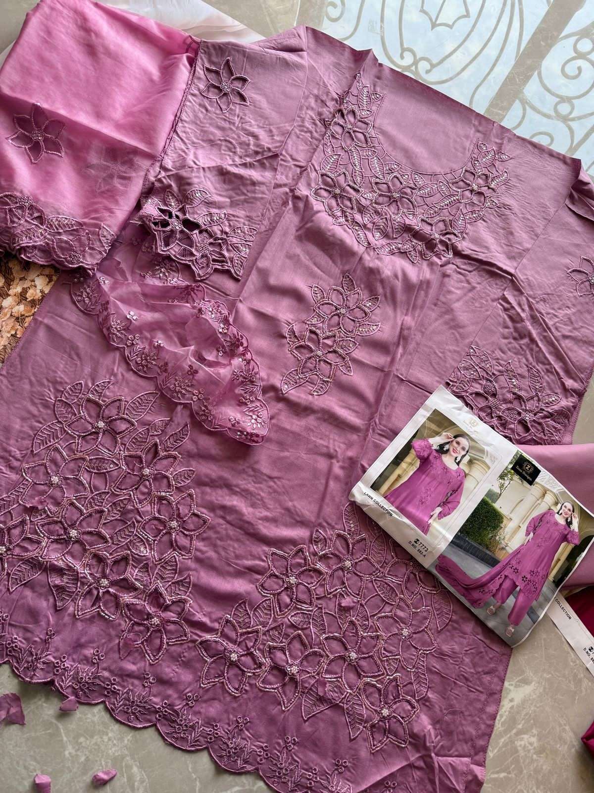 Cambric cotton cutwork handwork kameez with cotton inner😍 cotton unstitched bottoms cotton Inner provided❤️ Organza Embroidered cutwork with lace dupatta🥰
