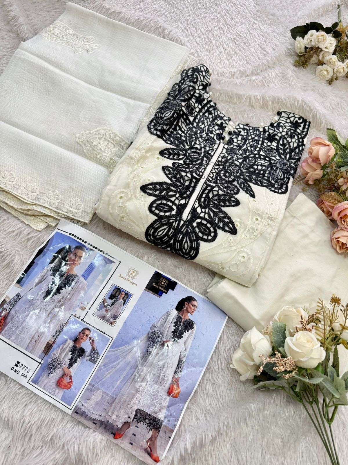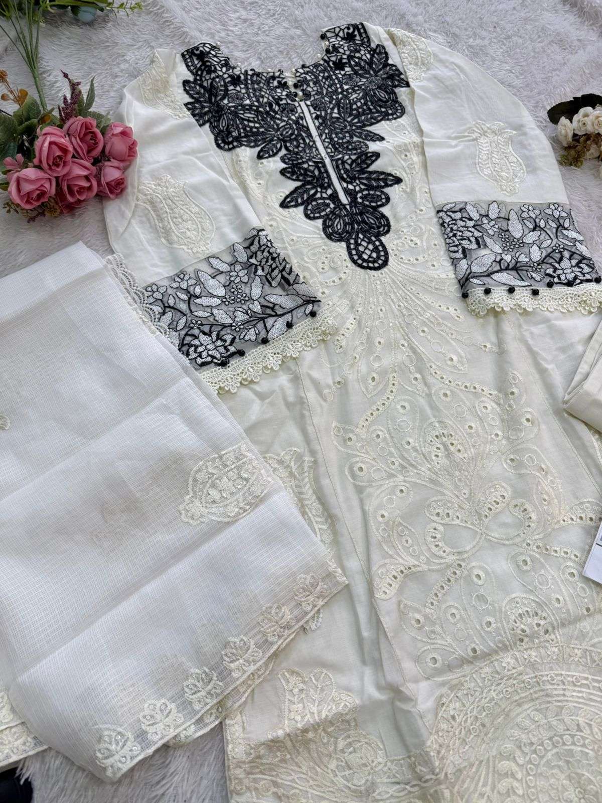 Cambric cotton heavy Embrdrd with semi stitched kameez with cotton unstitched bottoms very beautiful Kota embrdrd dupattas and Muslin lawn digital print in code 915 No extra laces or pearls✌️🎉